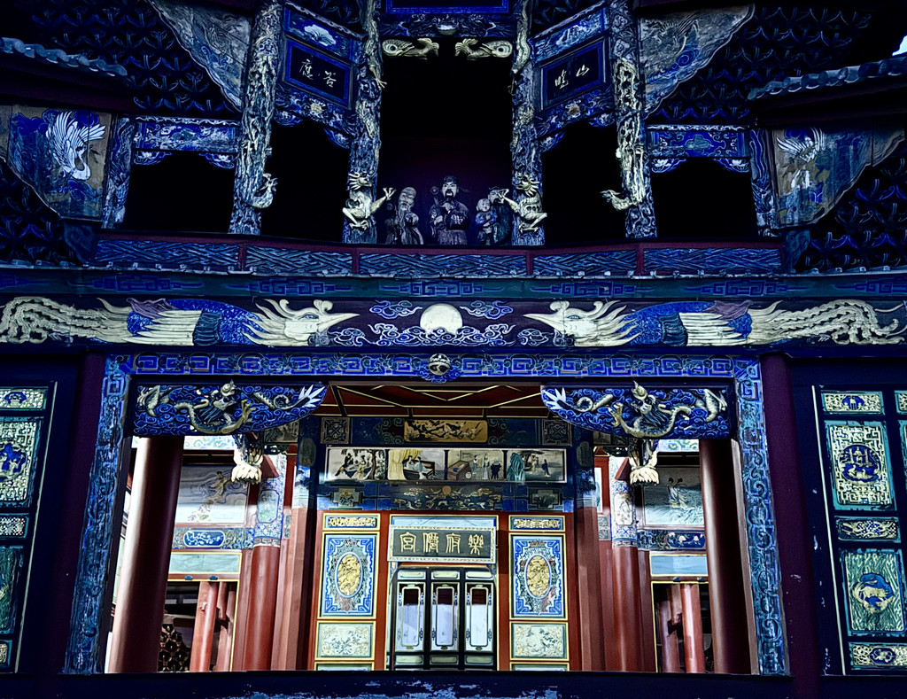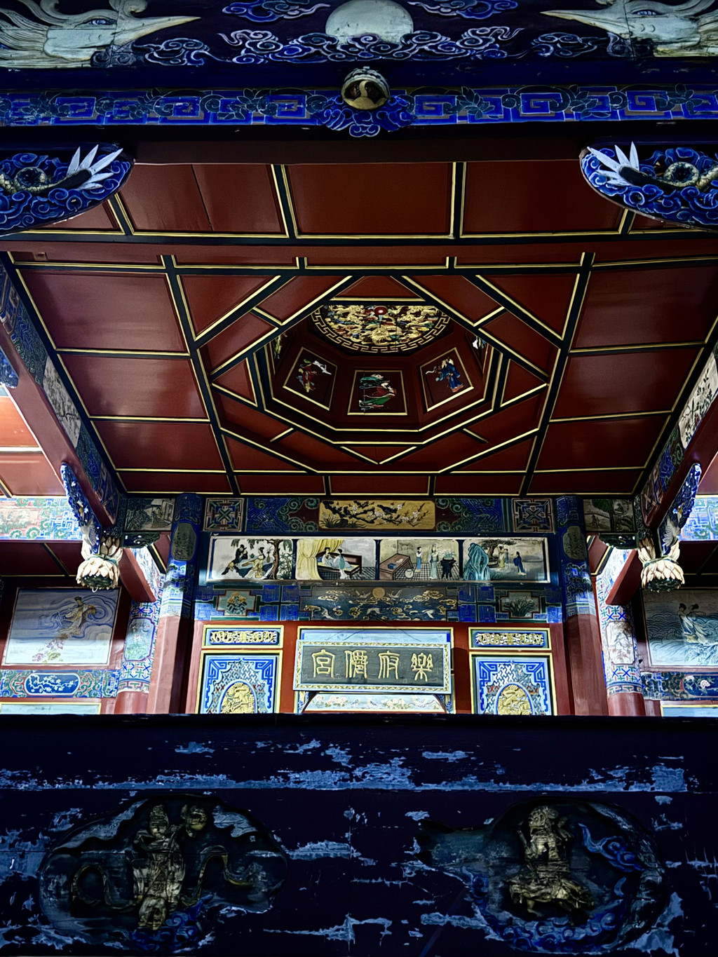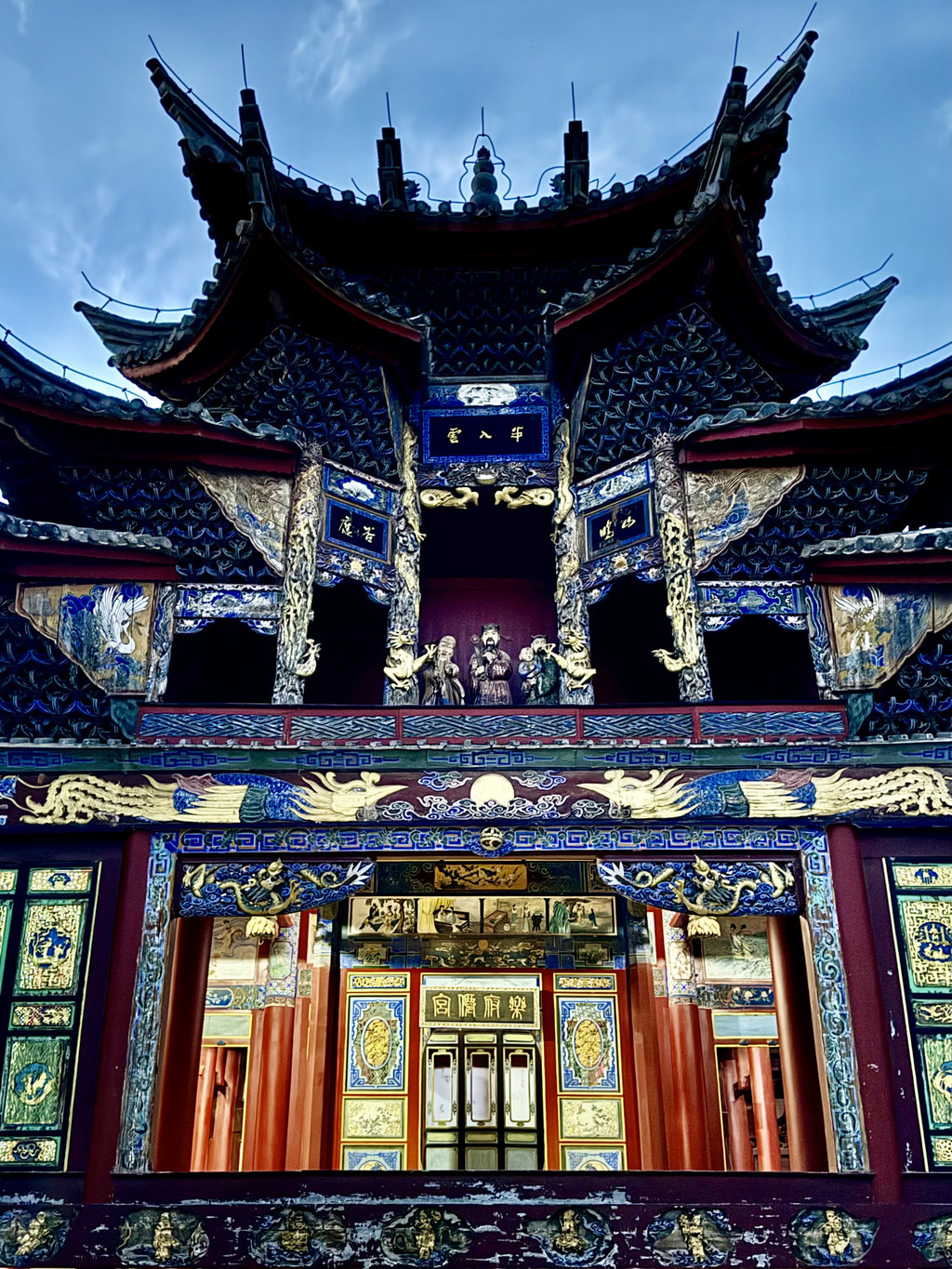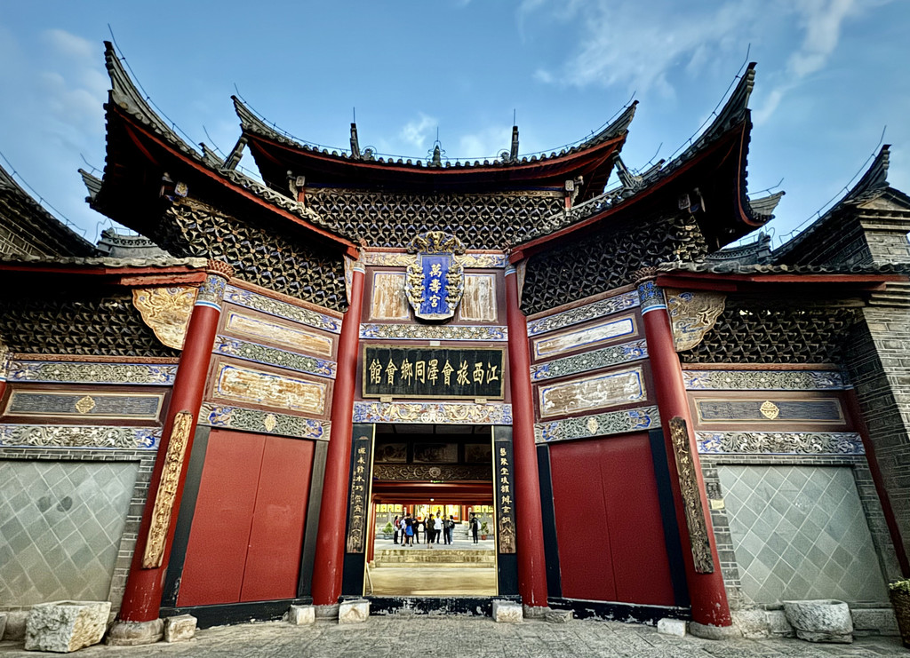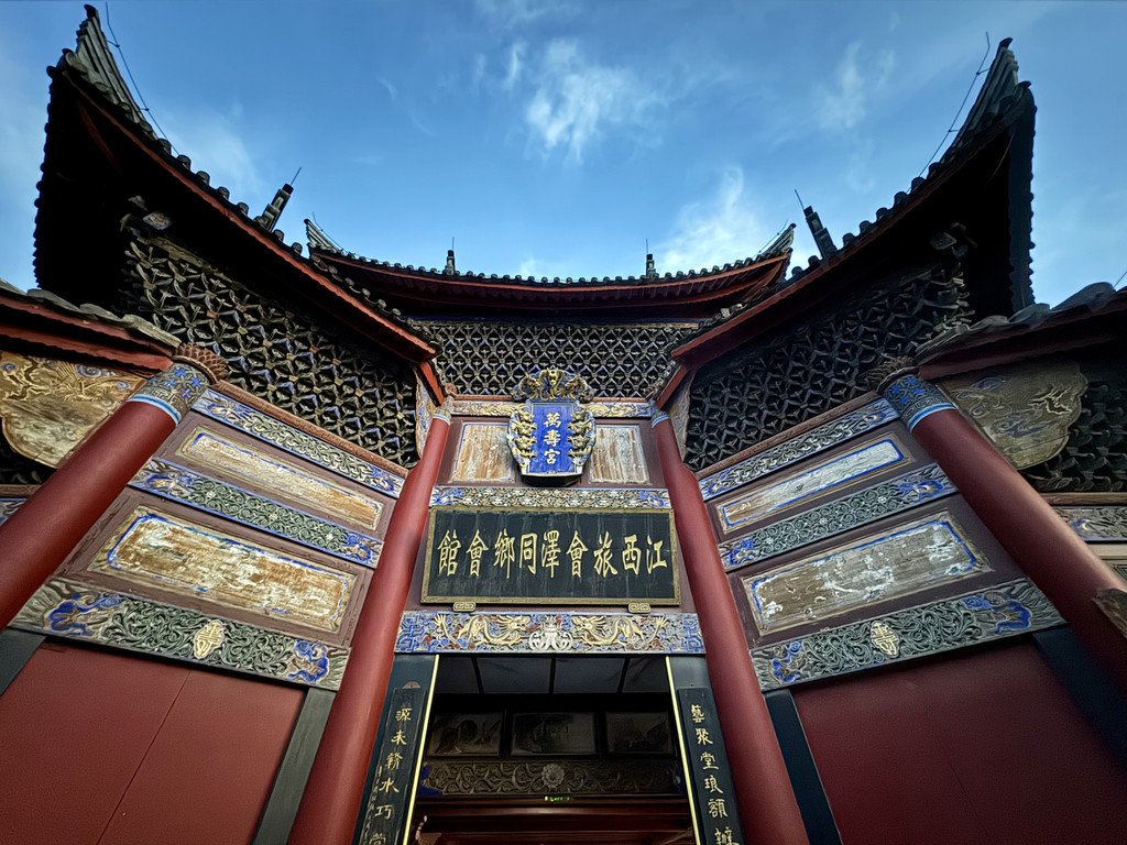始建于清康熙年间的江西会馆,是会泽保存最完好的会馆建筑。飞檐翘角,三重斗拱,气势恢宏,天花藻井、戏楼歌台,乌衣风流,置身其间很难不让人怀想当年的商贾云集繁盛,那些关于江右商帮“一个包袱一把伞,走南闯北当老板”的传奇故事,都在告诉我们,古人为了闯荡生活的坚毅、果决与不畏艰难。对此,我心里充满了敬畏——我们抵达时太晚了,光线没了,但依旧能感受这座江西会馆历经300多年风霜的气质。