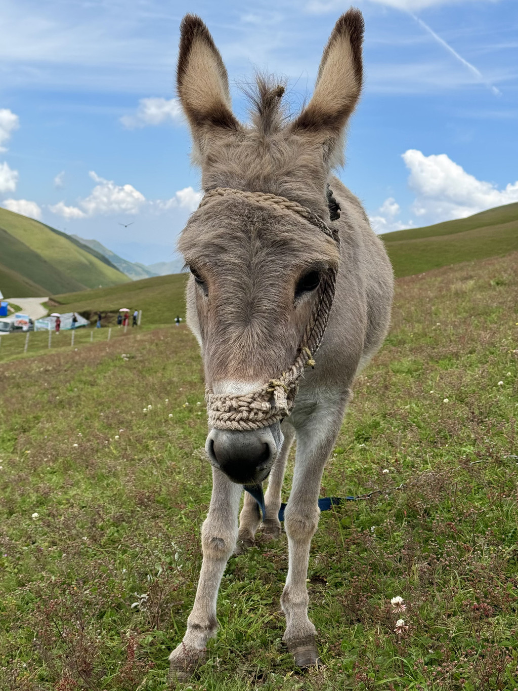 山上有一头倔驴,不知哪户牧民把它放养在此,如果是跟它合影会很配合,但你要上手摸它甚至动念头去骑,就会听见牧民气喘吁吁边跑边喊:不要乱来,小心它顶你。然后一群人哈哈大笑,哄然散开。