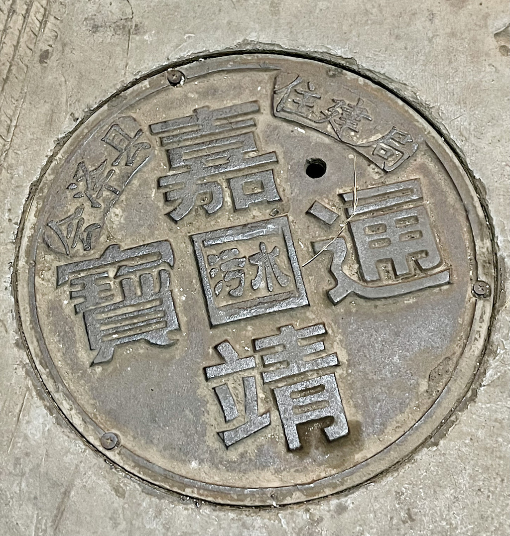 古城里到处都是以“嘉靖通宝”为原型的延展:古钱币桥、窨井盖、水渠、地砖……可以说这是一座遍地都能看见钱的城市。