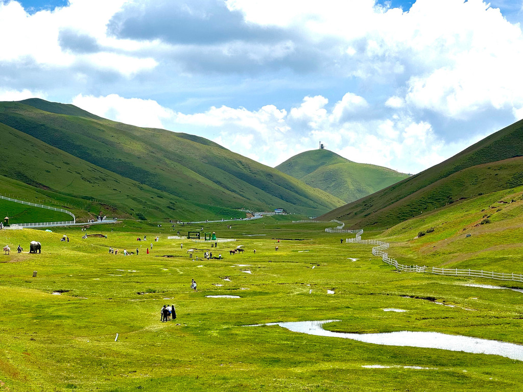 车辆沿着山路蜿蜒,窗外阳光白云蓝天与草原交织的美景,踏入大海草山,就步入了自然精心雕琢的避暑仙境。