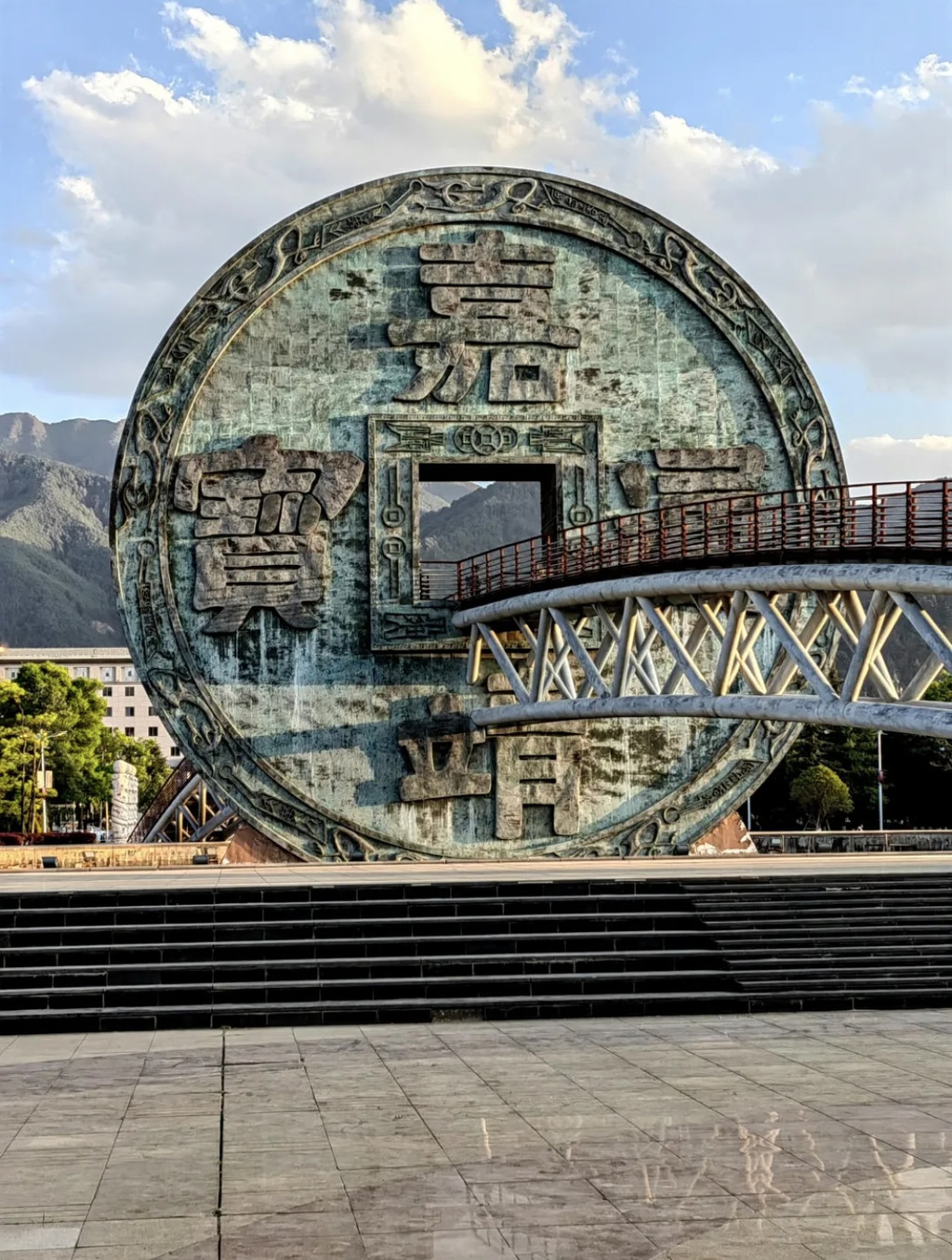 站在戏台下,细细欣赏着这雕龙画栋,精美的木刻、楹联,感叹它们能够如此完整保存至今,实属不易啊。会馆内还有一个房间,展示了中国古钱币的演变,展览虽简,但也值得一看,世界上最大的古钱币“嘉靖通宝”(复制件)也在此,原件据说保存在会泽公安局内。