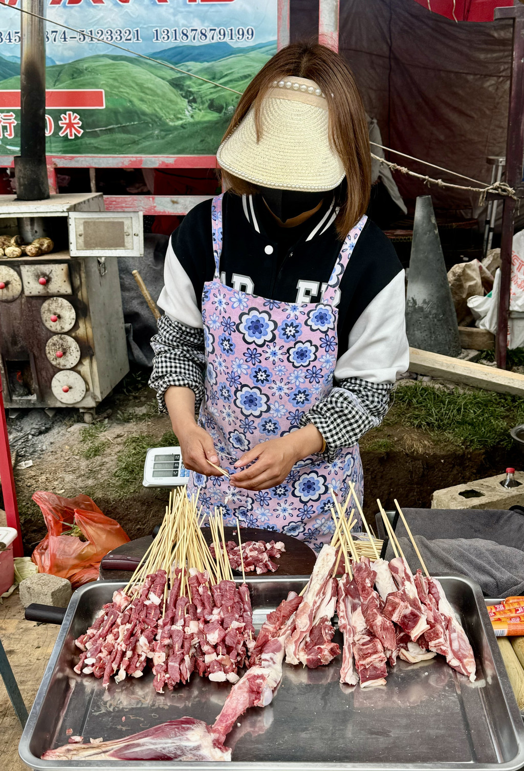 沿途有很多牧民和居民组建的帐篷美食摊点,新鲜的烤牛羊肉可以解馋,于草山之巅品尝地道的烤羊肉,别有风味。
