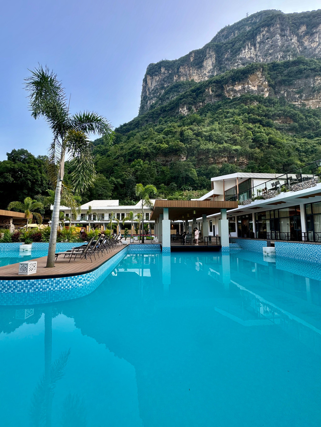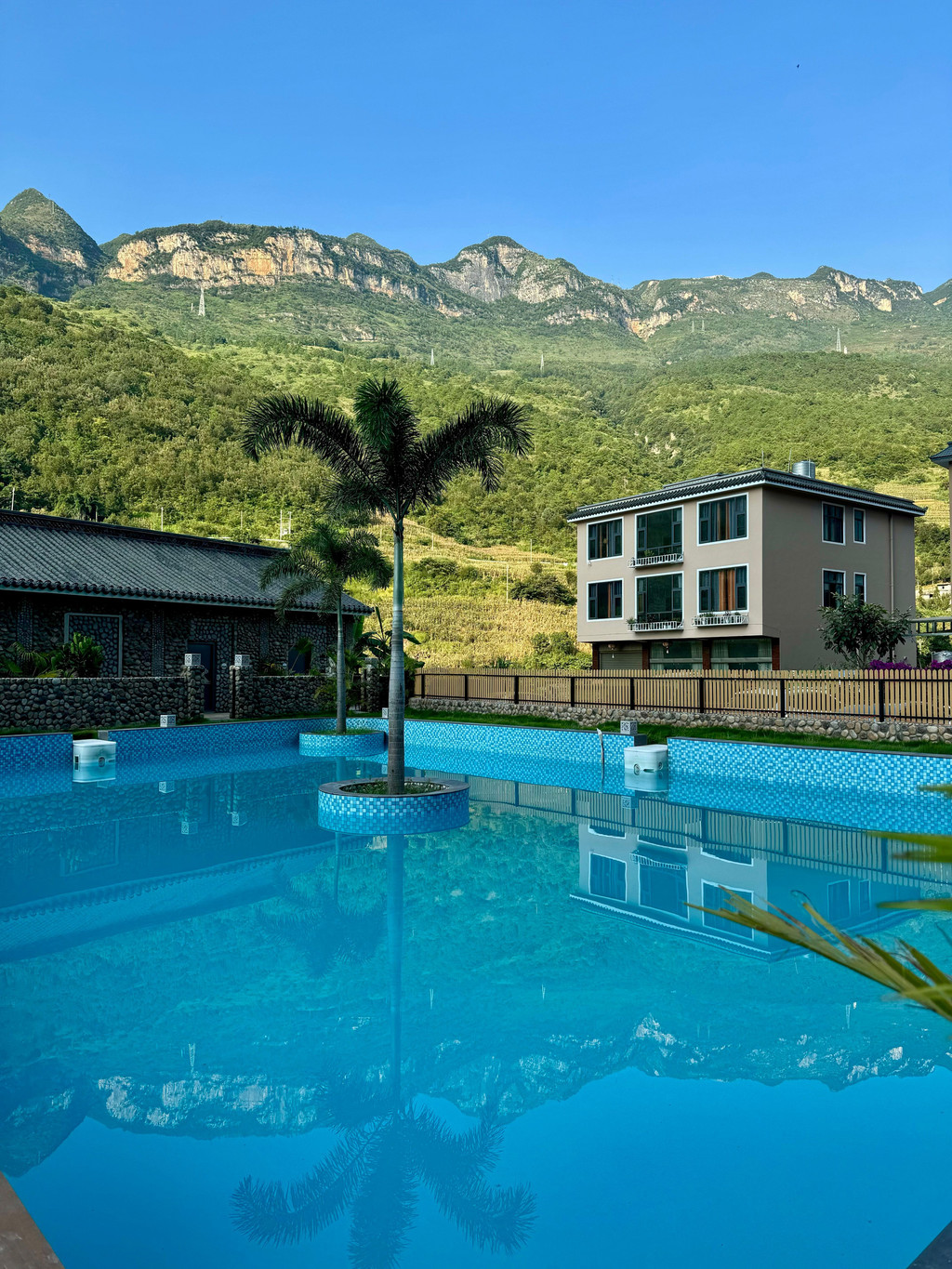 回山上的青云梯会排队很久,不想排队就去坐滑索,我们去了边上的官寨村走了走,里面有个很漂亮民宿酒店,泳池拍照效果堪比马尔代夫。