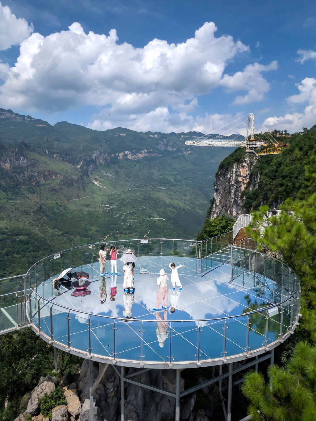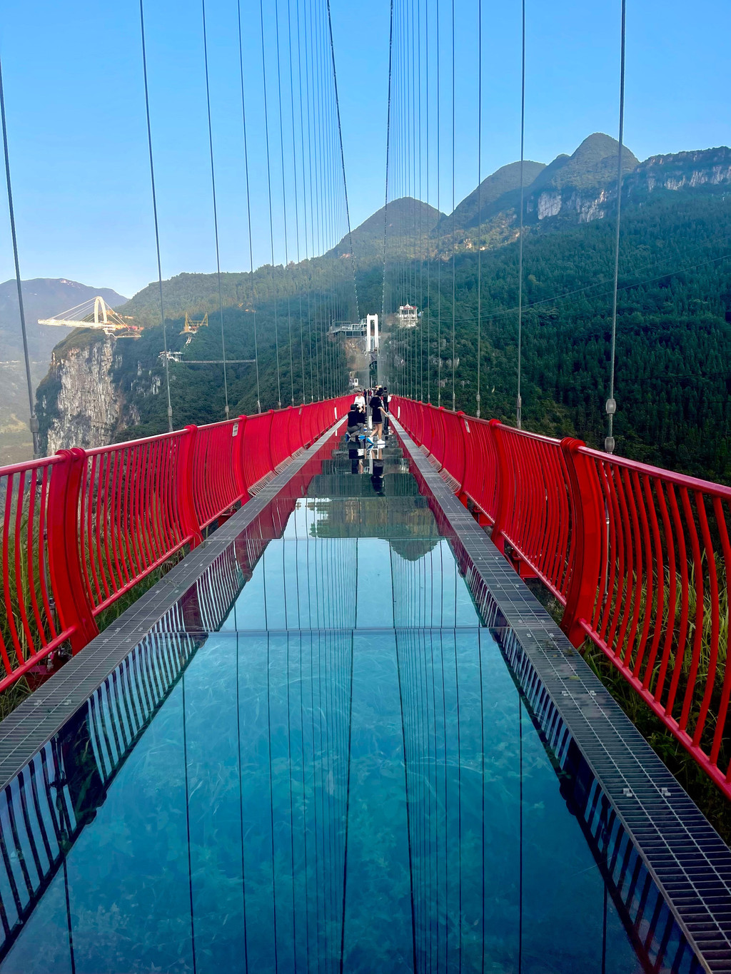 玻璃观景平台上风景独好,令人有一种豪迈感——世界属于勇敢者!脚杆打闪闪走了一圈,心跳与峡谷共舞,尽享刺激快感,拍拍照发发朋友圈告诉大家我牛的感觉很美妙。