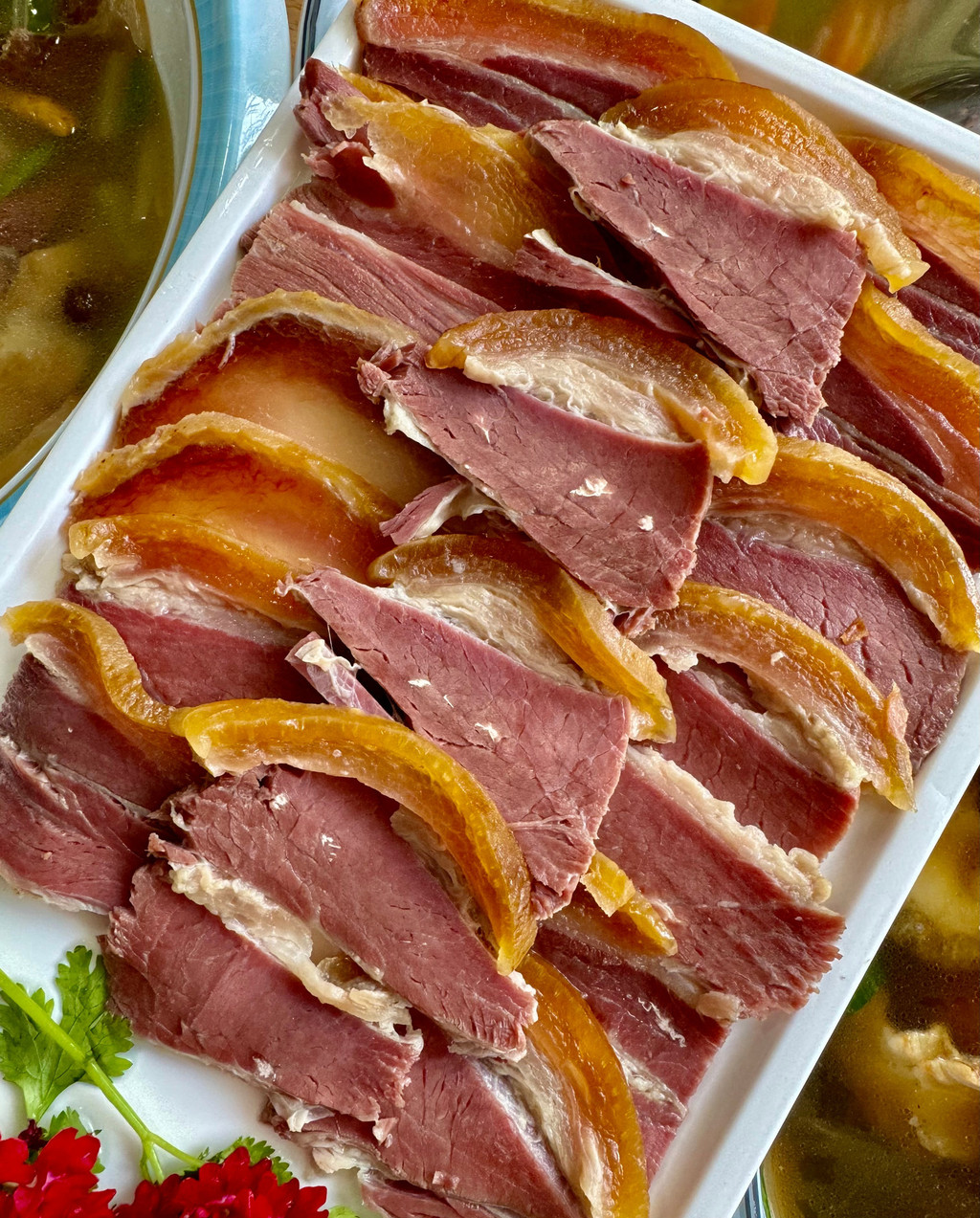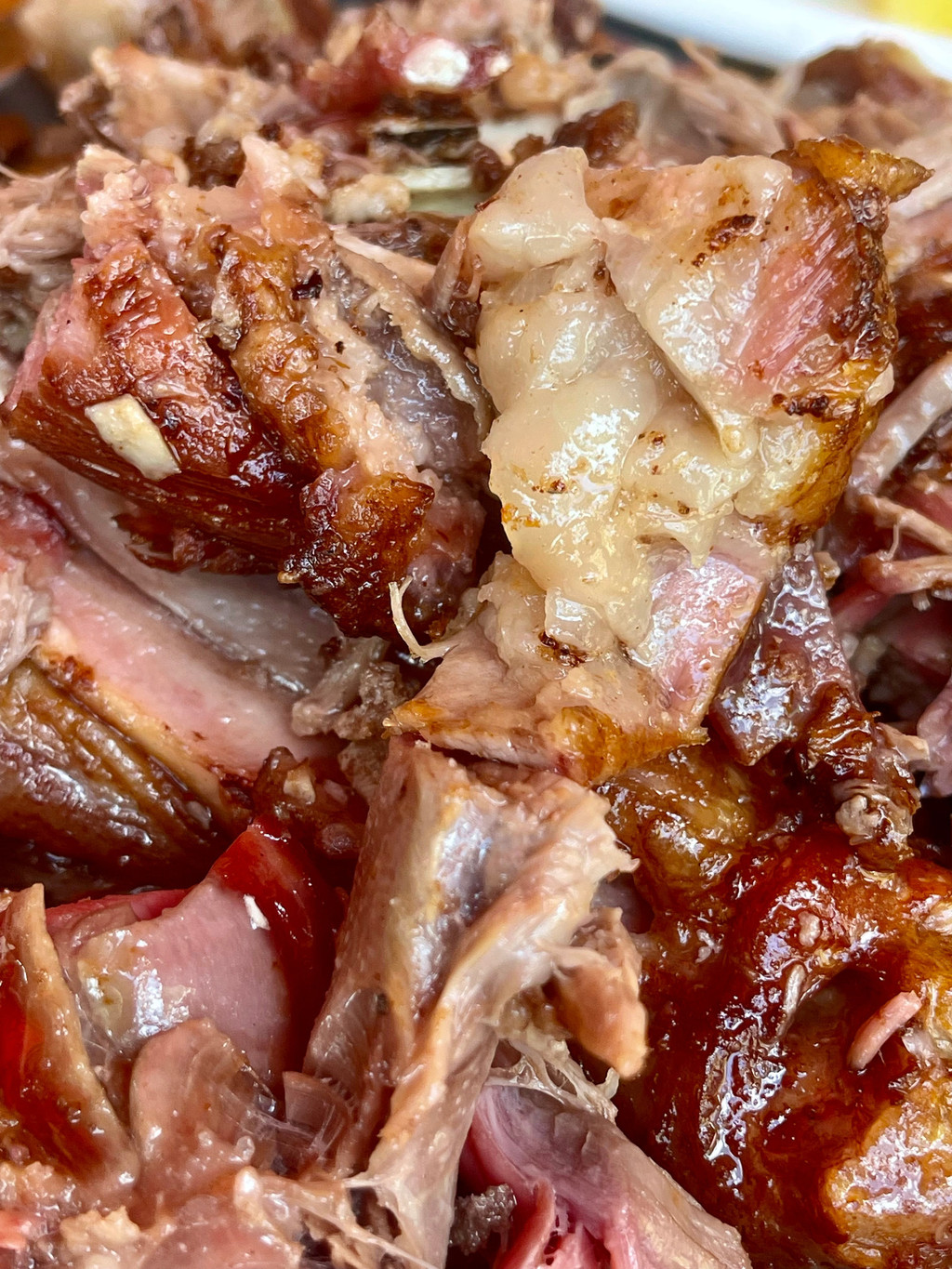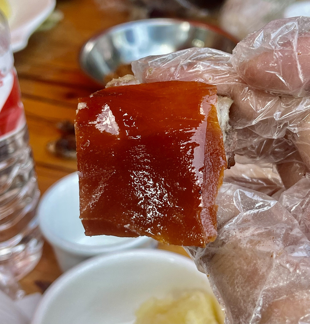 一路走来,除了玩就是在吃的路上。因跟老板聊得很开心,他邀请我们吃烤乳猪,真的是打开了我们味蕾新世界——特别腌制后的乳猪被烤得金黄酥脆,必须吃带皮的,大口大口咀嚼,脆、糯、软、香交织在一起,冲击着我的味觉系统。老板热情好客,不断给我塞,碗里堆着,直接把我撑得逃离了饭桌子:再好吃也不能这么被喂猪啊!!!
