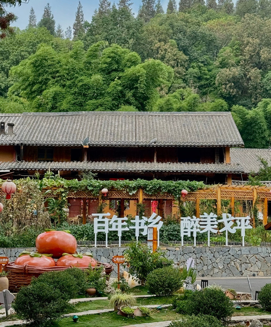 以竹编文化传承的戈平村,基础设施升级,景观节点别致。村前两排数百年树龄的黄连木古树作为天然迎宾, 大片的白色绣球花开成海,大家忍不住拍照。