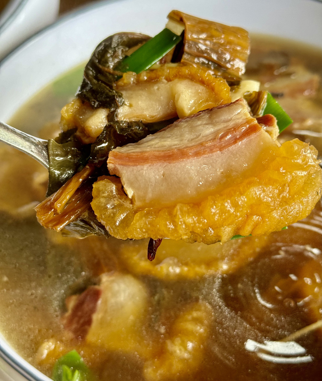 好吧,重点说说他们家吃的,上桌就是现烤云腿,口感简直爆赞!火腿厚切,果然是大户人家才有的豪横!!我第一次吃脆皮五花肉煮汤,一口气吃了三块!烧白也是入口即化,反正大盘大碗才够显示宣威人的特色!