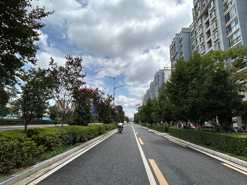 曲靖的骑行条件真是好,单车和电动单车享有一个完整车道宽度的骑行道,骑行道10多公里不断。7月盛夏,路边杨柳依依、凉风习习。