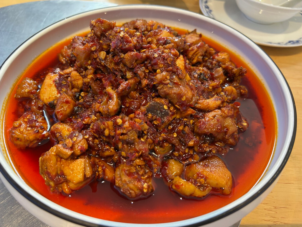 体育公园在沾益区,正好吃个沾益辣子鸡,这可跟四川辣子鸡不同。四川的辣子鸡是辣子里面找鸡,沾益辣子鸡满满一盆鸡,只有糍粑辣椒酱炒,实在。