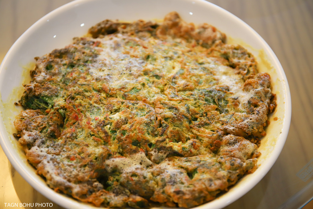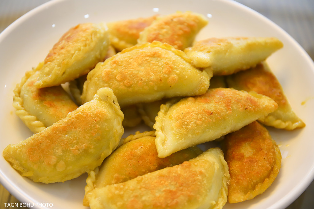 有一道菜就像煎饺一样大小的包子,有点像韭菜盒子,里面包着各种混合的菜。