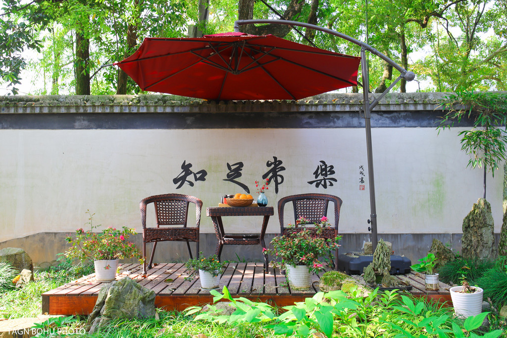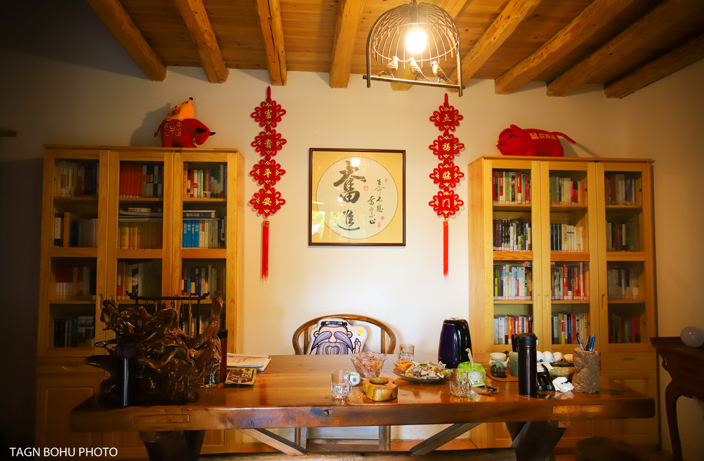 幽静的庭院,享受这里的阳光,感受这里的温暖。捧一杯热茶,拿出一本书,贪恋着自己的时光,渐渐的就忘了什么季节,也忘了身在何处。 就像茶桌后面那几个知足常乐一样,在这里放慢脚步,享受着田园慢生活。