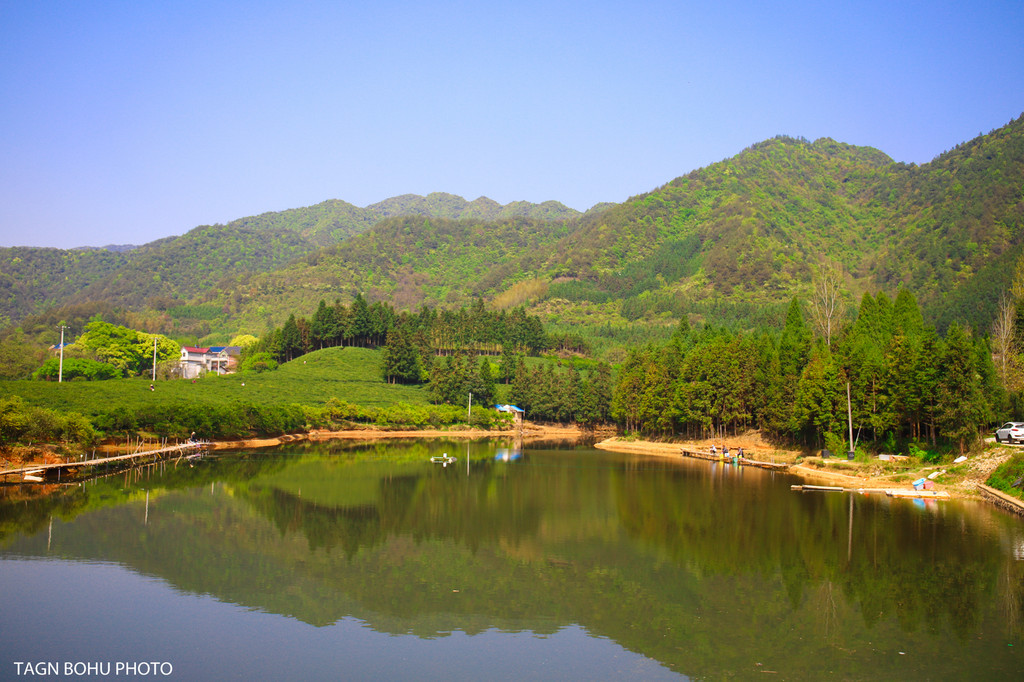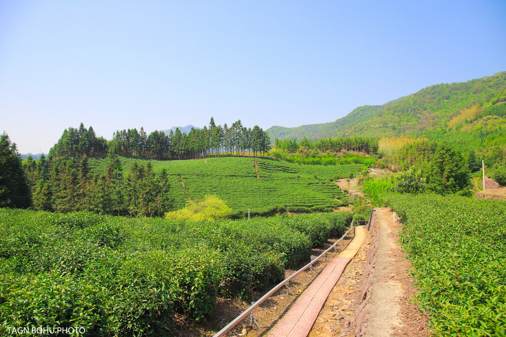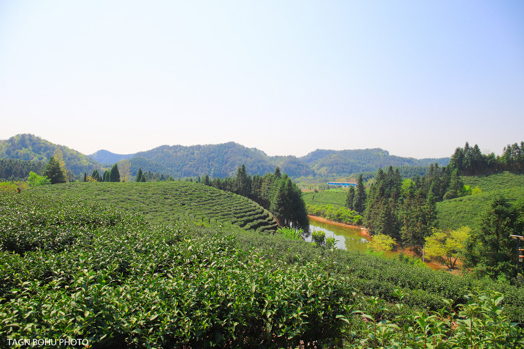 走进茶园,一股清新的空气扑面而来,会让你感觉心情非常舒畅。这个村里最有特色的,就属茶园的景色最美了。碧绿的茶园,一眼望不到边,蔚蓝的天空和绿色的茶园融为一体。茶园一山连着一山,在这个人间最美四月天里,漫步在茶园中,这里远离城市的喧闹更多的是一份宁静,让你觉得大自然是一幅美丽的风景画。