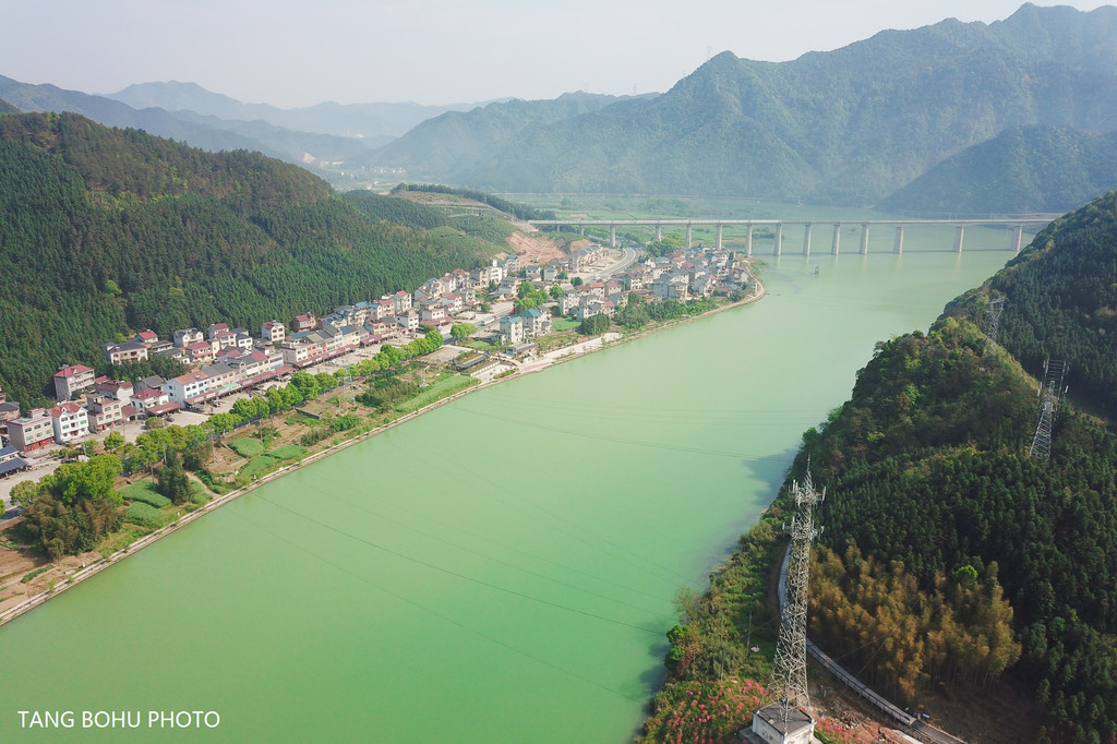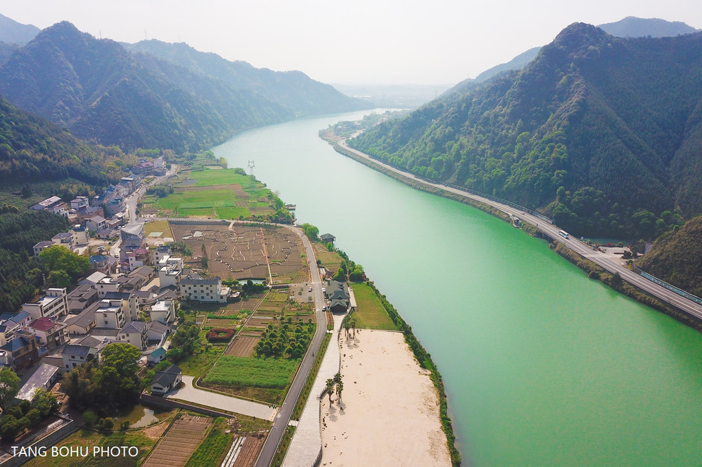 在常山有一个地方叫月亮湾,顾名思义那是一条弯弯的河经过一个村庄前,从空中俯瞰这条河就像是一轮弯弯的明月一样,所在就叫月亮湾。翠绿色的河水缓缓向东流去,村庄沿着河岸两边而建,当我们的车往慢慢地从比较直的公路慢慢变成了一条弯弯的公路。对岸的村庄在河边还有一处人工造的沙滩,这里便是夏天纳凉的好地方。