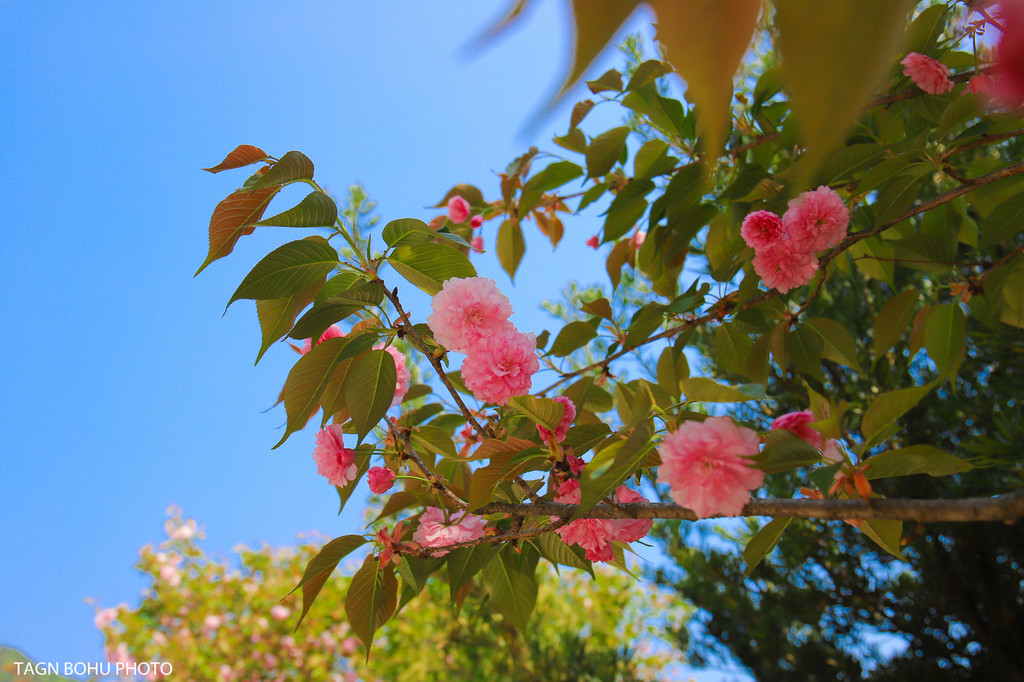 漫步在茶园里的小道上,沿着山上走,两旁的樱花开得正艳,粉丝红色的樱花在微风轻轻的一吹,花瓣落了下来,犹如一只粉色的蝴蝶一边在翩翩起舞,一边在唱着美妙又悦耳的歌声。又宛如给大地铺上了粉白相间的地毯。樱花给这片绿色的茶园增添了不少了美丽的色彩。