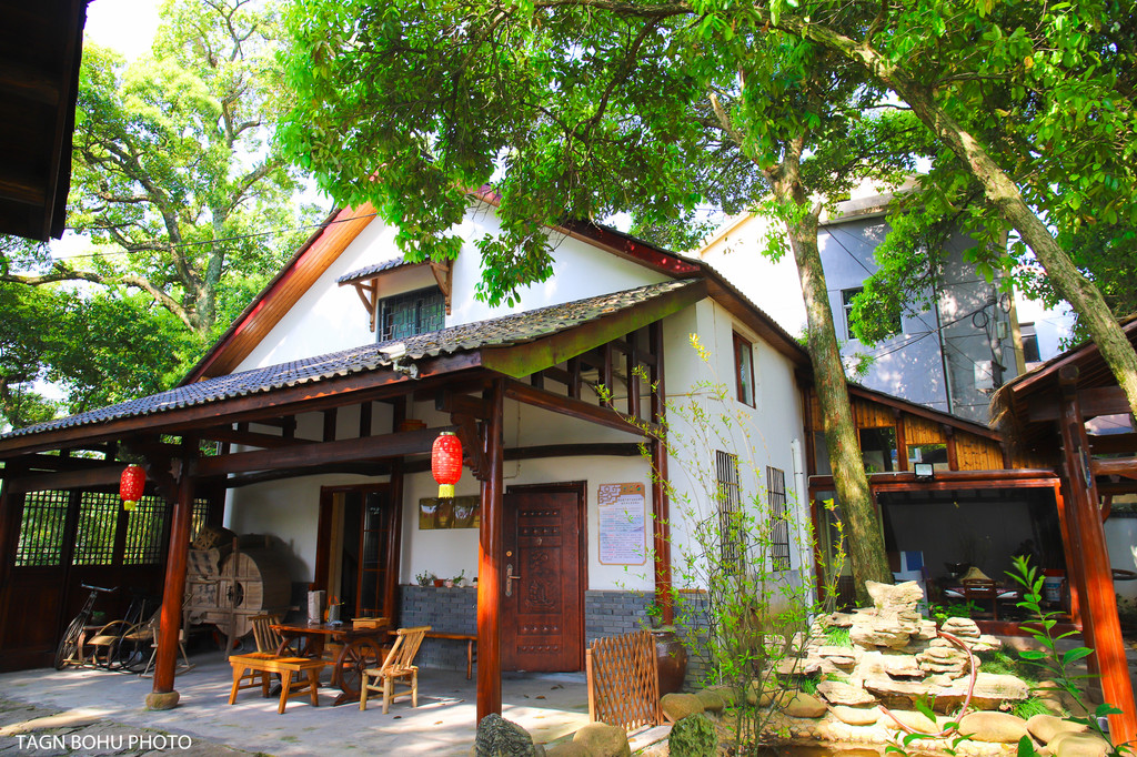 现在出门旅行选择住宿有多种选择,晚上来到了一个叫彤弓山村的地方,这里古树众多,住进彤弓山居精品民宿,这家民宿被周围几十棵苦槠树争相环抱,有的树龄在500年以上。当我推开彤弓山居的大门时,被民宿的小院子的景色深深吸引住,沿着石子路走近民宿的院子,艳丽的杜鹃花开满了整个庭院,院子后周围被绿油油的树包围着。单看院子就让我想住在这里,一方庭院深幽处,半卷闲书一壶茶。农舍、书舍在这里,可以让你体验到不同特色院落的慢生活。