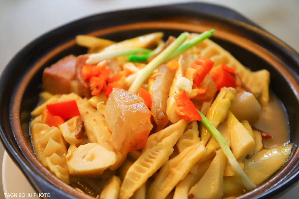 鸭肉也是我喜欢的一道菜,这和我们当地的姜母鸭很像,只是没放那么多姜而已。鸭肉鲜美,肉质比较瘦也是比较好下饭,肉汤加点在饭里面味道更是不一样。香椿炒蛋味道很独特,第一次吃到。和平常葱花炒蛋的味道完全不一样。这个只有在春天才能吃到的香椿,很幸运在这里就吃到了。