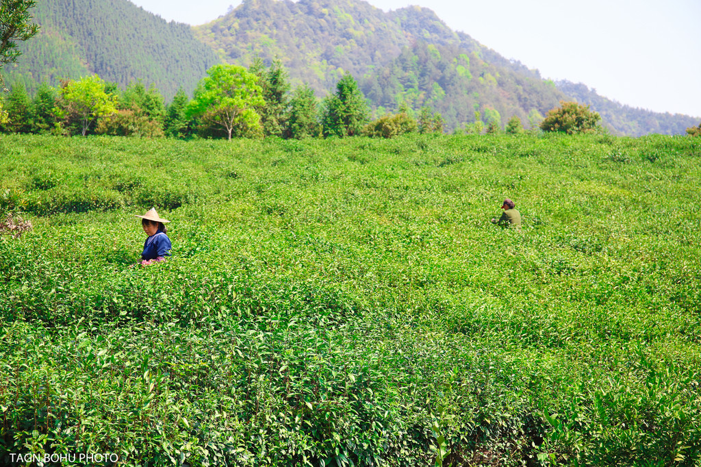 第一次来到衢州的常山这座小县城,行走在小城里处处都是绿意盎然的景象,四月份的天气不冷也不热,正是采摘春茶的好时机,一早就来到银毫凰岗的茶山上,首先引入眼帘的是一片绿色的海洋,一棵棵不高也不矮的茶树,一眼望不到边,一山连着一山,这是一片茶园的海洋,仿佛是一片绿色的地毯。如果把眼前的景色看作一大幅活的画,那画家的本领可真了不起呀!