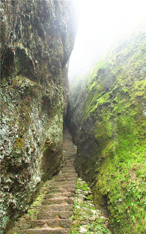 江郎山三峰之间有大弄、小弄可出入。小弄内岩壁如削,高312米,长298米,宽仅3米余。被华东56位地质学家勘定为“中国一线天之最”。