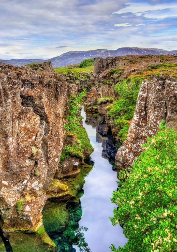 在辛格维利尔国家公园,体验脚踏两大洲的震撼。感受火山运动给冰岛留下的最美伤疤,丝浮拉大裂缝。