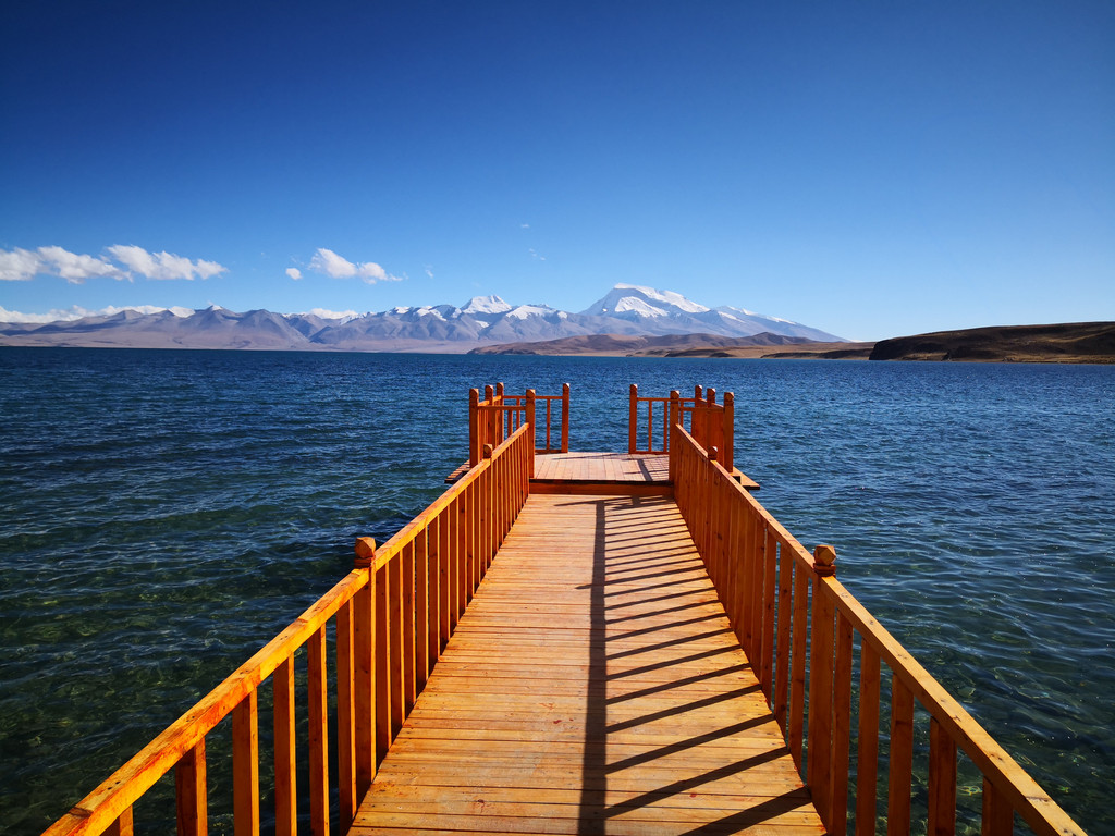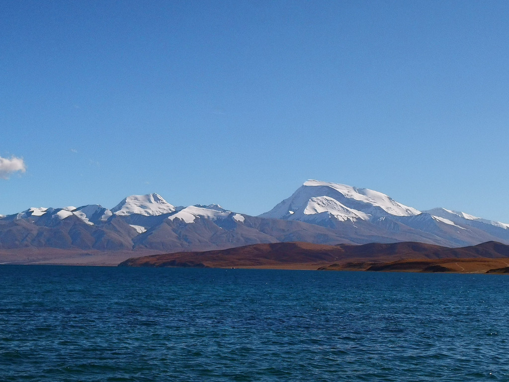 相邻的玛旁雍措也是西藏三大圣湖之一,湖边是纳木那尼峰