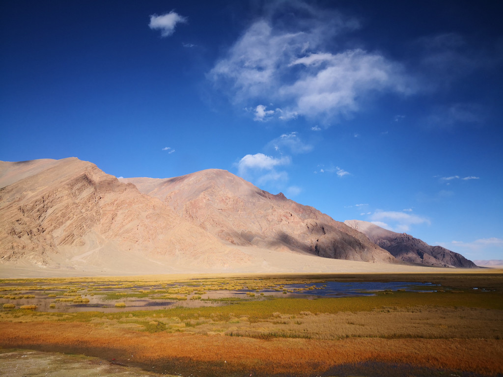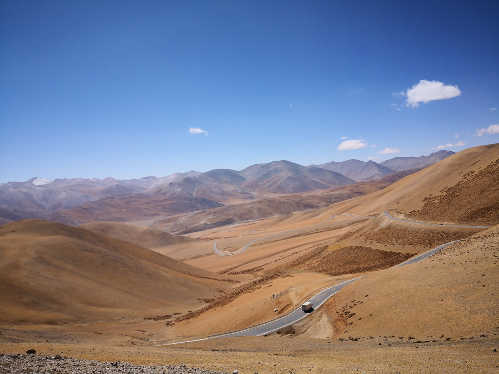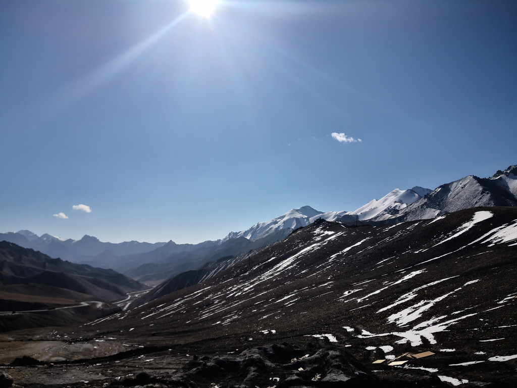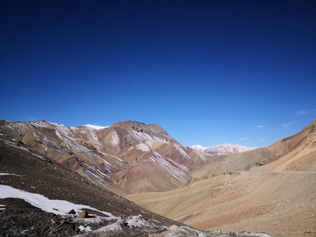 翻过海拔5191的拉梅拉达坂,去班公湖这段都是连绵雪峰,山坡上基本没有植物了,但色泽很丰富,恍若油画般明亮。