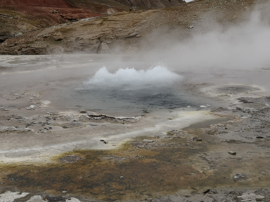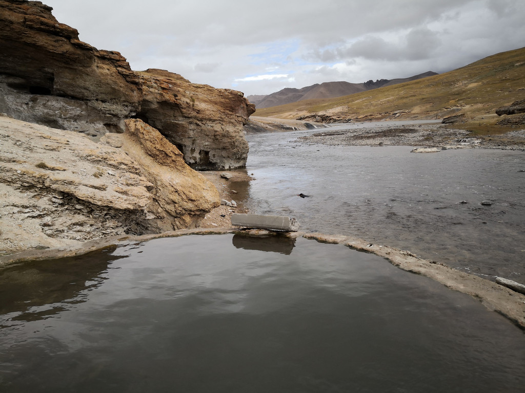 路过世界海拔最高的间隙地热泉——达格架喷泉,海拔5084,看到藏民就在温泉旁睡觉。我们也去凑个热闹,泡个脚解解乏。