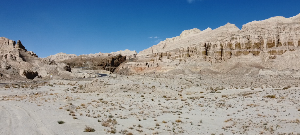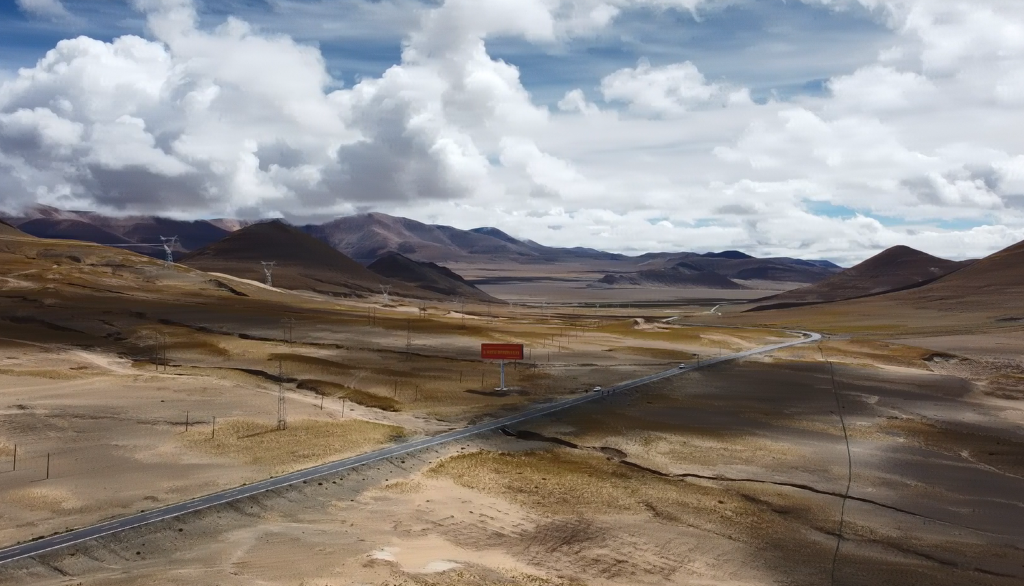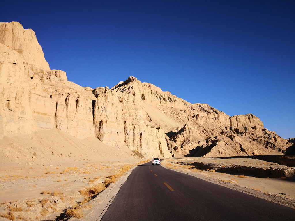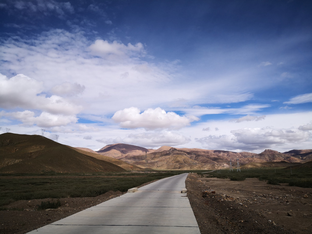 出多玛后公路一直在戈壁上穿行, 路途中经常数百公里没信号和人烟,不过风光景色壮丽迷人。