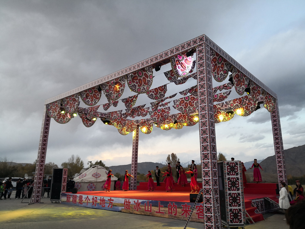 今天有赛马,有歌舞表演,赛马还有赛骆驼,赛马会场是深圳援建的