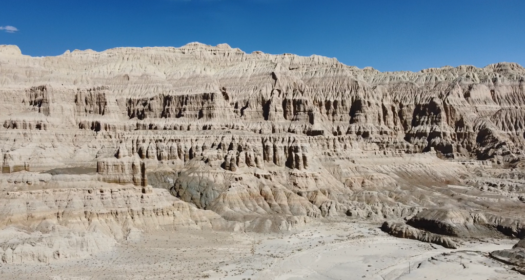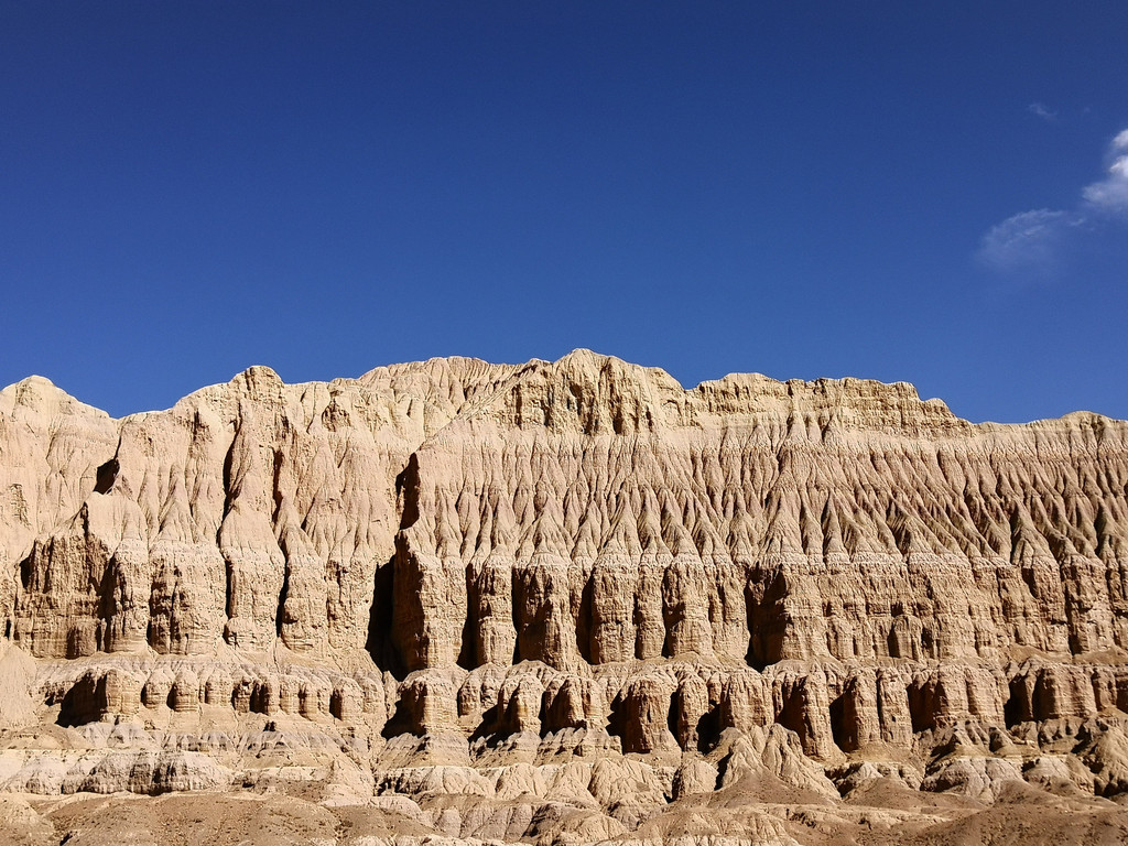 从高海拔穿进低海拔的土林城,进入环绕扎达的奇异土林地貌——札达土林。札达以其土林闻名于世,城堡、碉楼、宫殿,气势磅礴,比之新疆魔鬼城是更加雄伟壮观得多。这里几百万年前还是河湖,经流水侵蚀而形成的特殊地貌,在高原迷幻光影的衬托下,宛若神话世界。