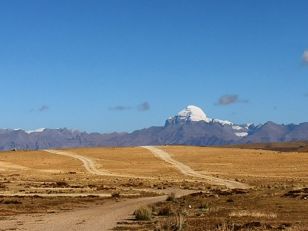 神山冈仁波齐雄伟地矗立在路边,很远的就能望到
