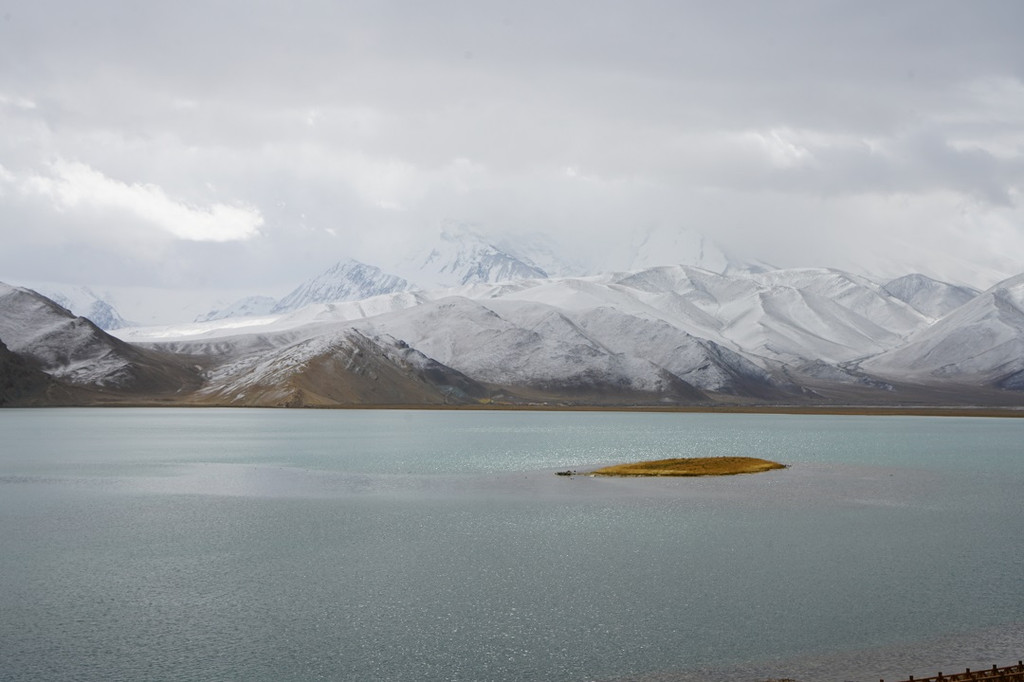 卡拉库里湖位于慕士塔格峰的山脚下,中巴公路从湖畔经过,水面映衬着巍峨又神秘的慕士塔格峰。