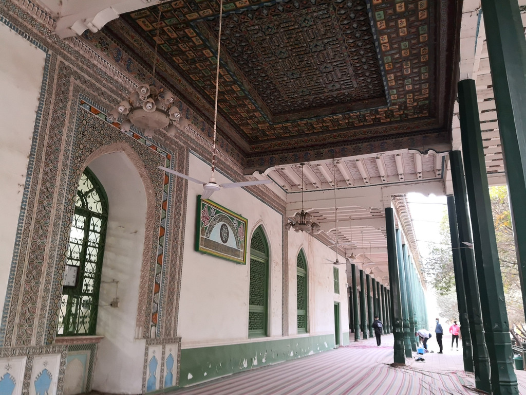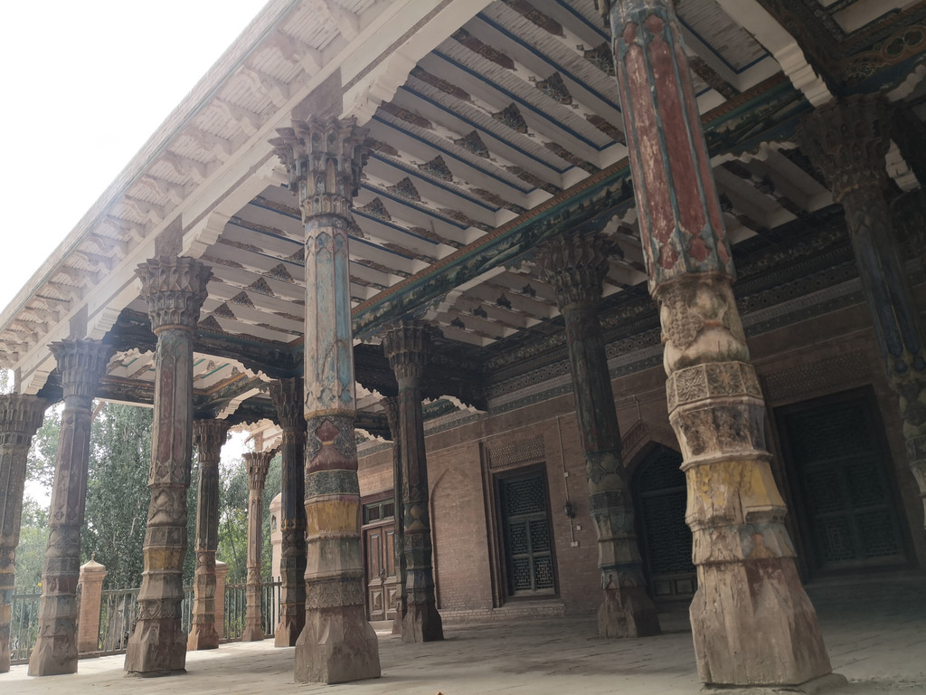 香妃墓的后面也值得走走,加满清真寺的六十二根柱子由六十二位工匠精雕而成,每根都不一样的