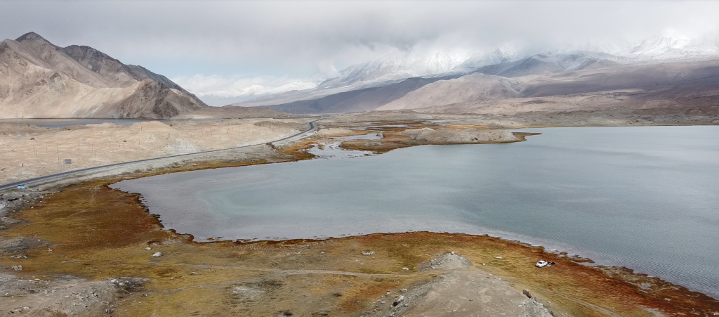 中巴友谊之路刚完成路面铺装,状况良好。公路两侧雪山林立、湖泊遍地,去塔县时走的是夜路,没能好好欣赏,现在花个半天时间慢慢补上。