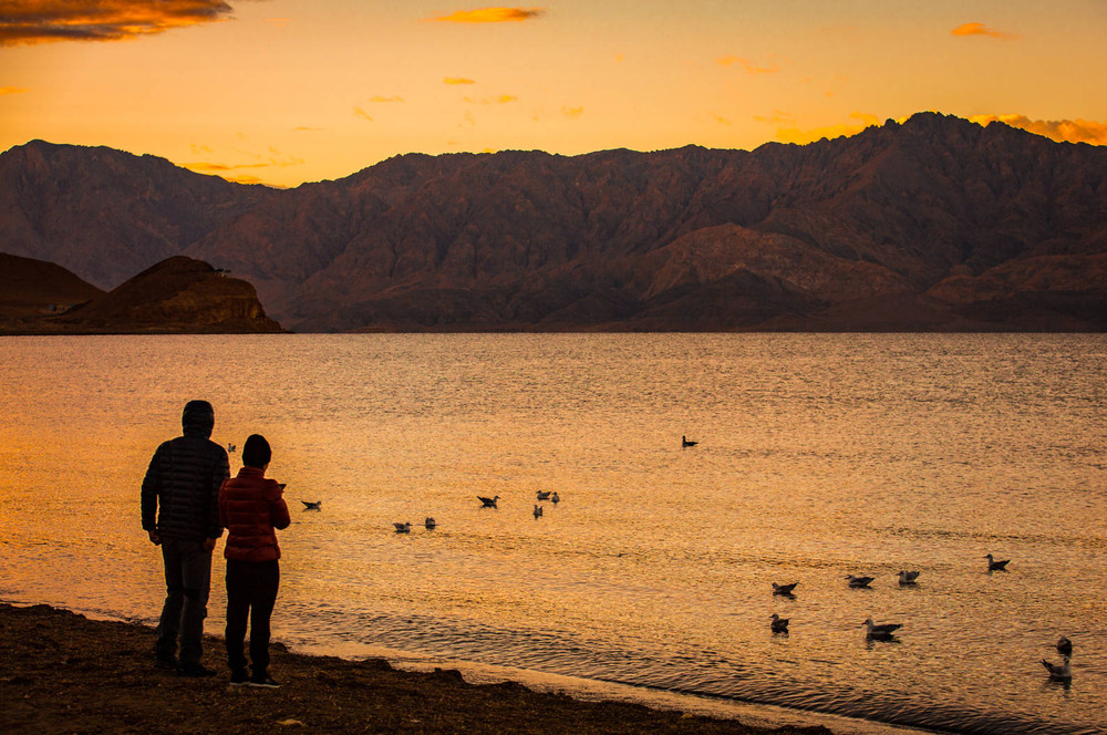 班公湖日出得晚,早上起来可以从容地看太阳慢慢地唤醒湖面,曙光清澈温暖,人儿成剪影,特别的温馨。而我是被海鸥唤醒的,来的路上偶遇守湖的战士,他们说到了下个月,整个湖面都会结上蓝蓝的冰,非常壮观,我是9月底到的,我问:那些海鸥会转移到哪里呢?