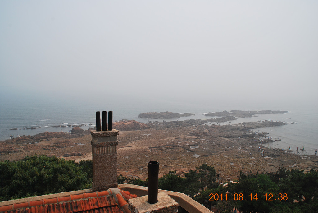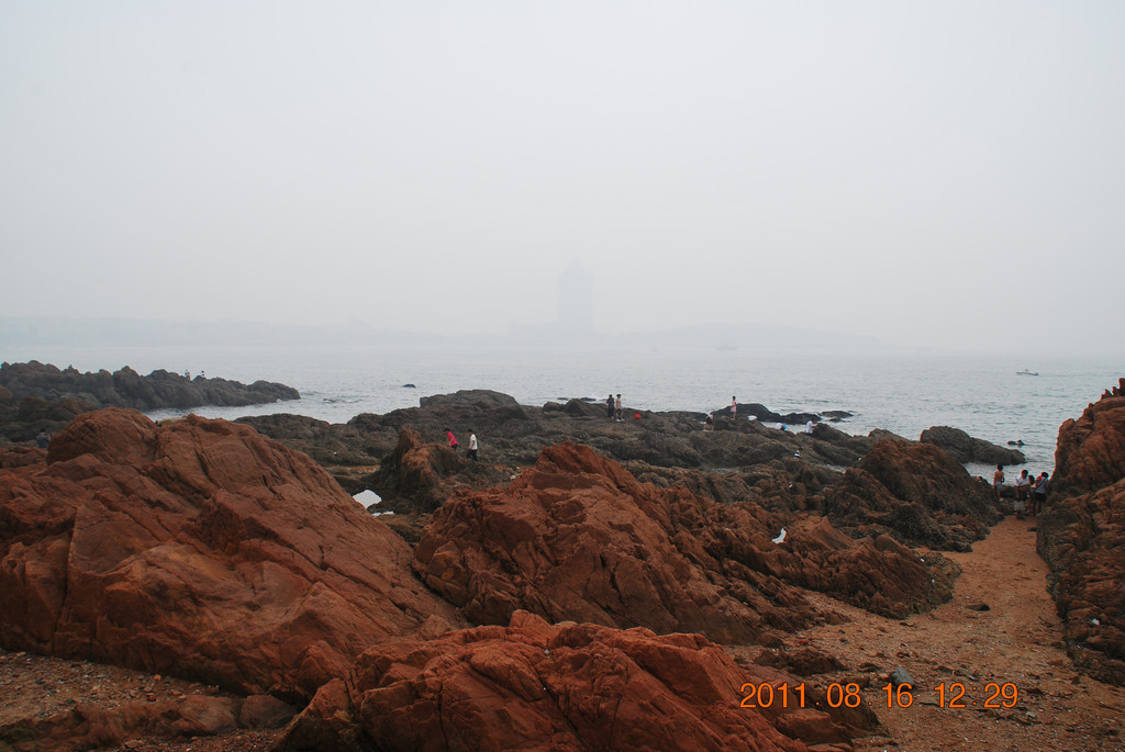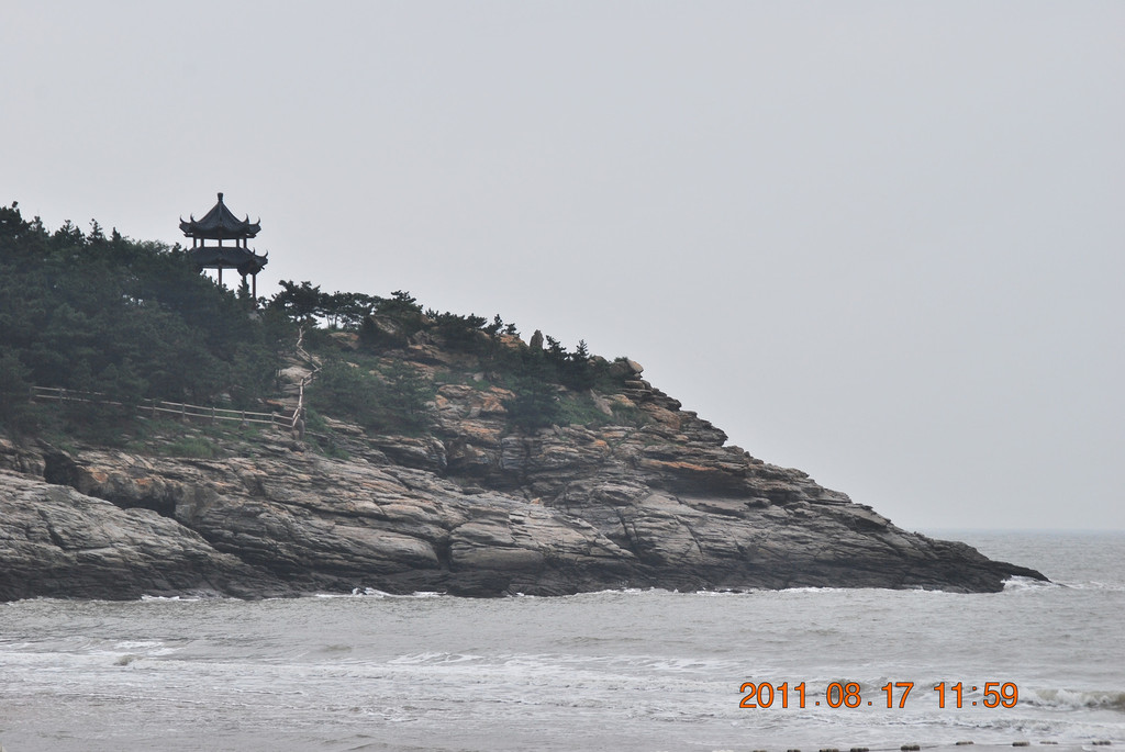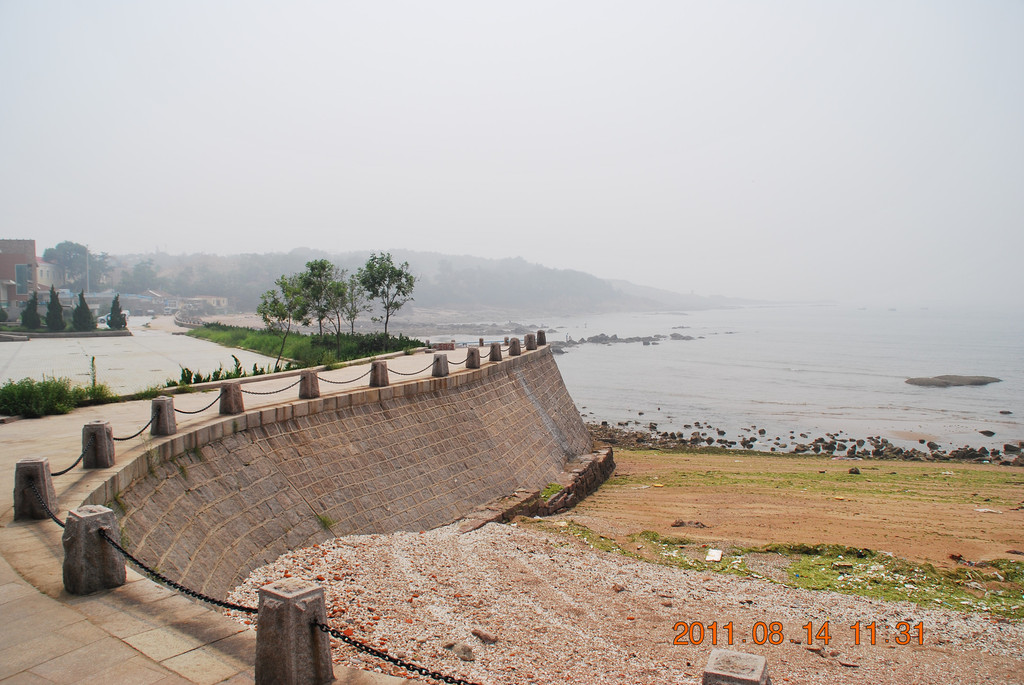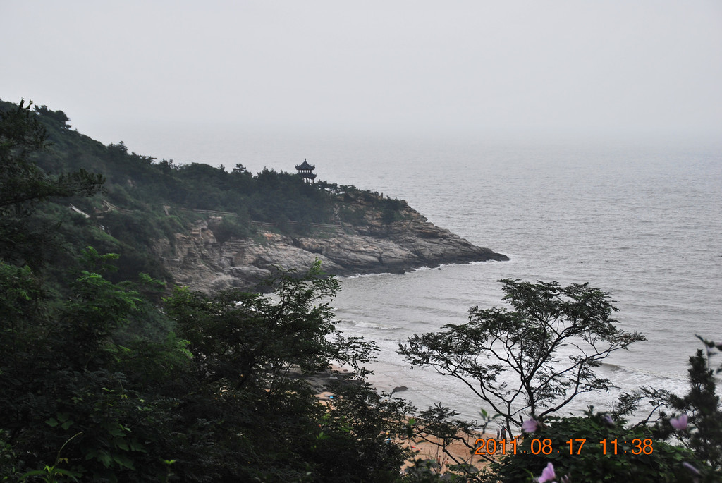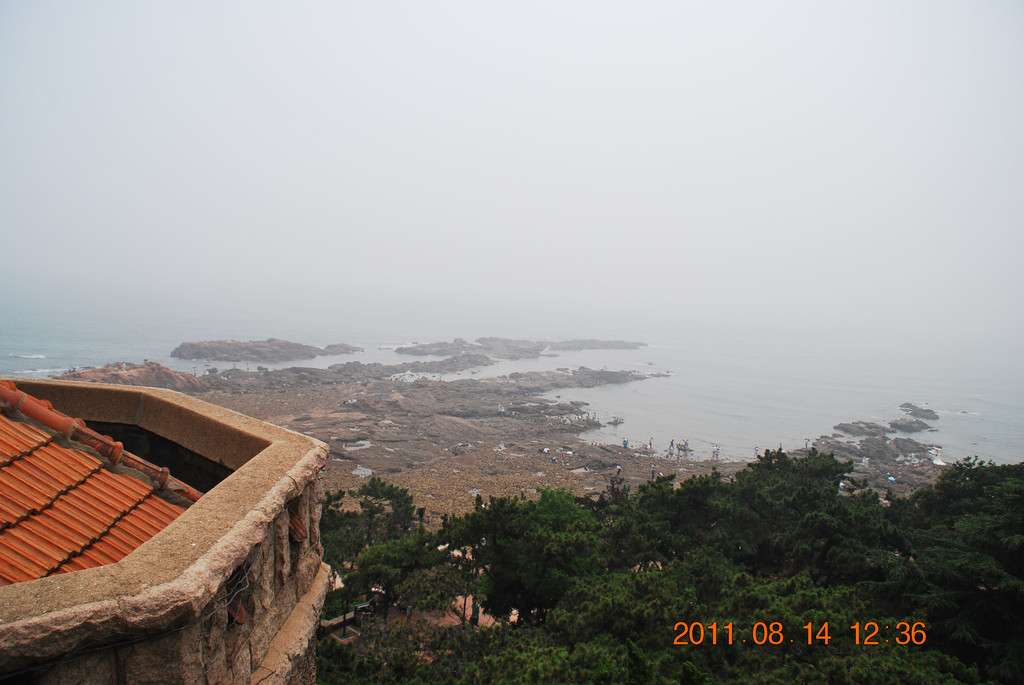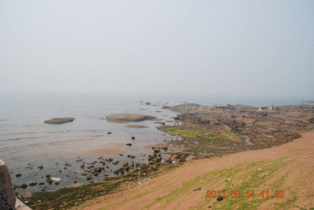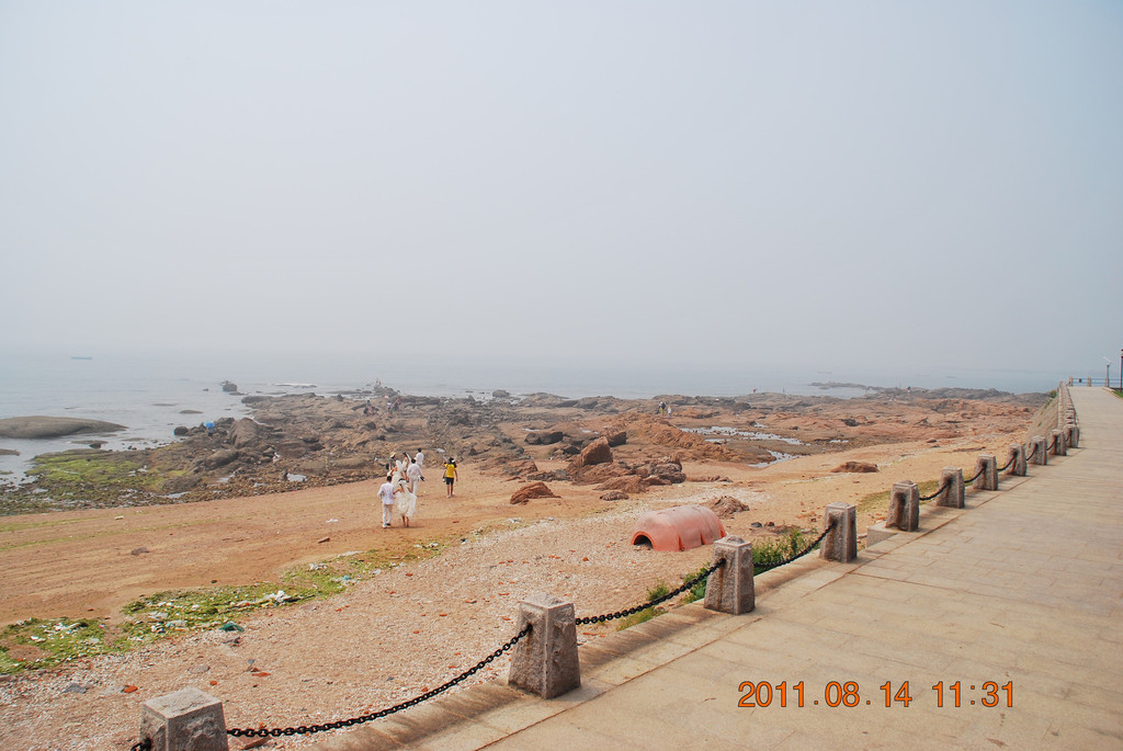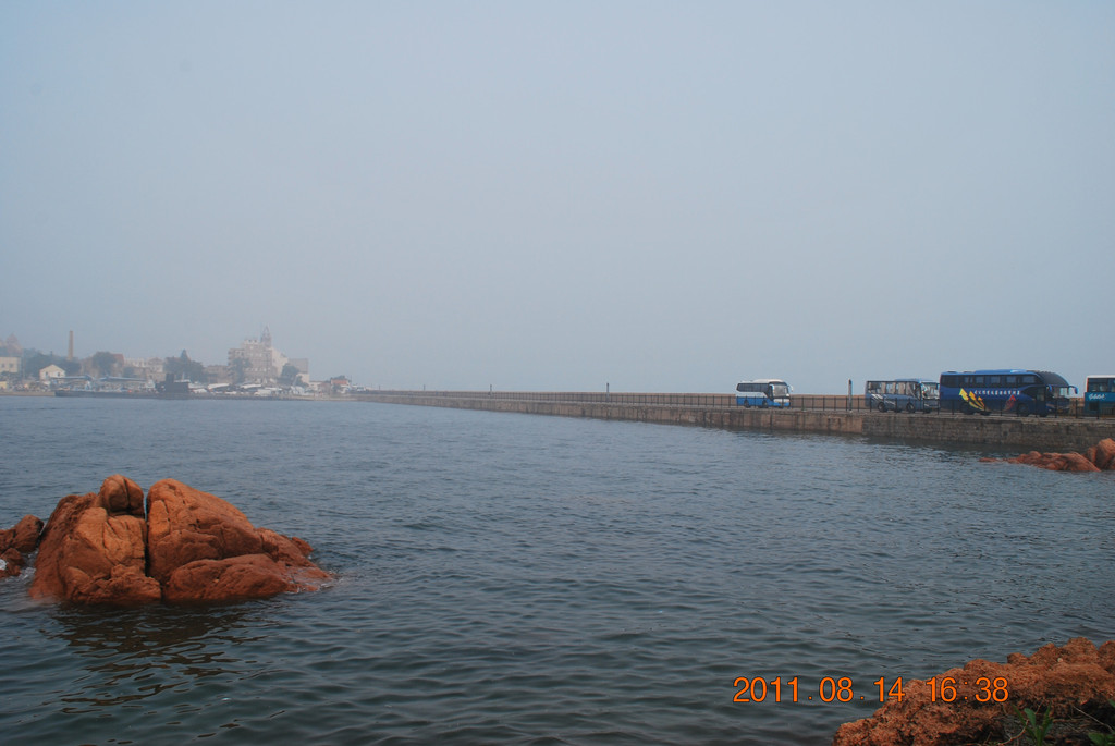 图片右侧的海中有一块模糊的石头便是石老人,我碰上雾天,拍得不清楚。