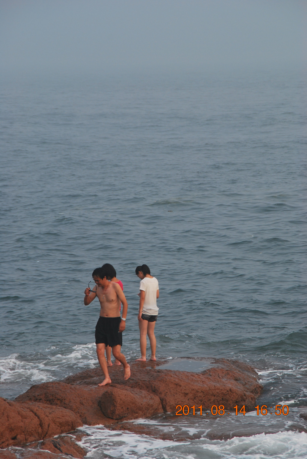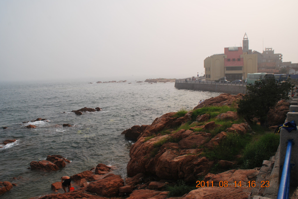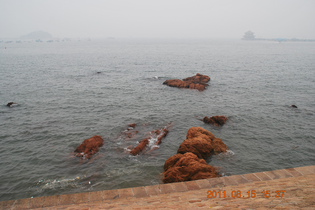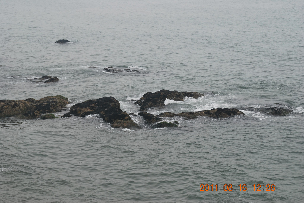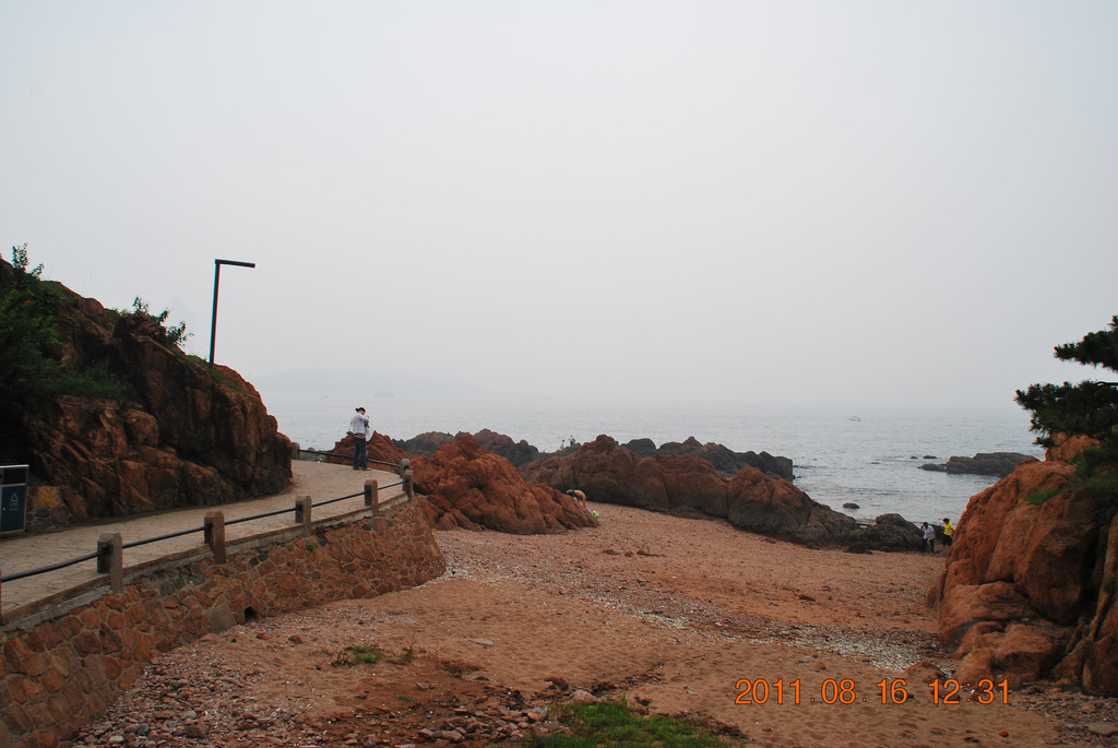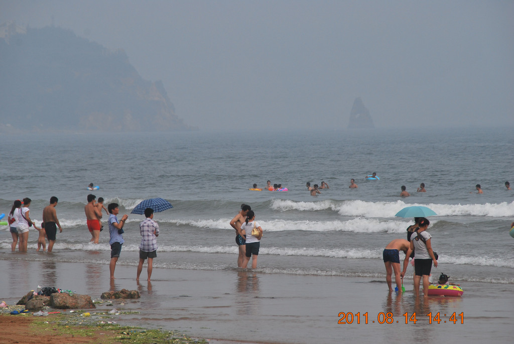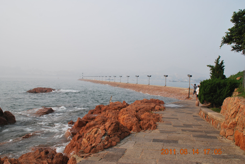 图片右侧的海中有一块模糊的石头便是石老人,我碰上雾天,拍得不清楚。