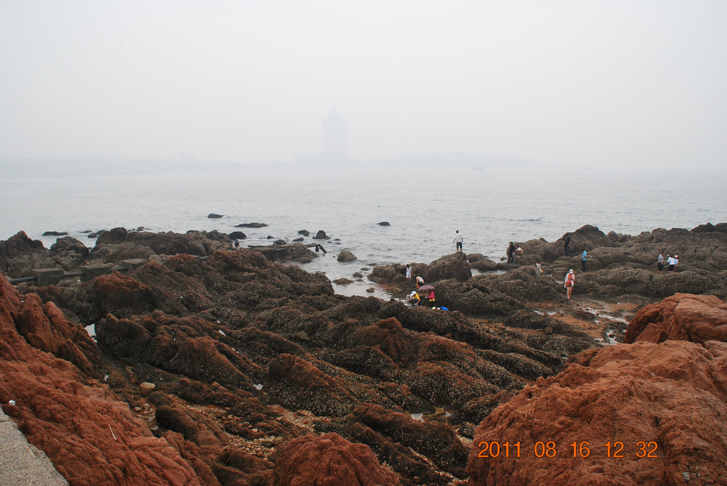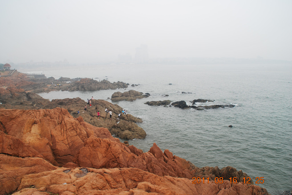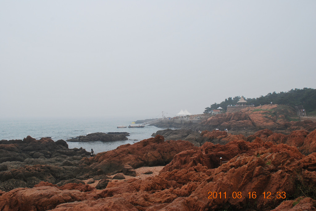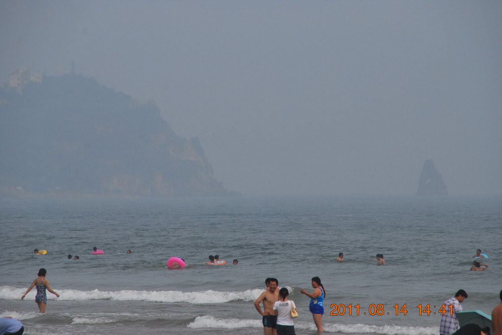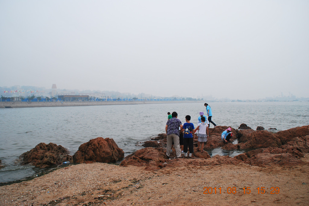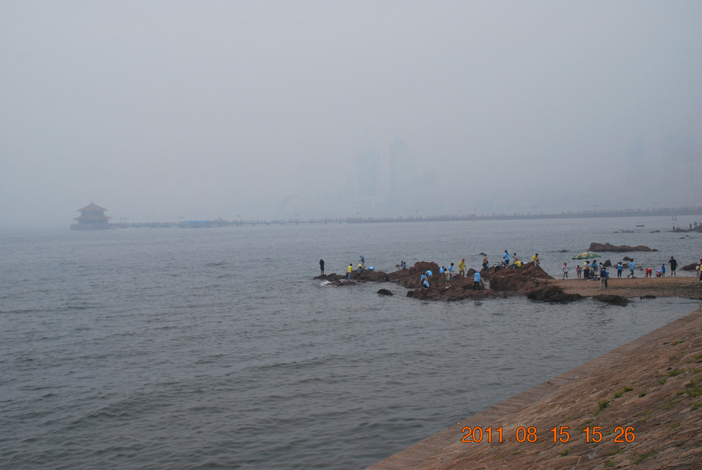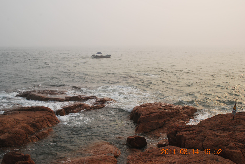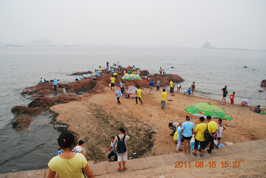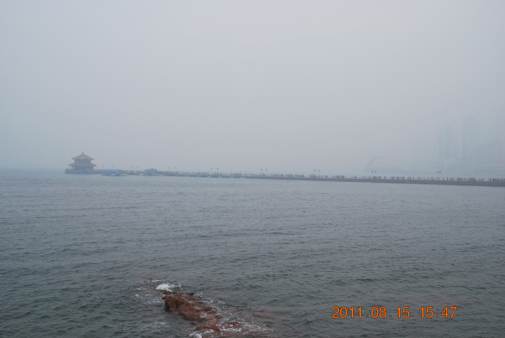 图片右侧的海中有一块模糊的石头便是石老人,我碰上雾天,拍得不清楚。
