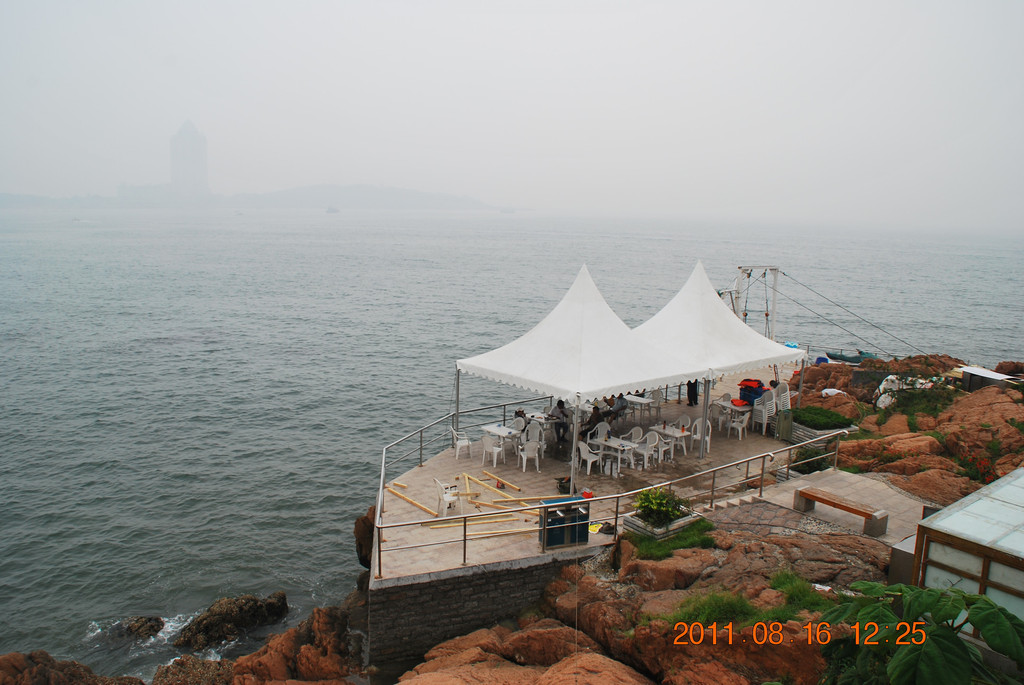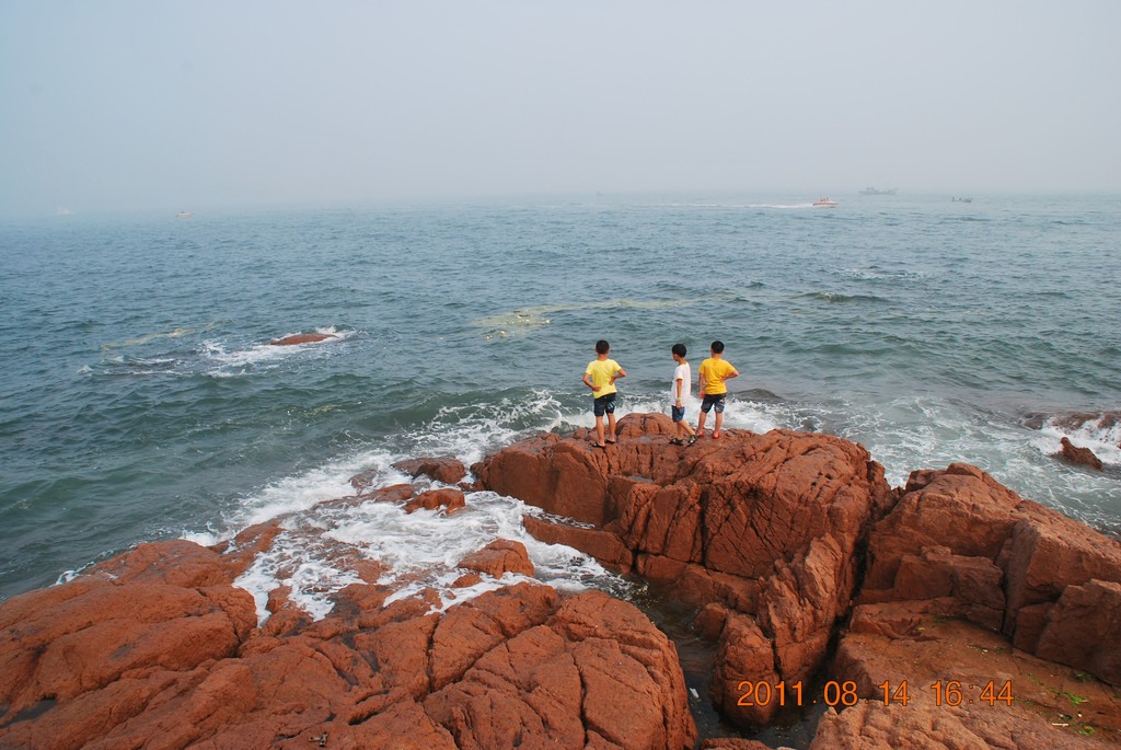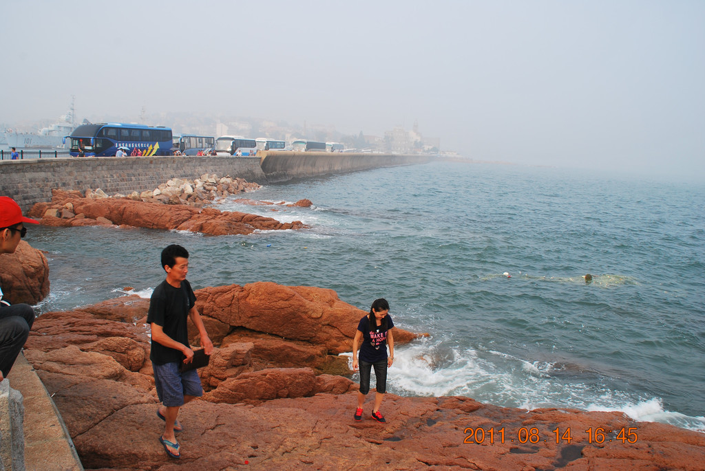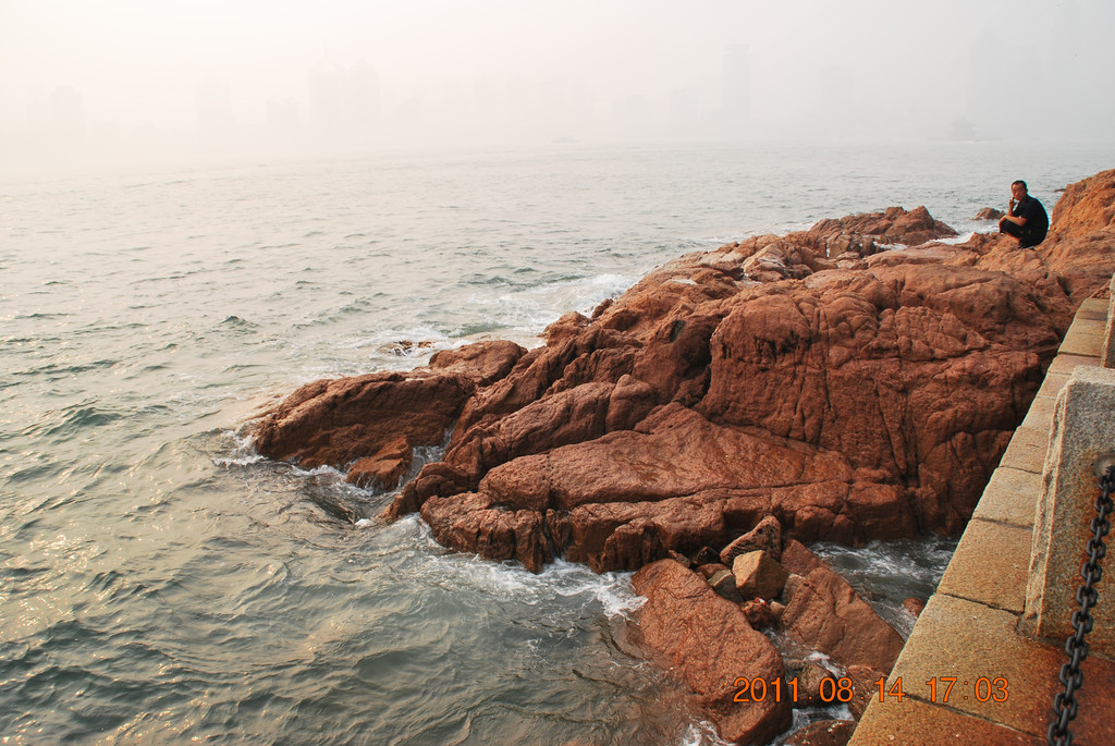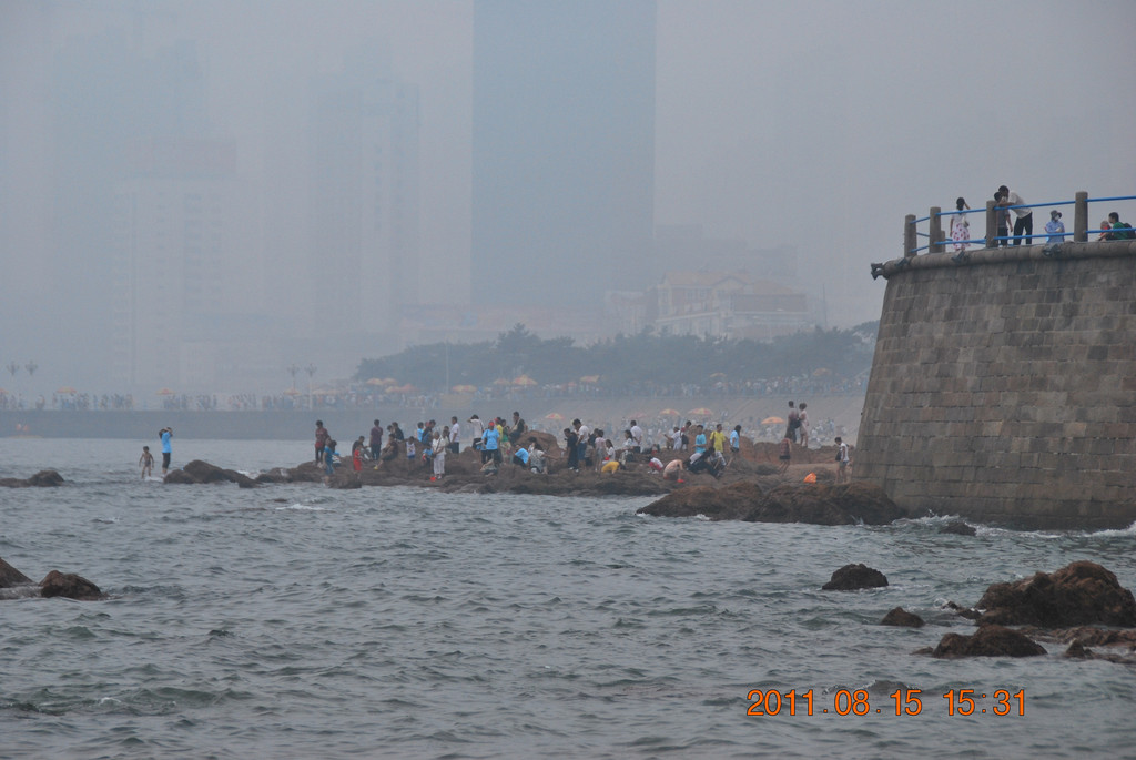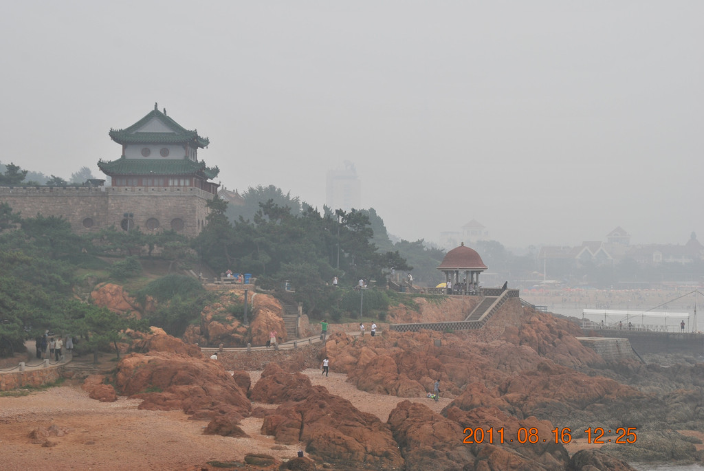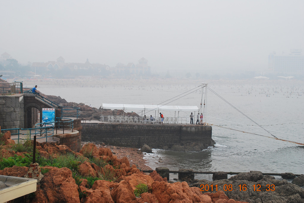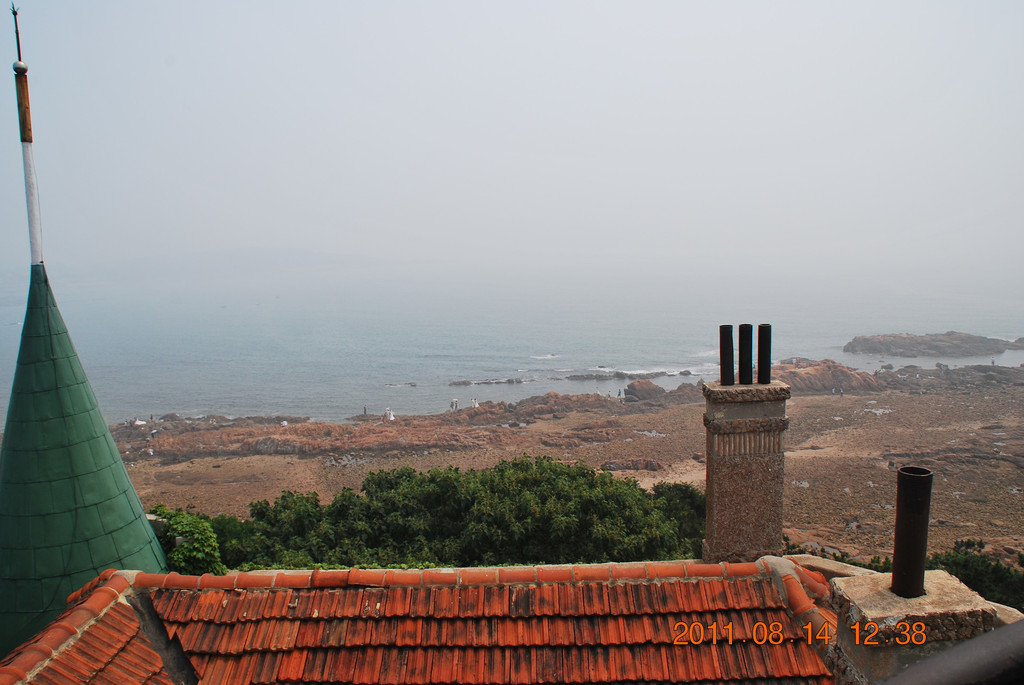 图片右侧的海中有一块模糊的石头便是石老人,我碰上雾天,拍得不清楚。