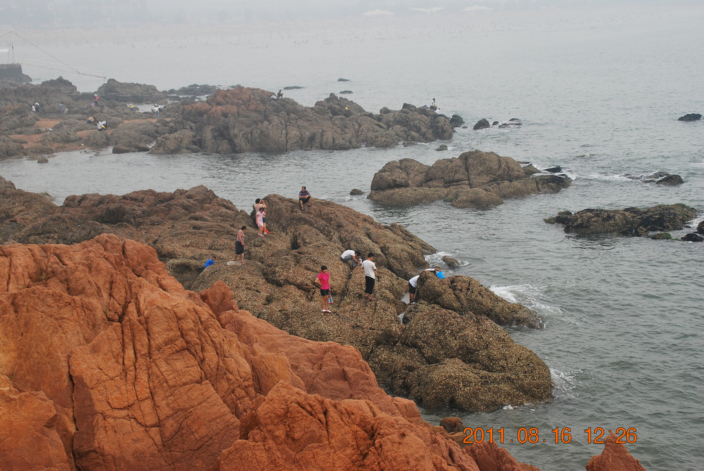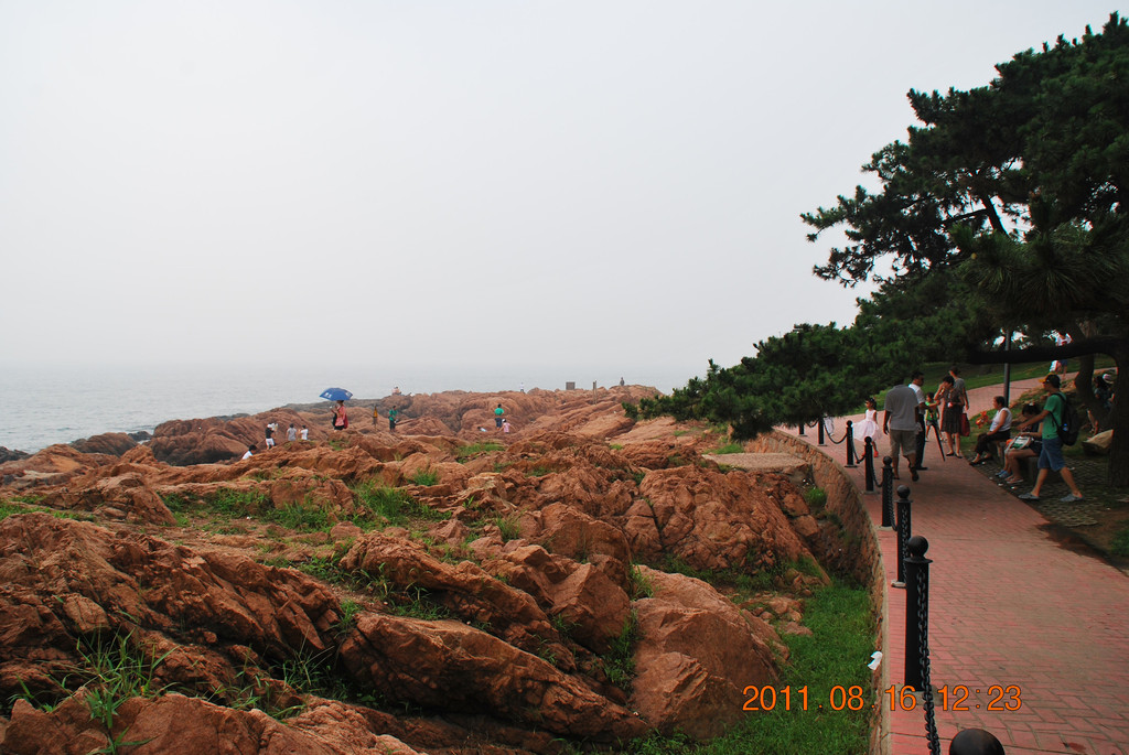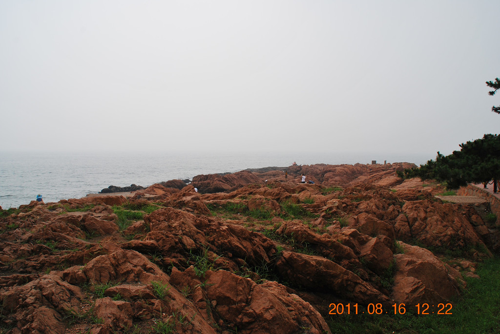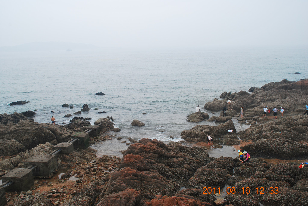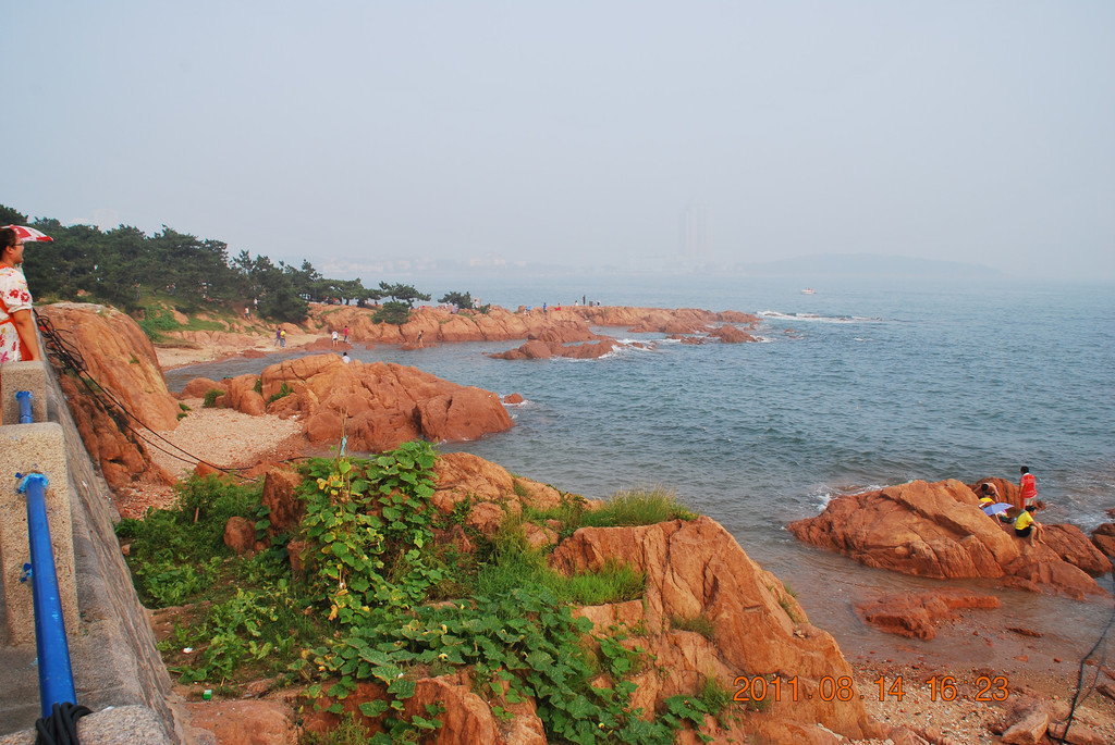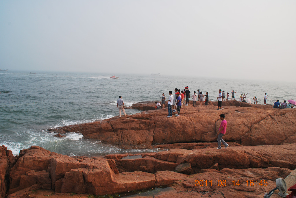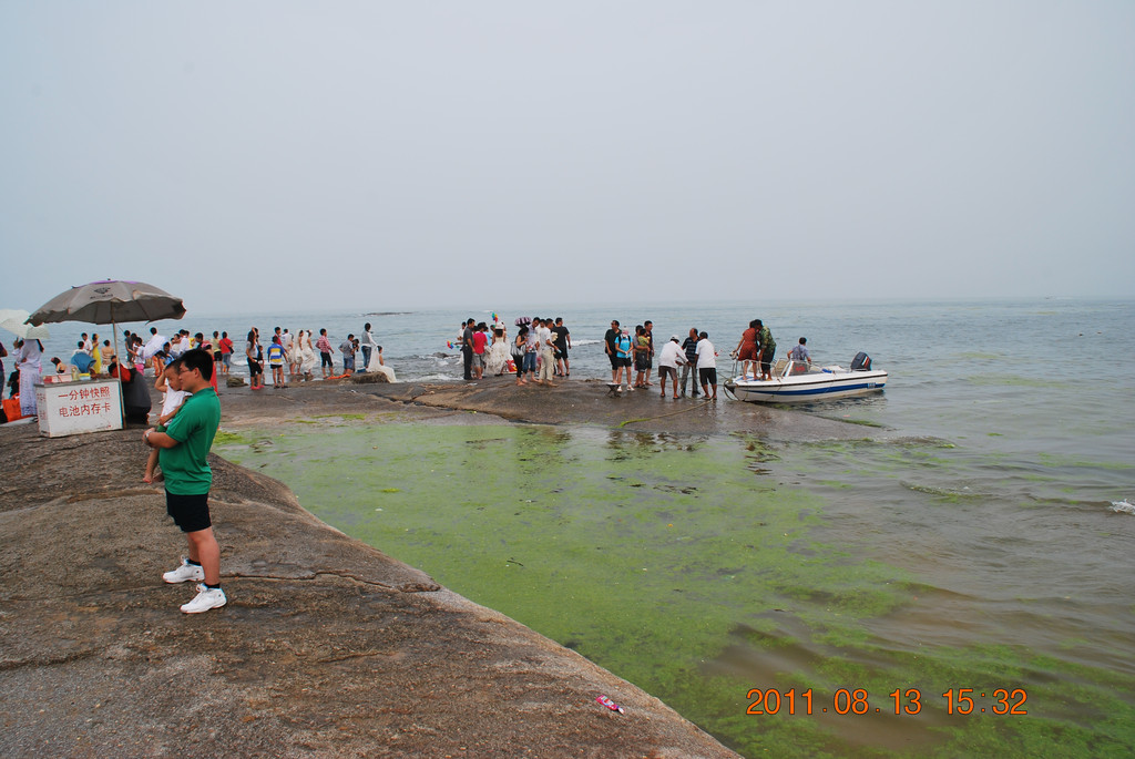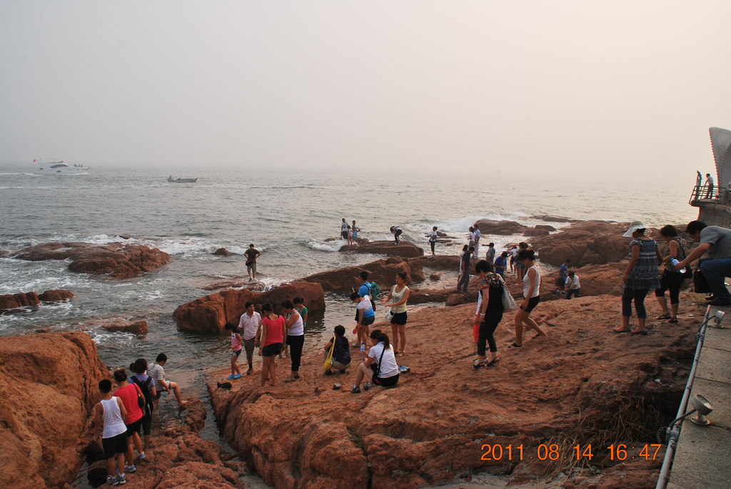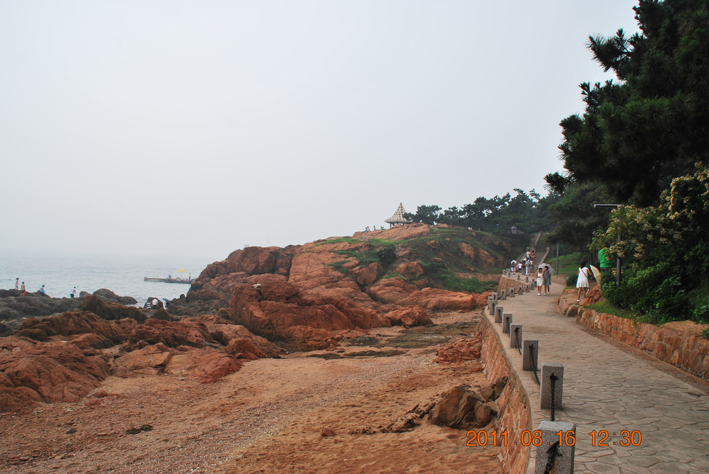 图片右侧的海中有一块模糊的石头便是石老人,我碰上雾天,拍得不清楚。