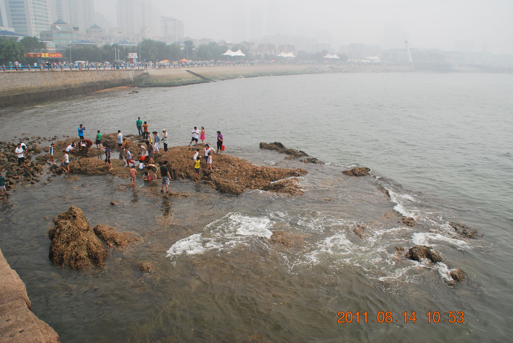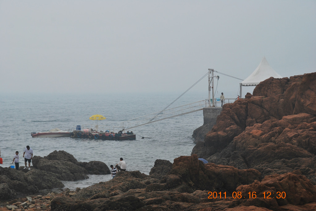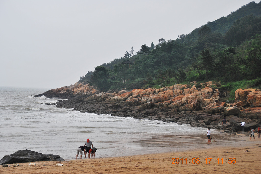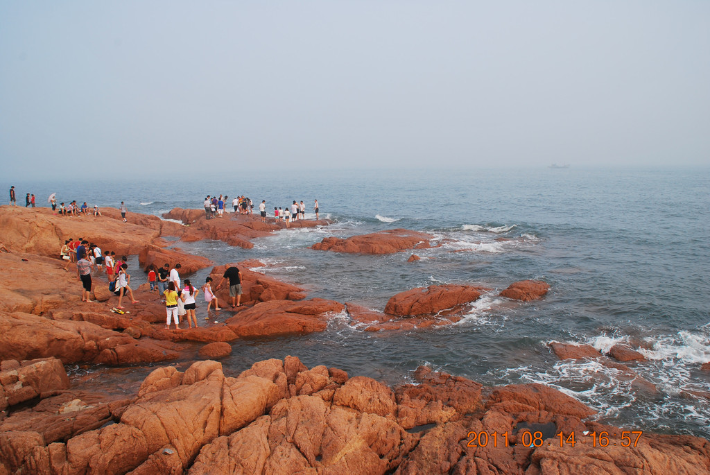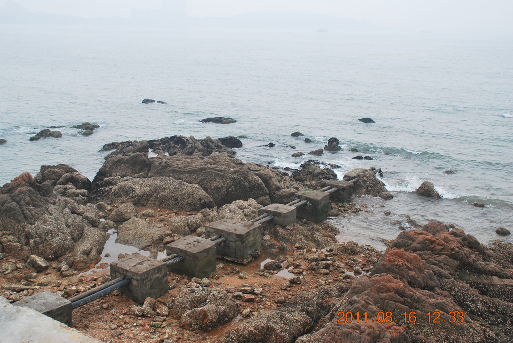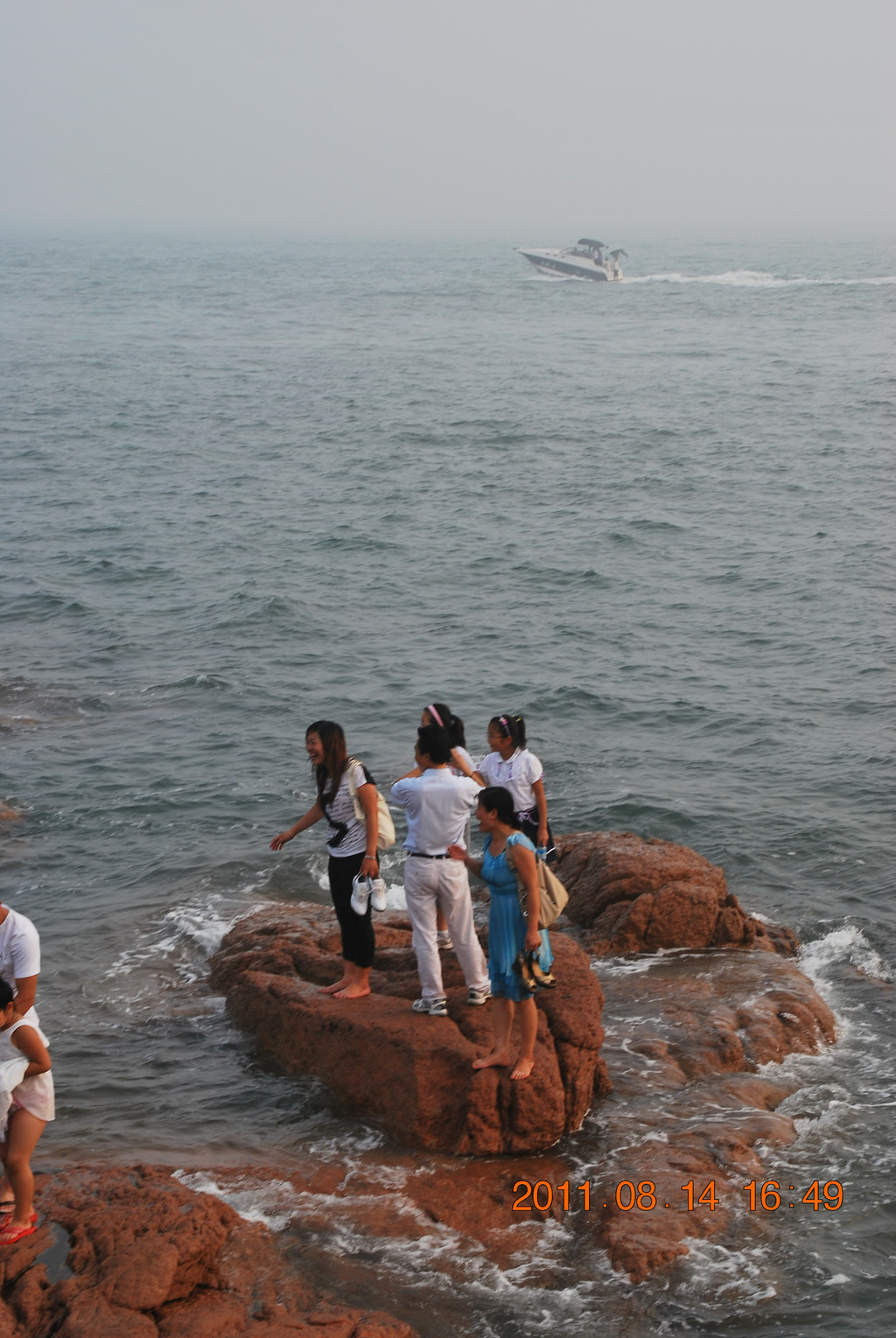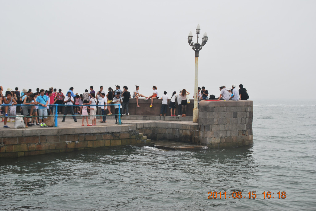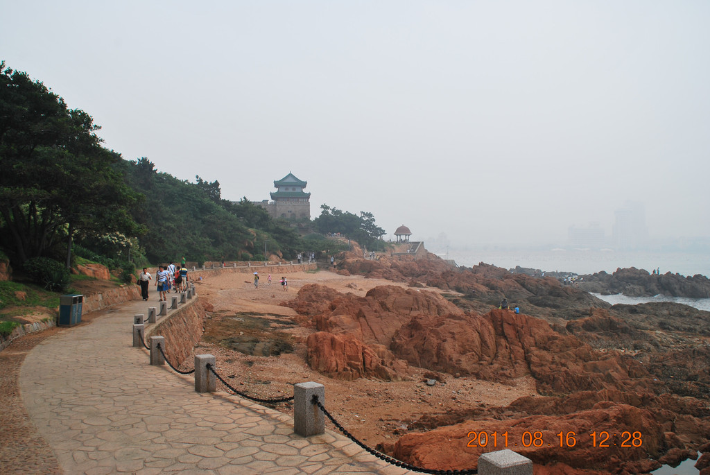 图片右侧的海中有一块模糊的石头便是石老人,我碰上雾天,拍得不清楚。