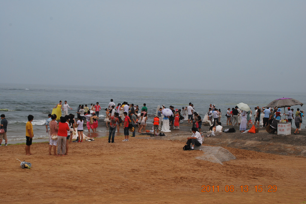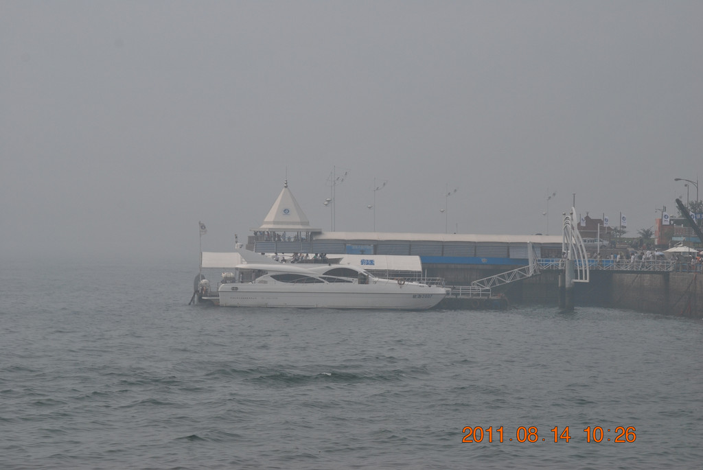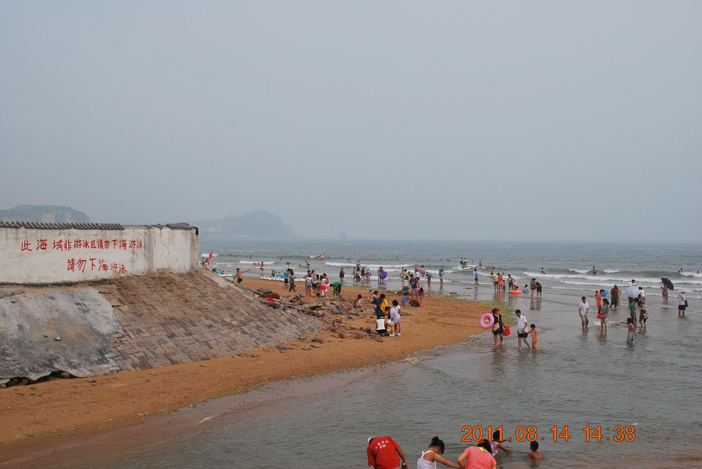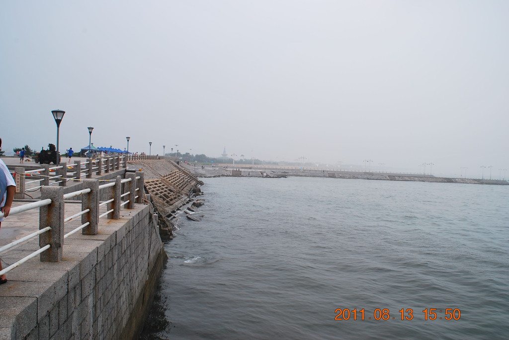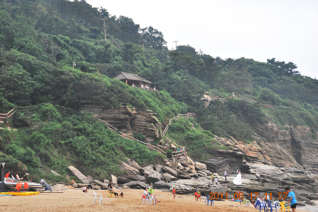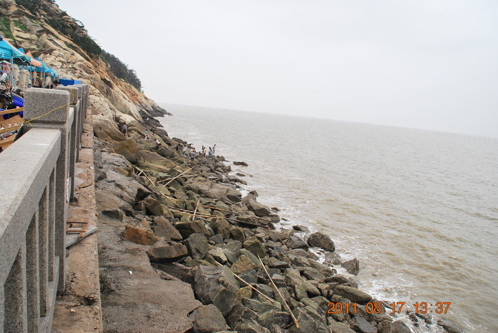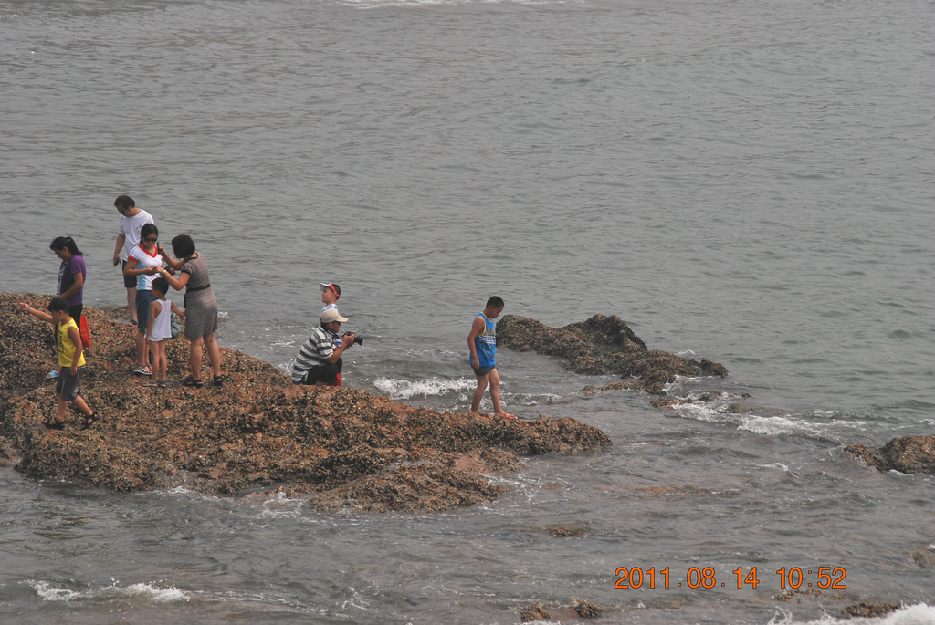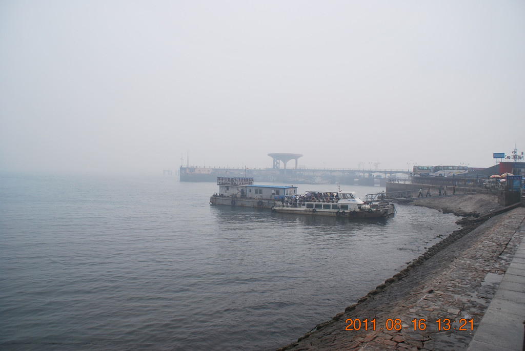 图片右侧的海中有一块模糊的石头便是石老人,我碰上雾天,拍得不清楚。