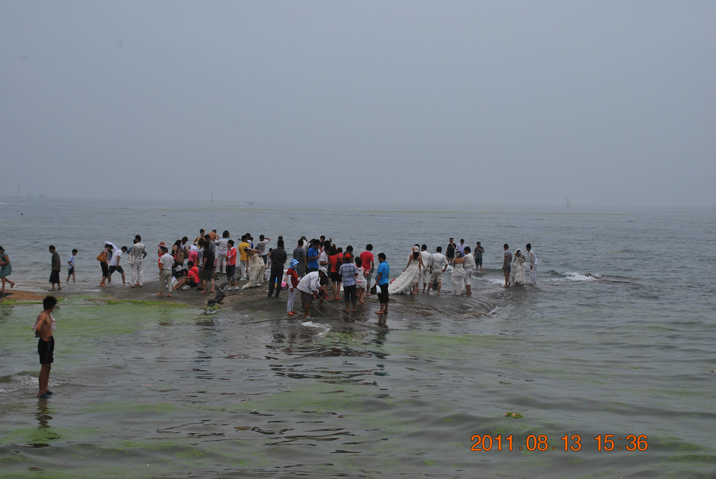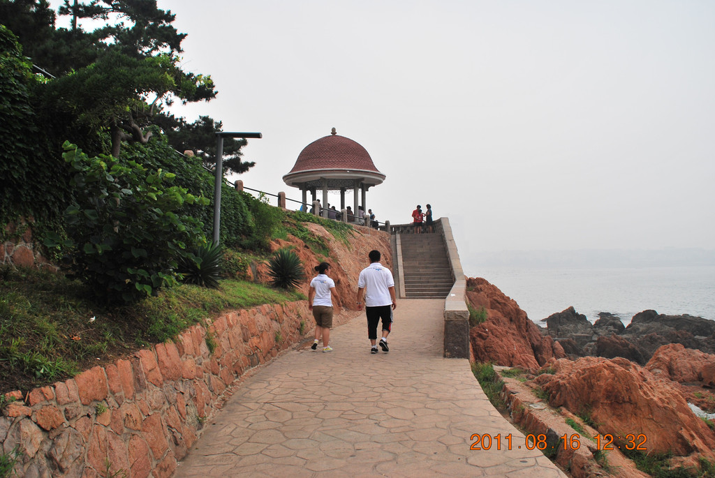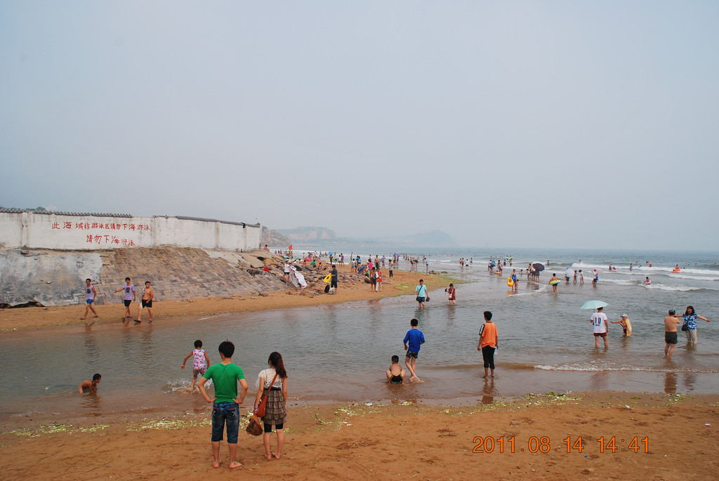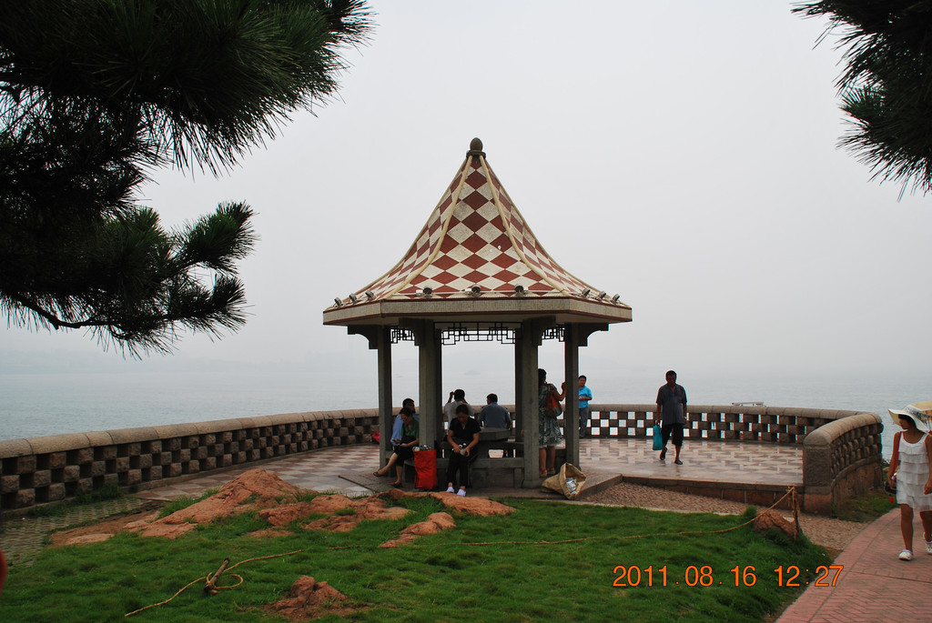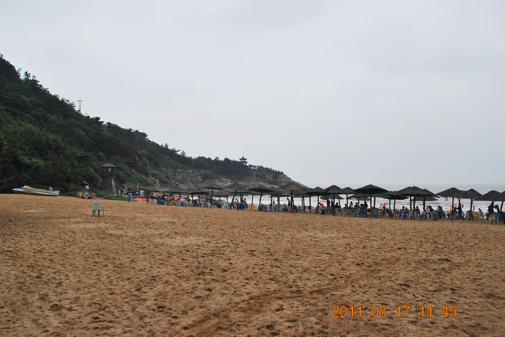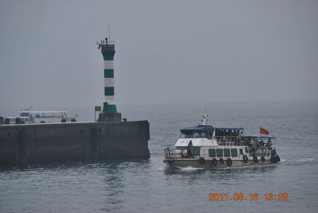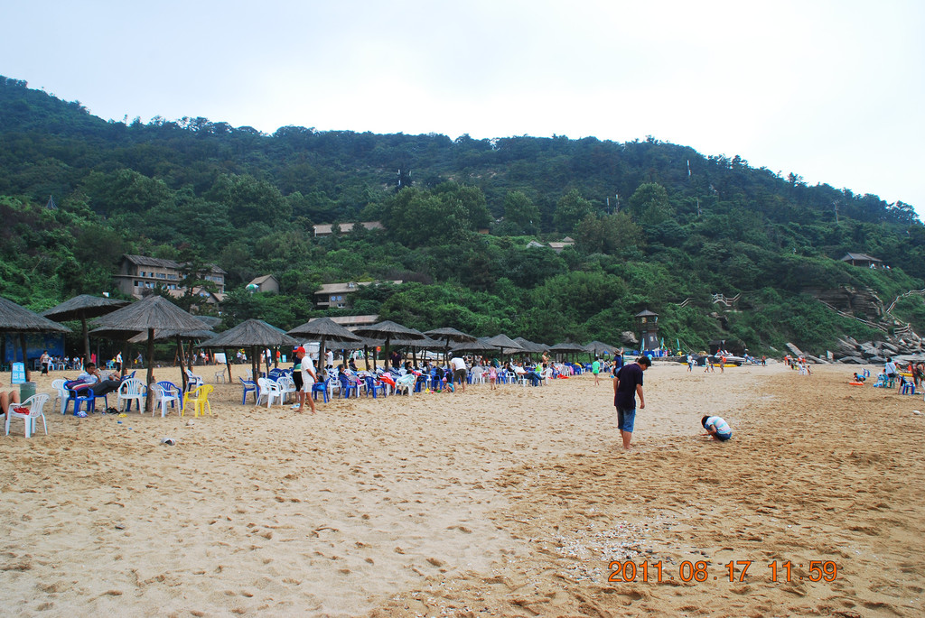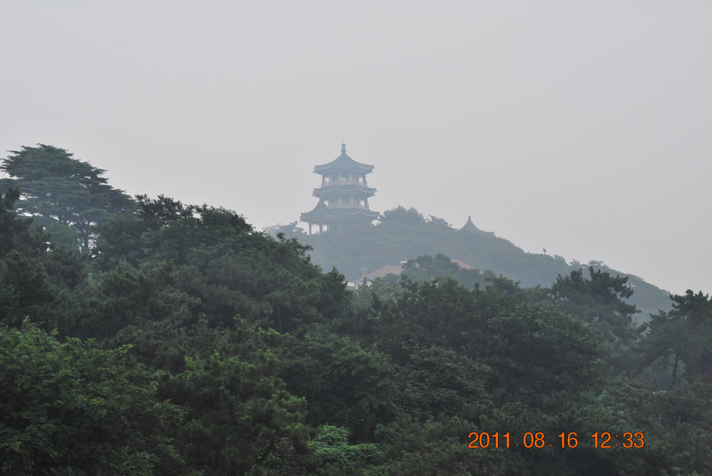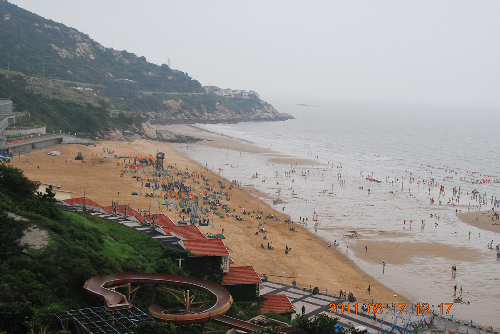 图片右侧的海中有一块模糊的石头便是石老人,我碰上雾天,拍得不清楚。