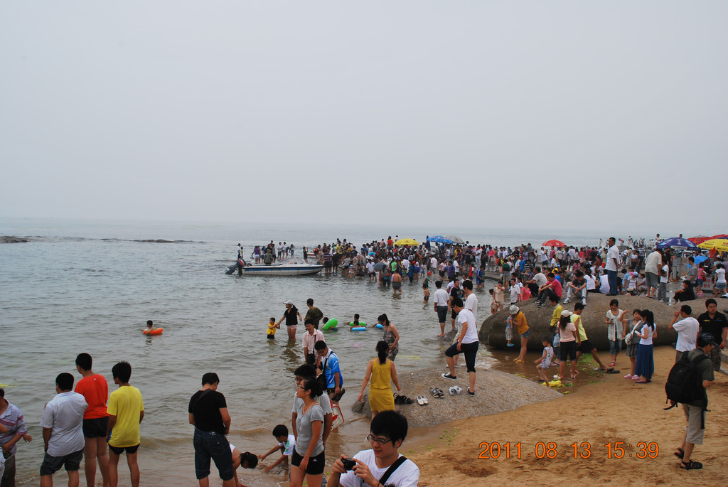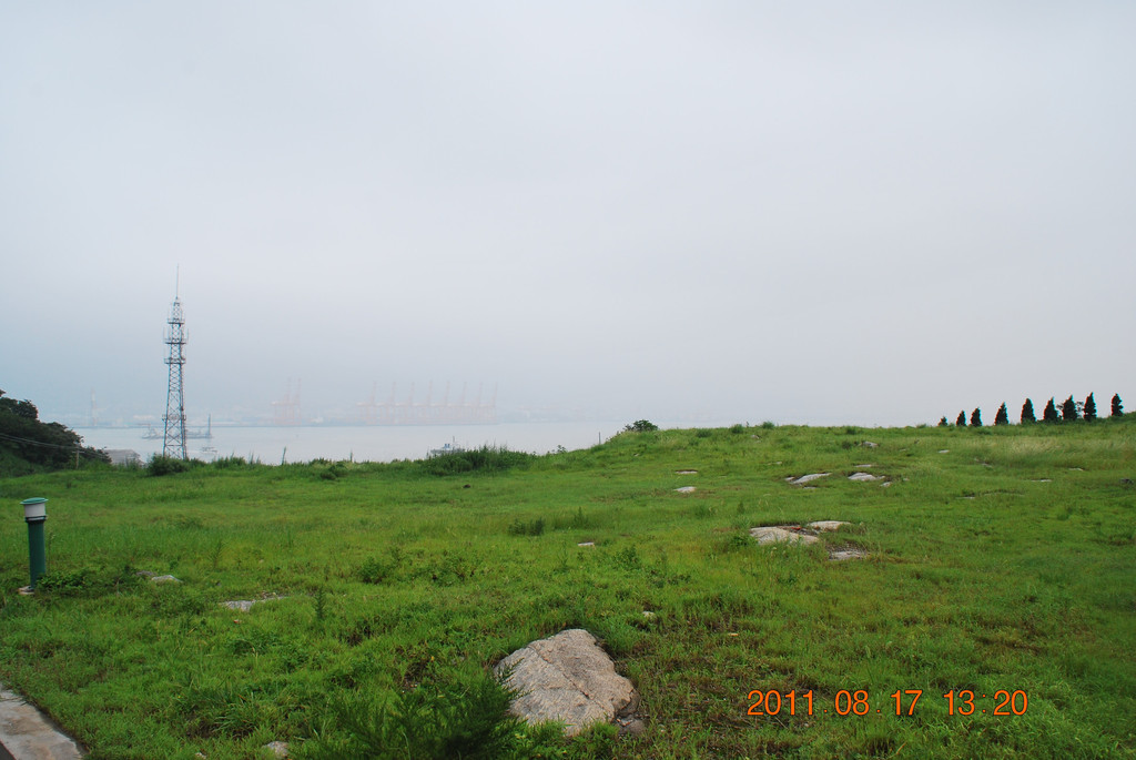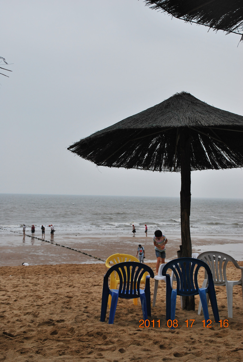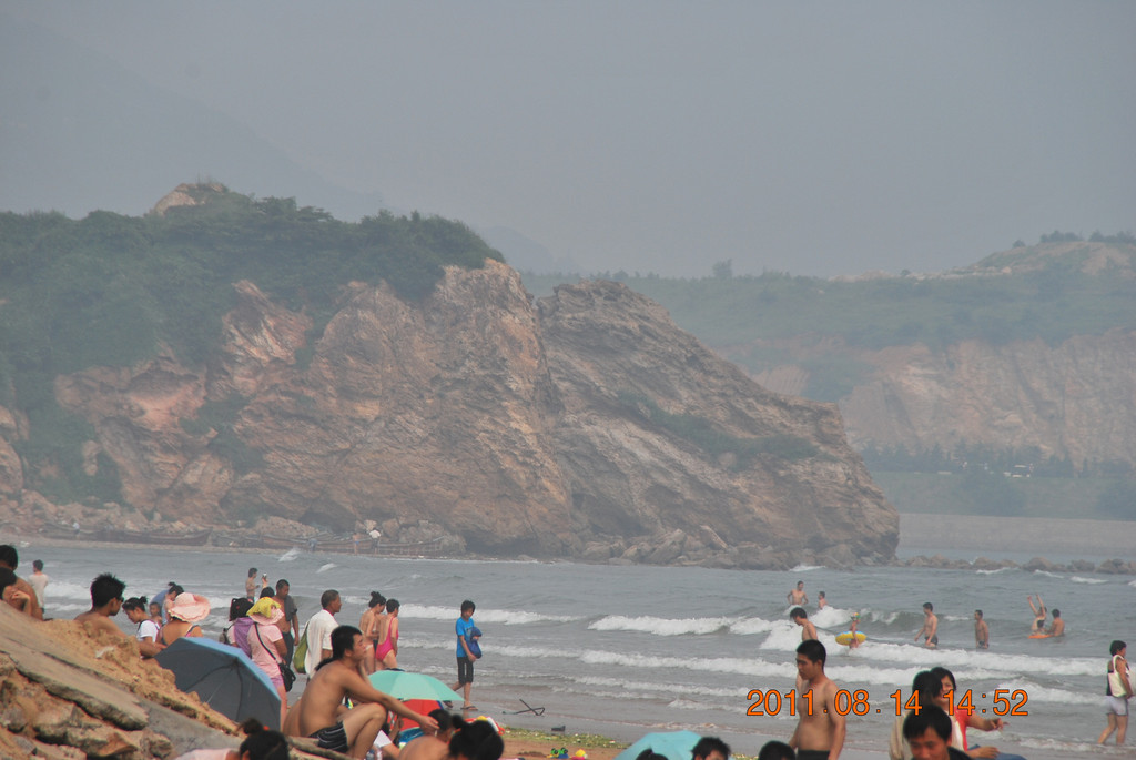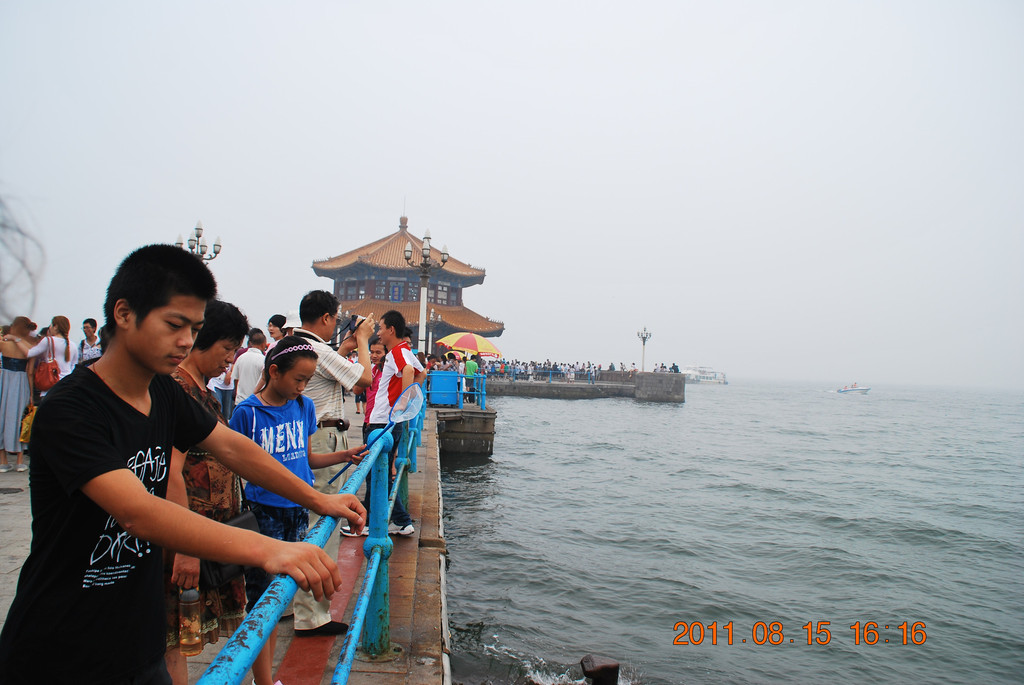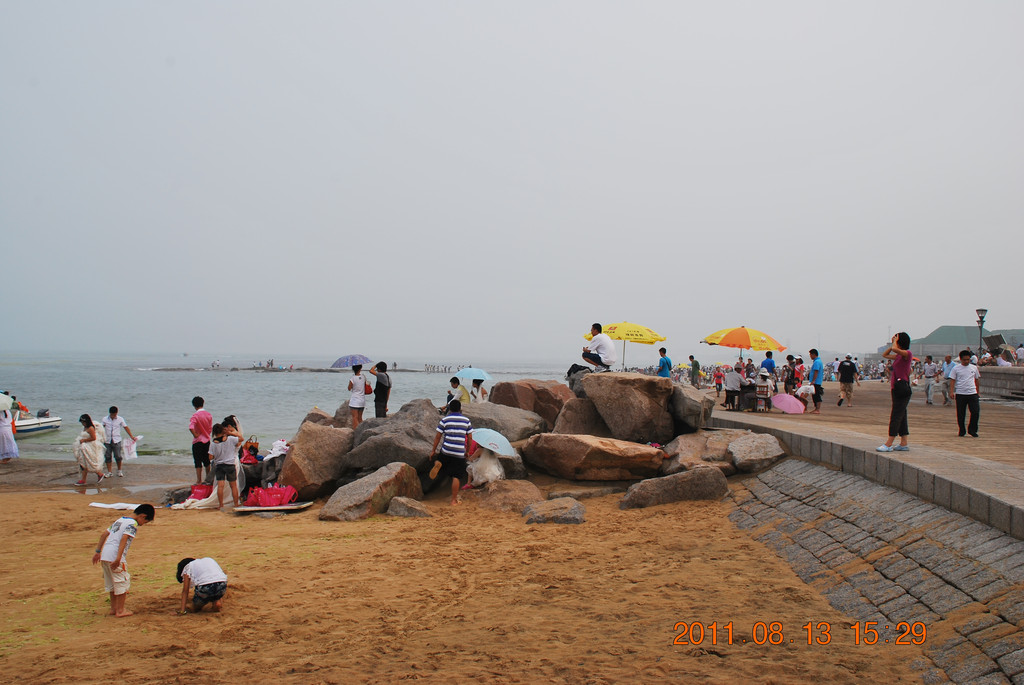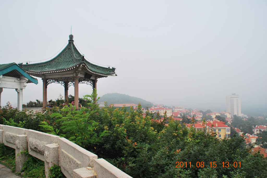 图片右侧的海中有一块模糊的石头便是石老人,我碰上雾天,拍得不清楚。