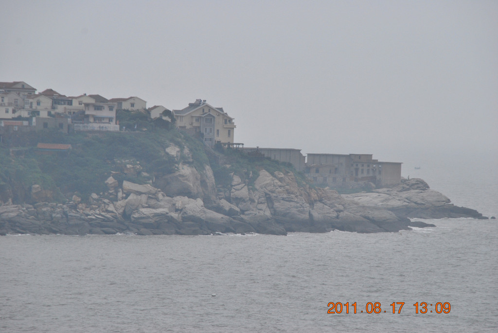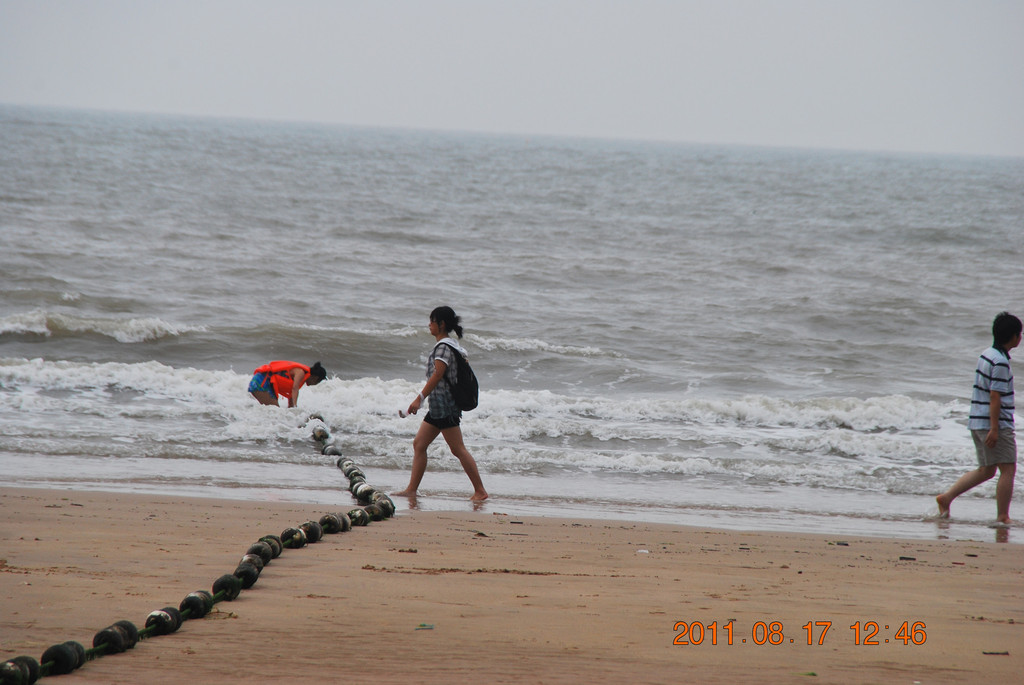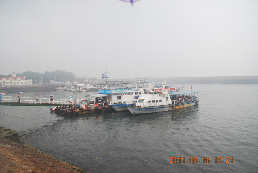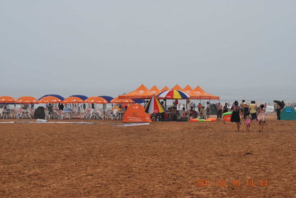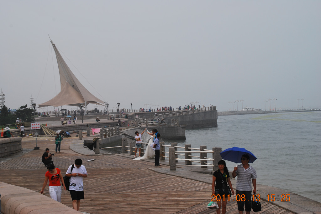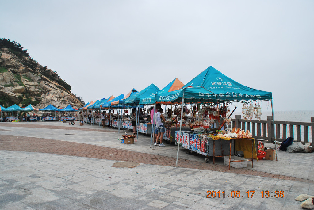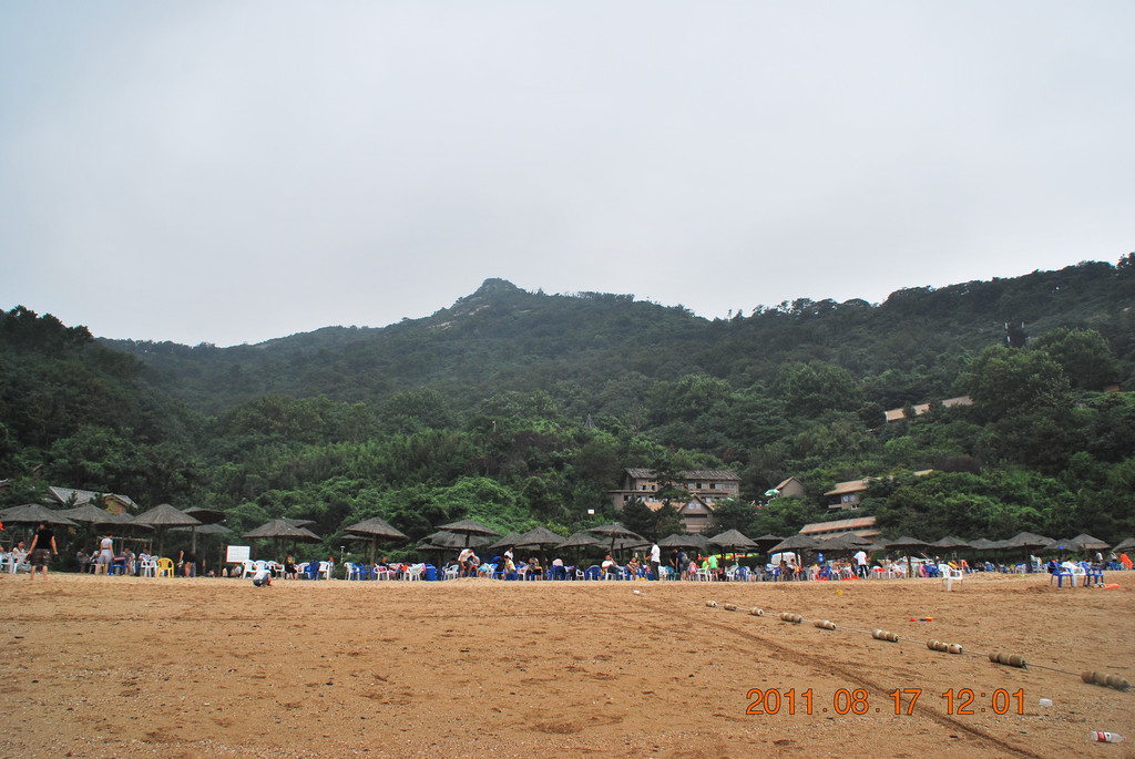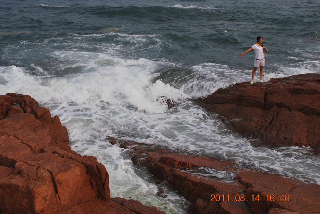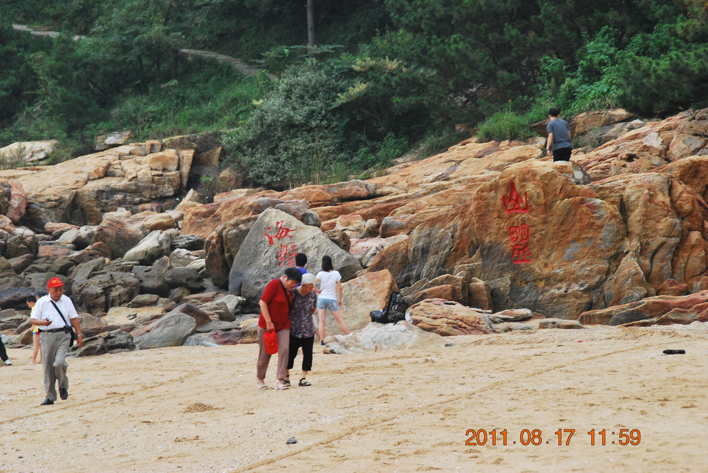 图片右侧的海中有一块模糊的石头便是石老人,我碰上雾天,拍得不清楚。