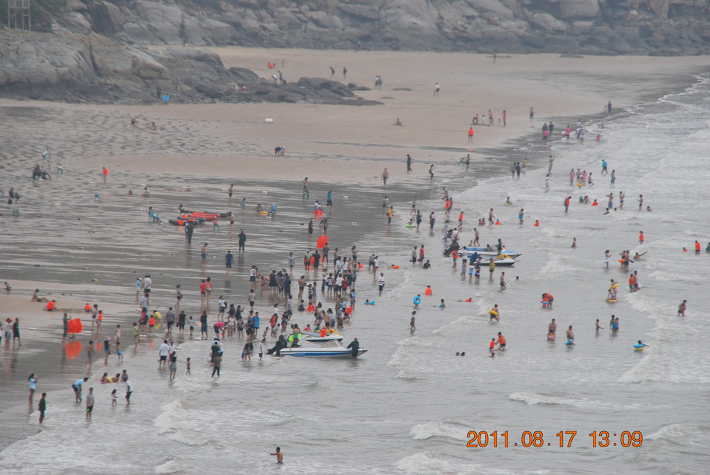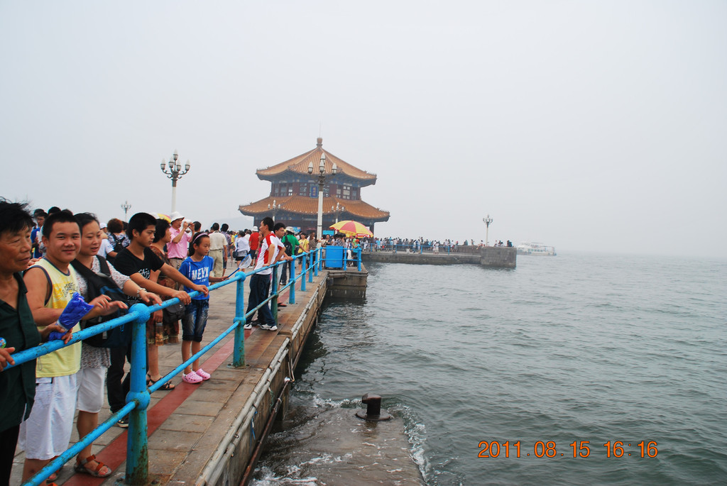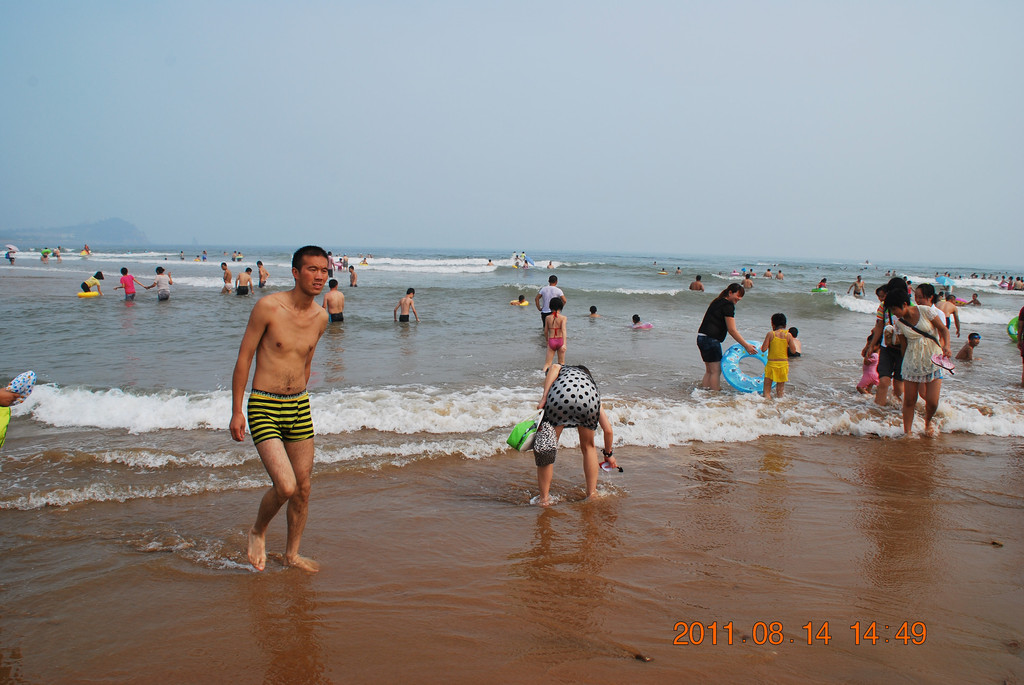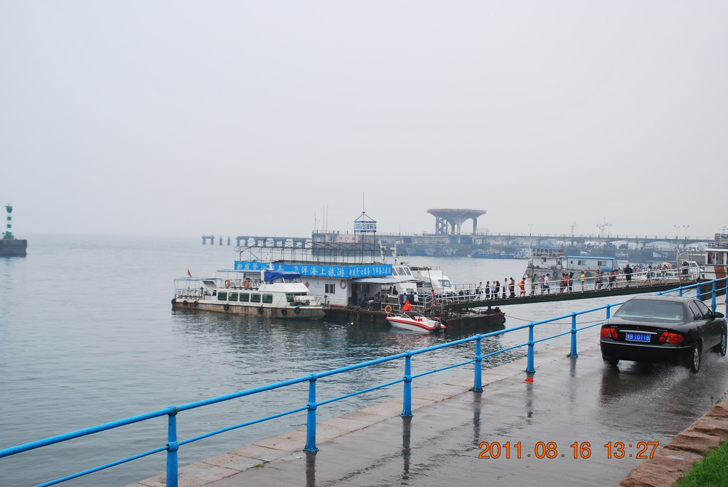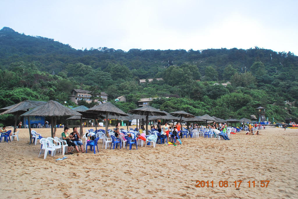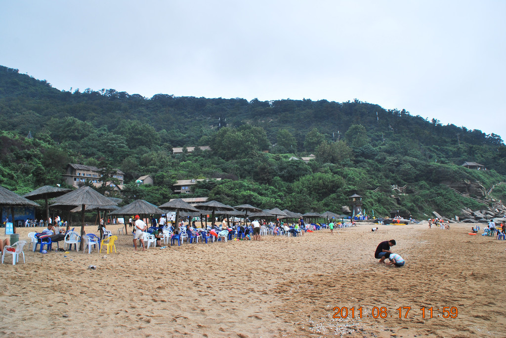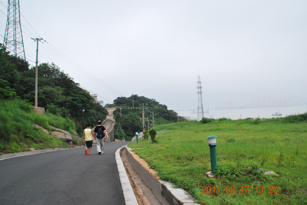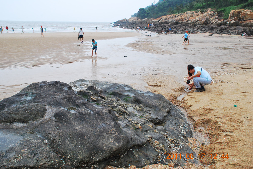 图片右侧的海中有一块模糊的石头便是石老人,我碰上雾天,拍得不清楚。