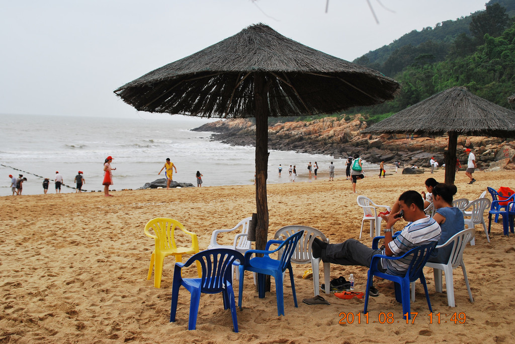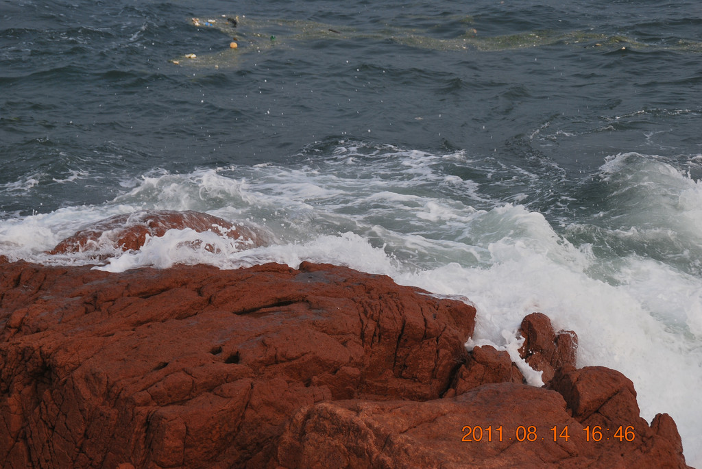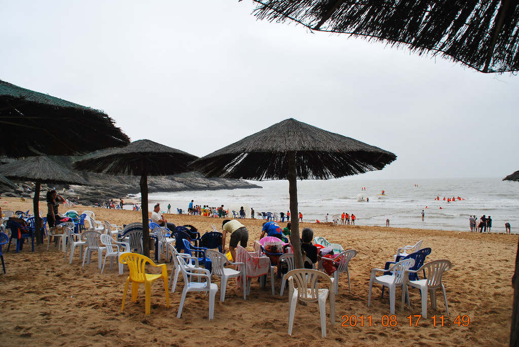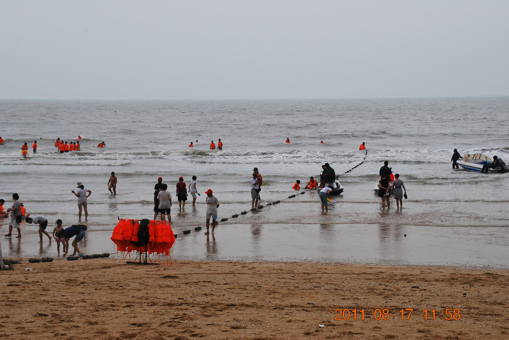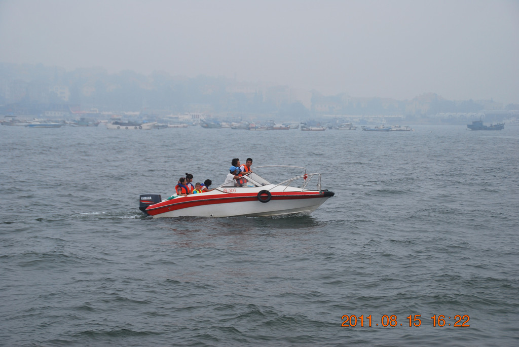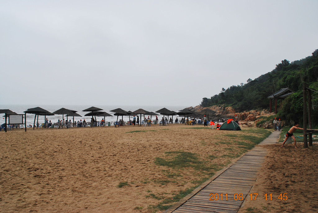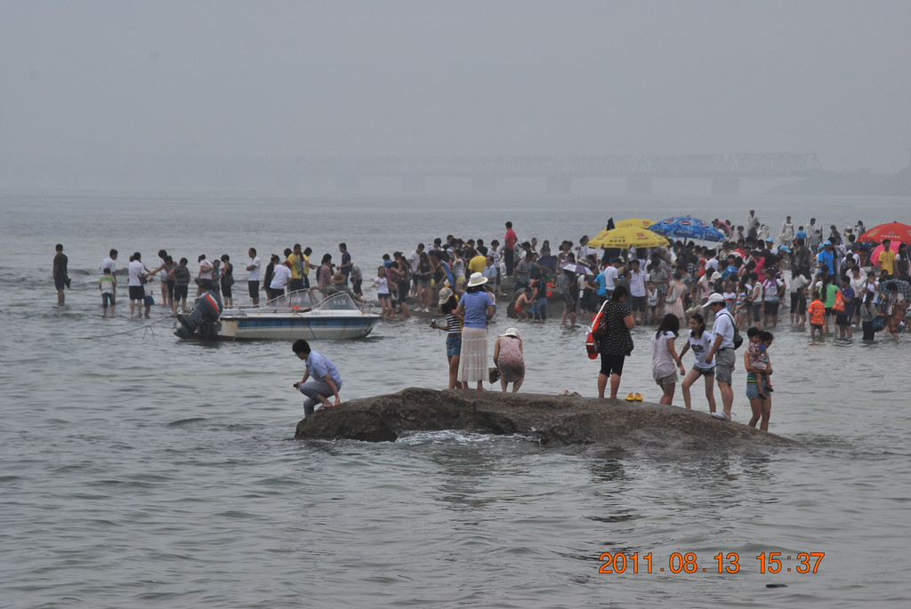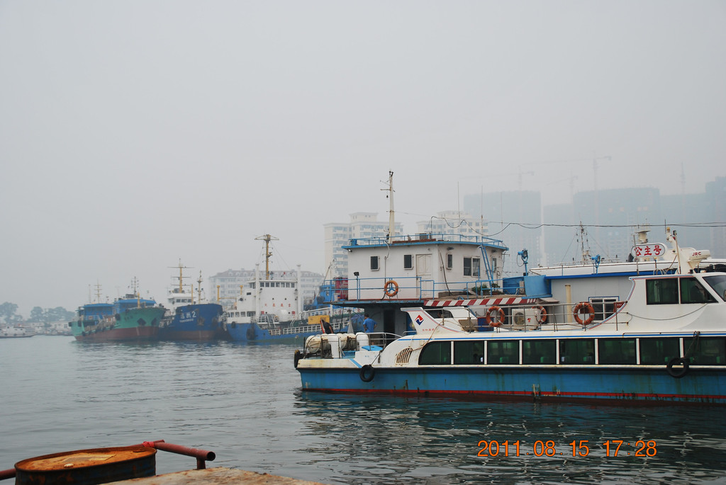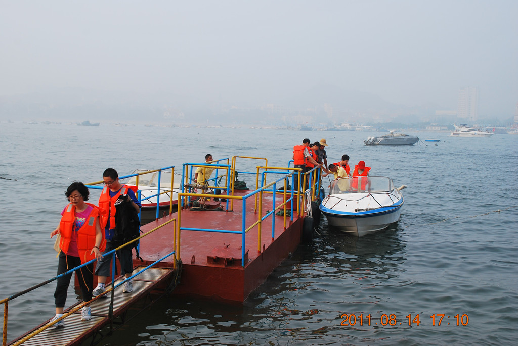 图片右侧的海中有一块模糊的石头便是石老人,我碰上雾天,拍得不清楚。
