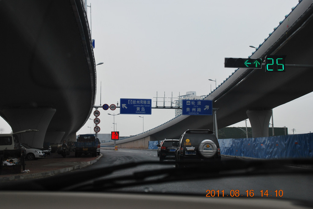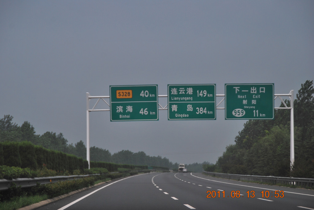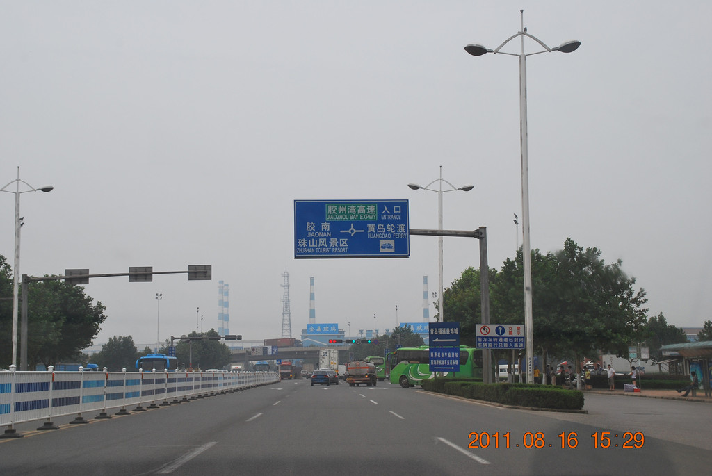 黄岛城区内的标识比较清楚,不难找到高速口。不过,后来发觉从黄岛往日照、连云港方向,直接上胶州湾高速有些绕道,不如先开车到胶南,再从胶南上沈海高速。