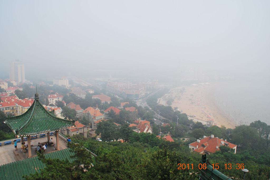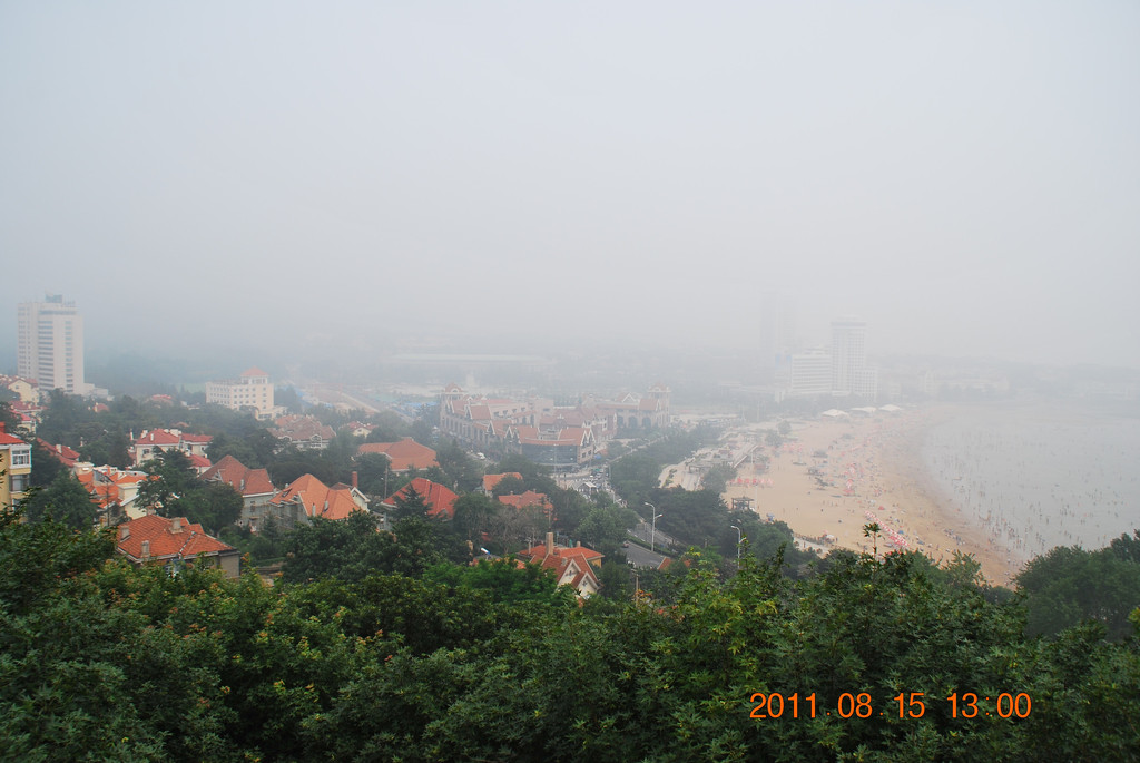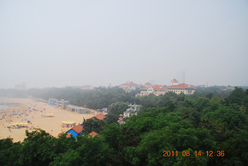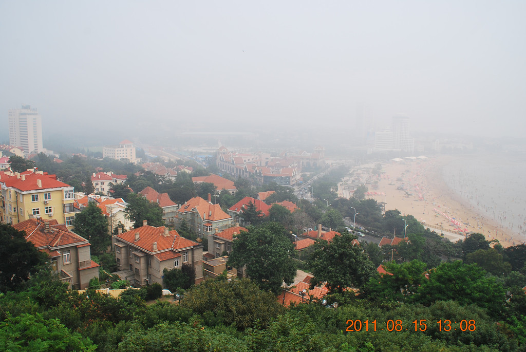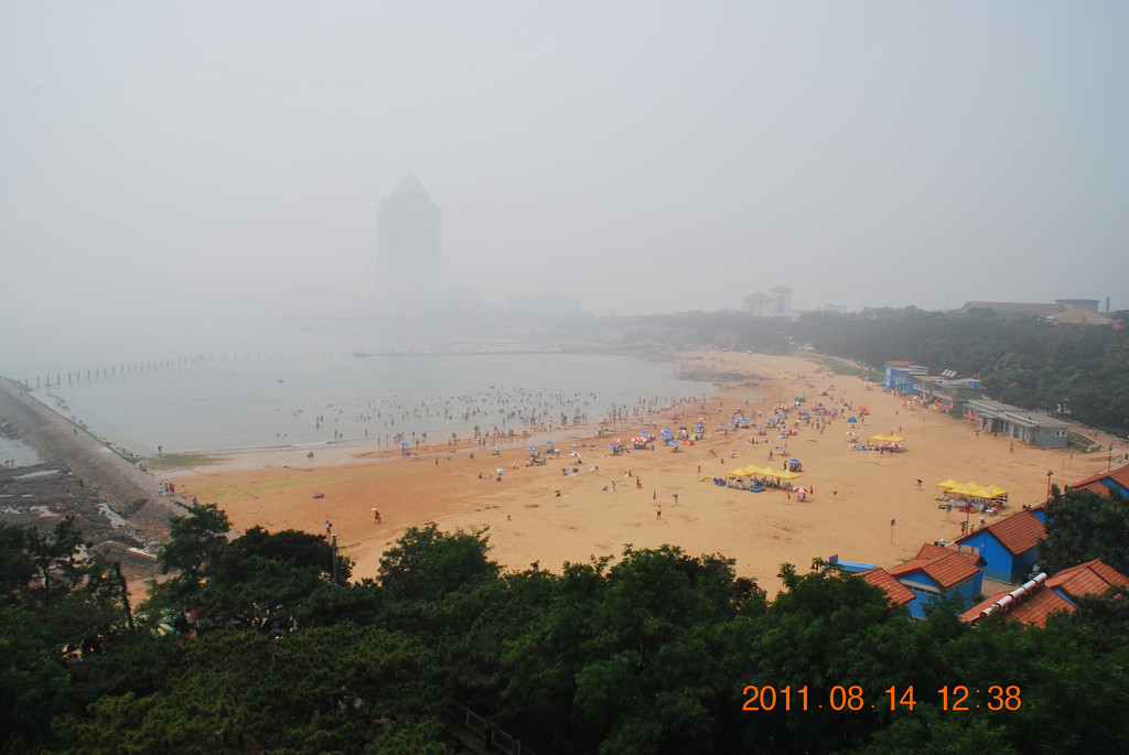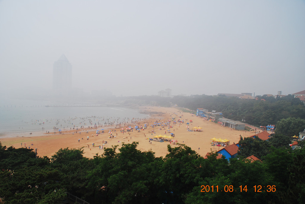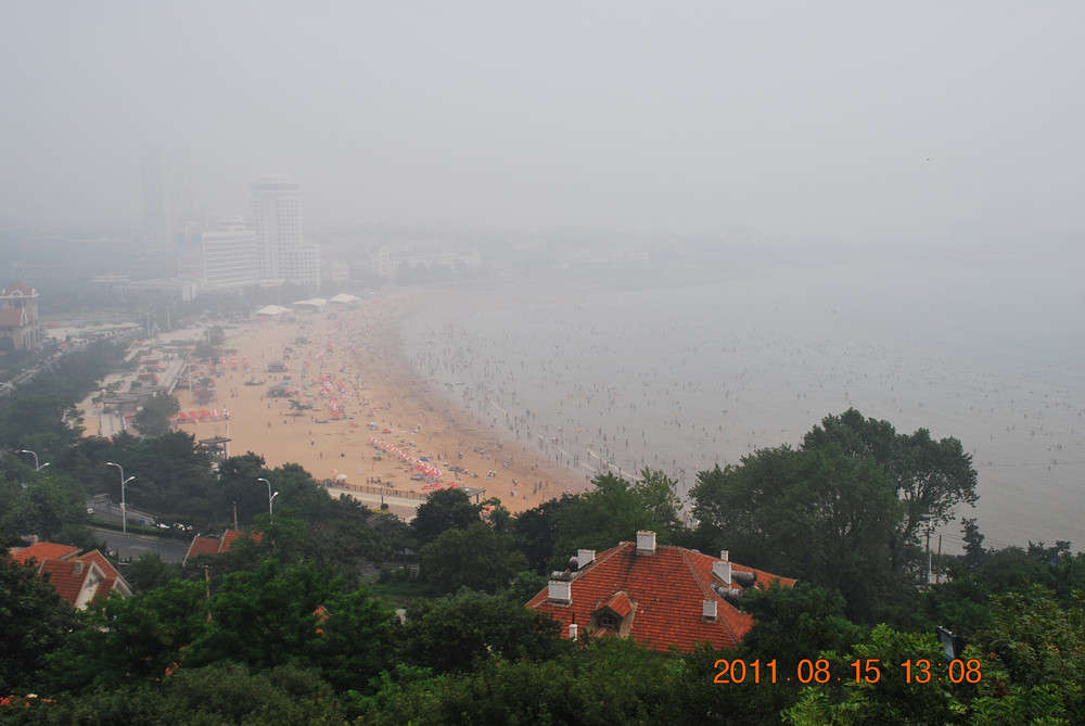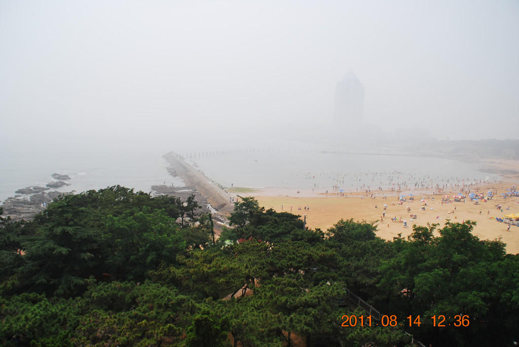 此行正好碰上青岛举行国际啤酒节活动,酒店特别紧张,住宿价格普遍上涨到400多元/晚。为了节省费用及保证住宿质量,我选择住在胶州如家,连着3天从胶州至青岛往返,两地间单次往返120多公里。另外,我从上海往青岛时,在江苏东台住宿一晚。离开青岛时,过新建成的胶州湾海底隧道,途径黄岛旅游,使此行到过的城市达到6个,全程2064公里。先发一张从花石楼楼上拍摄的青岛海滩风景照,是第二海水浴场,有雾但挺美的。