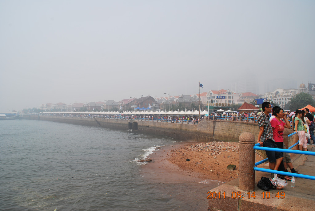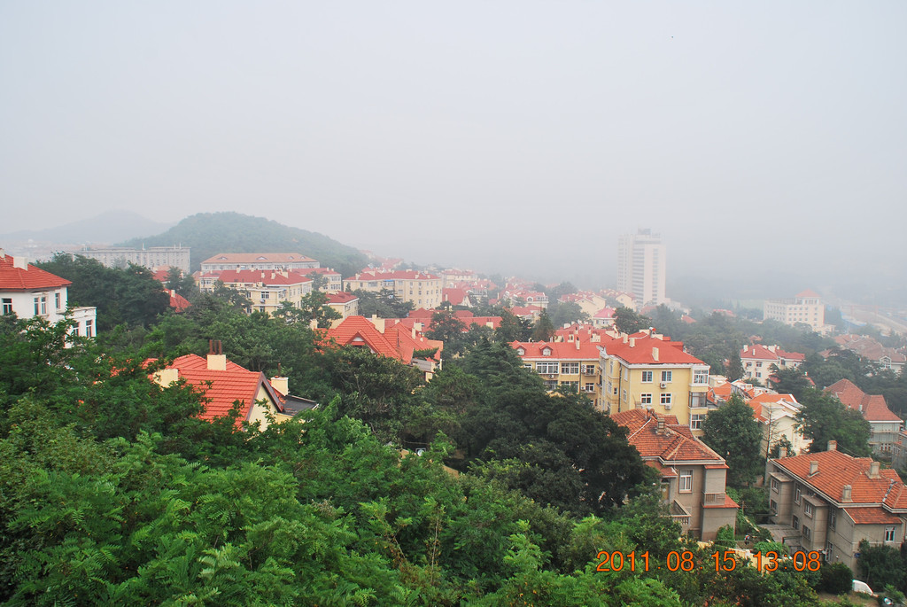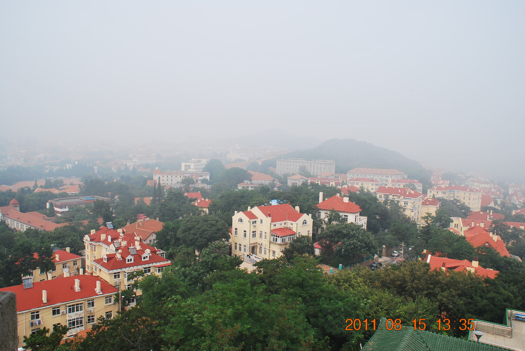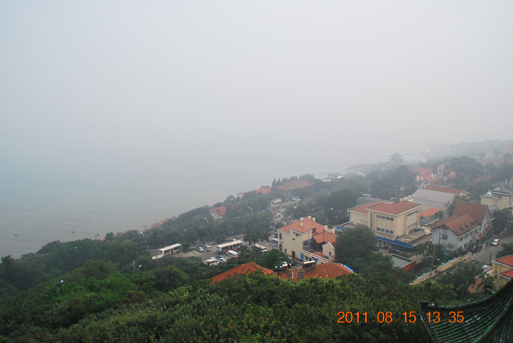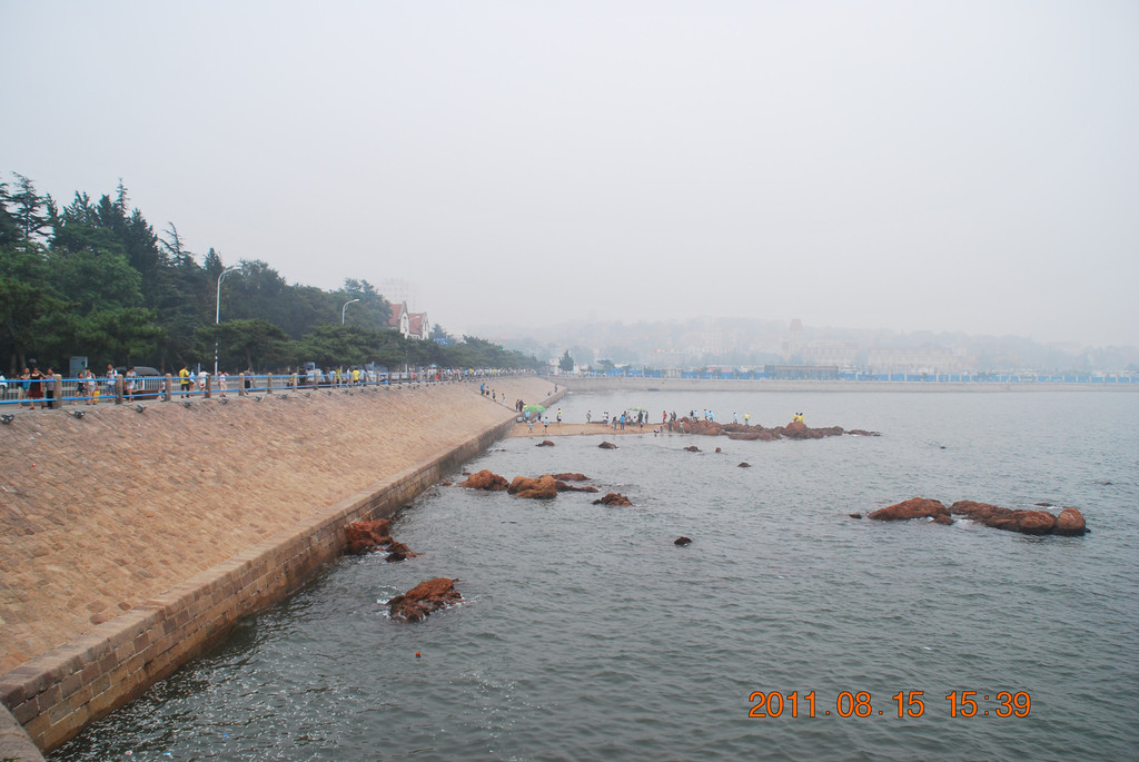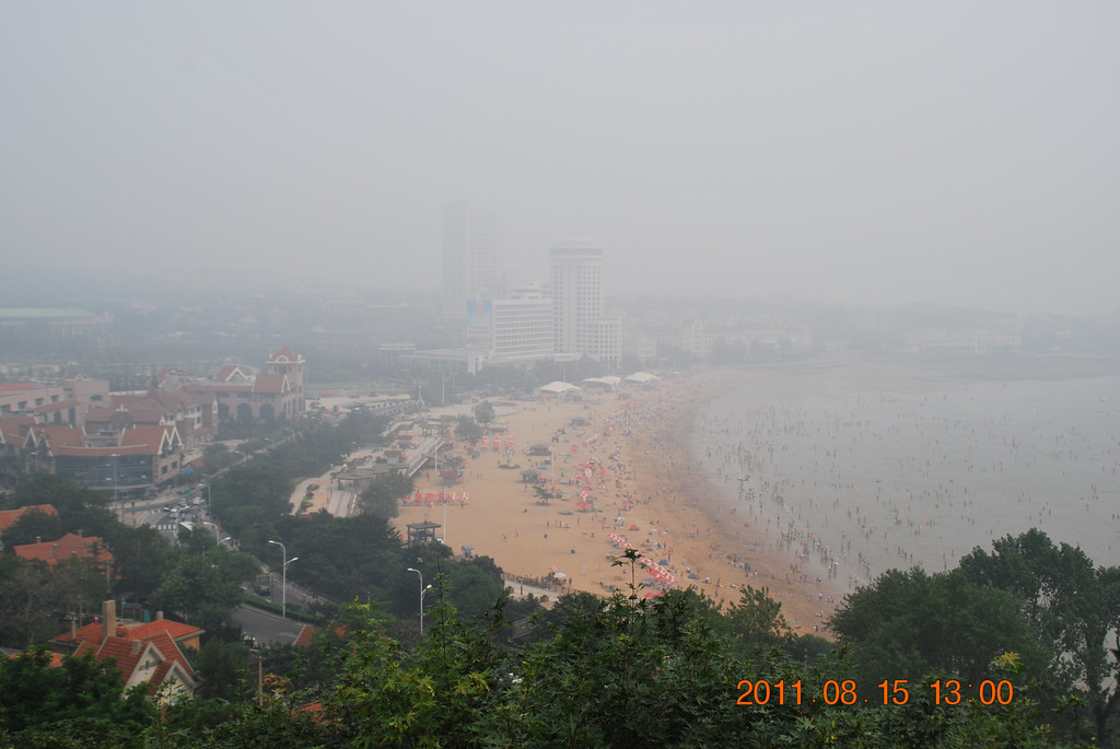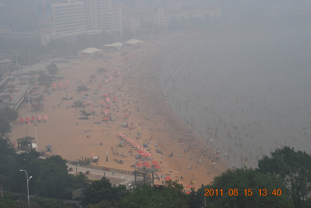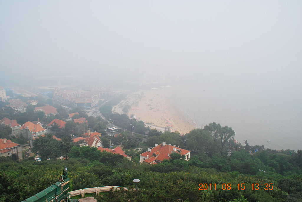 此行正好碰上青岛举行国际啤酒节活动,酒店特别紧张,住宿价格普遍上涨到400多元/晚。为了节省费用及保证住宿质量,我选择住在胶州如家,连着3天从胶州至青岛往返,两地间单次往返120多公里。另外,我从上海往青岛时,在江苏东台住宿一晚。离开青岛时,过新建成的胶州湾海底隧道,途径黄岛旅游,使此行到过的城市达到6个,全程2064公里。先发一张从花石楼楼上拍摄的青岛海滩风景照,是第二海水浴场,有雾但挺美的。