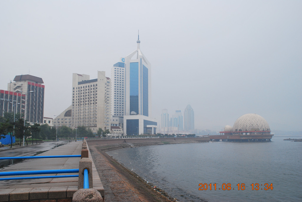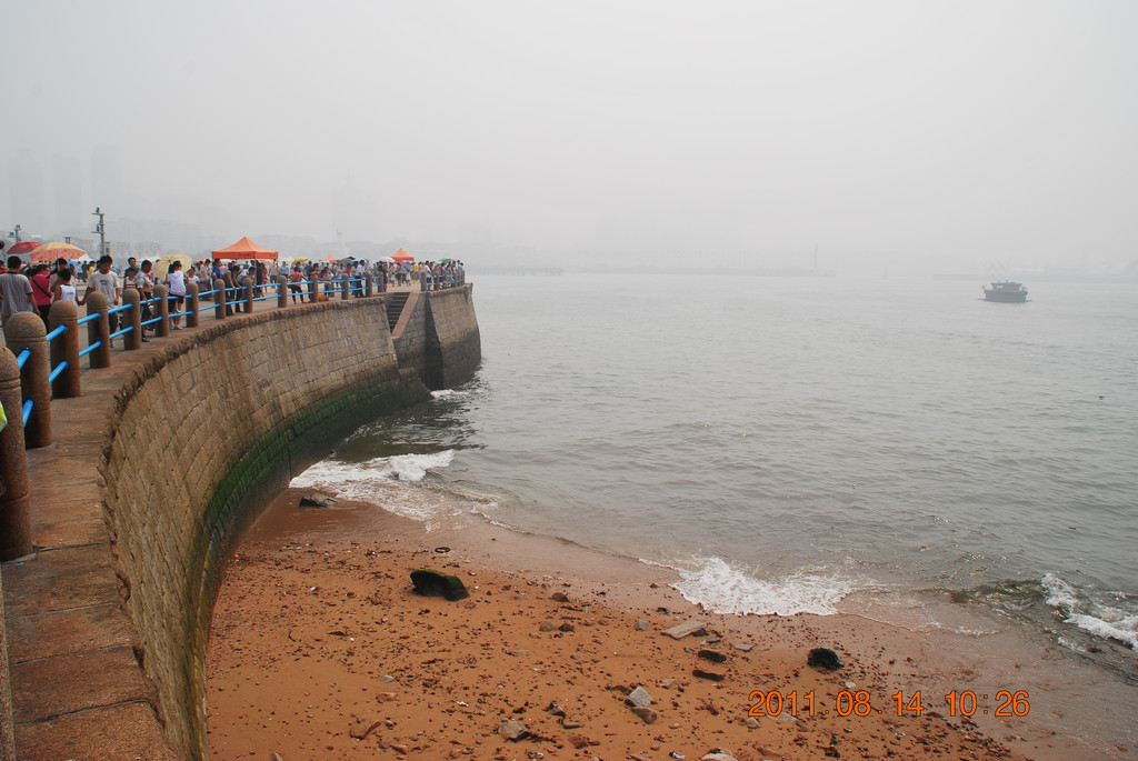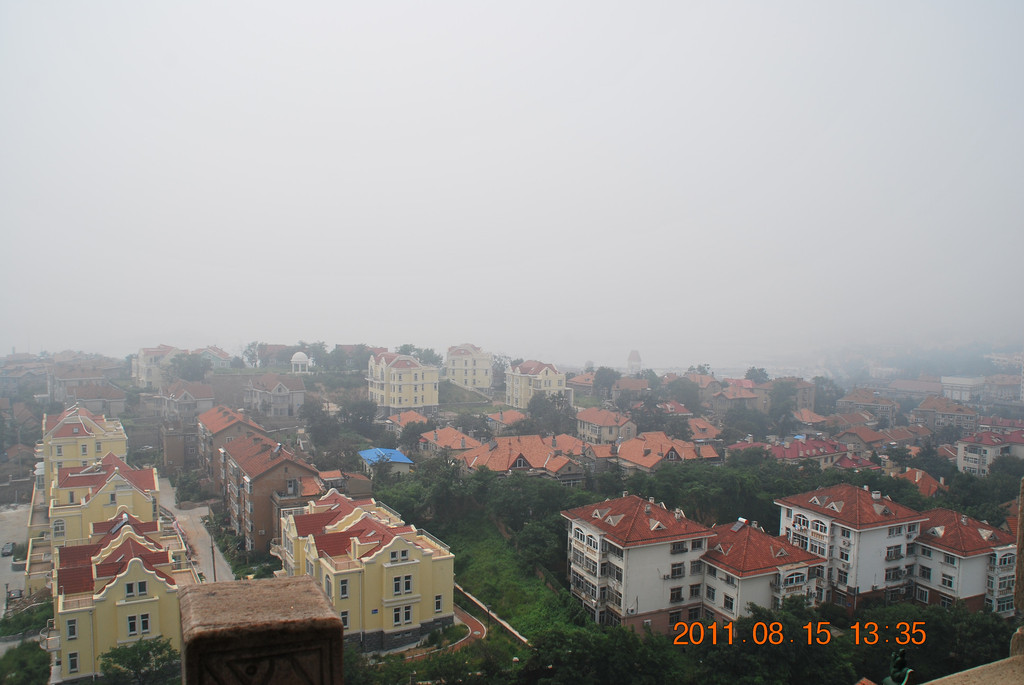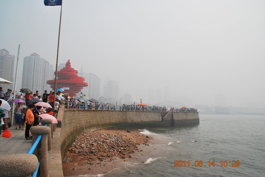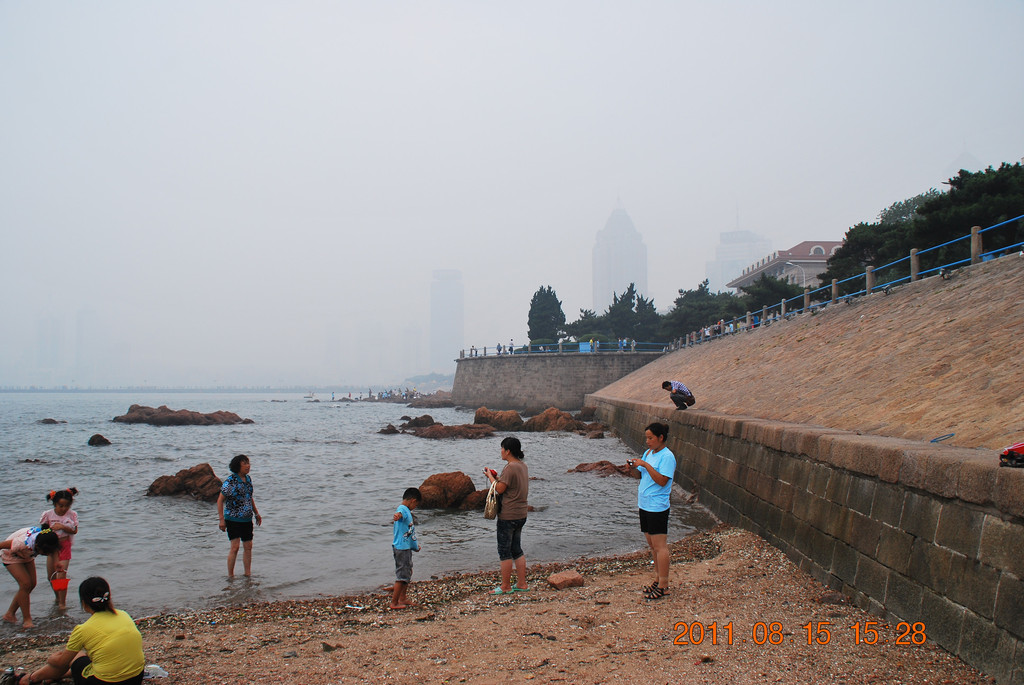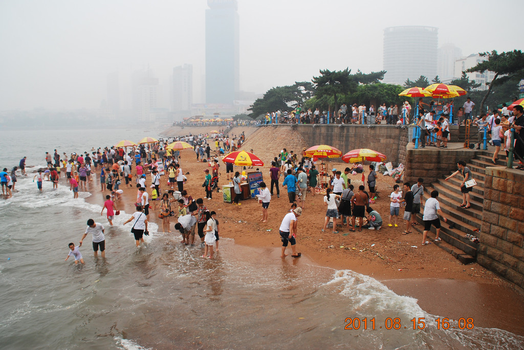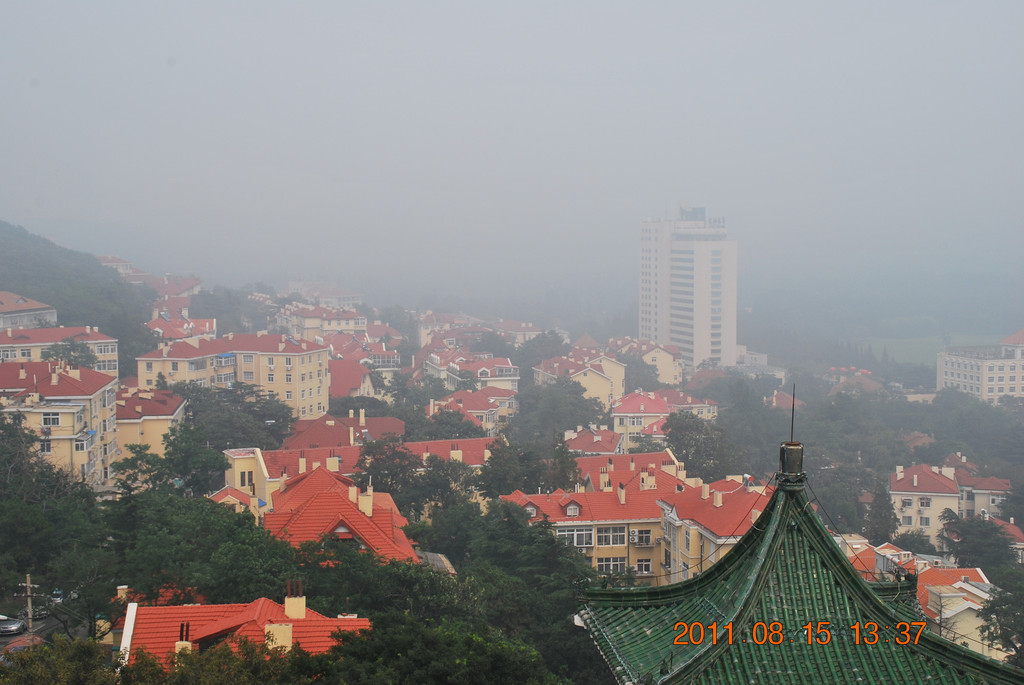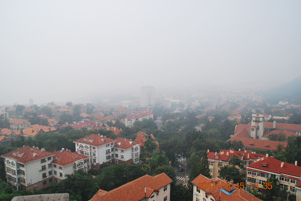 此行正好碰上青岛举行国际啤酒节活动,酒店特别紧张,住宿价格普遍上涨到400多元/晚。为了节省费用及保证住宿质量,我选择住在胶州如家,连着3天从胶州至青岛往返,两地间单次往返120多公里。另外,我从上海往青岛时,在江苏东台住宿一晚。离开青岛时,过新建成的胶州湾海底隧道,途径黄岛旅游,使此行到过的城市达到6个,全程2064公里。先发一张从花石楼楼上拍摄的青岛海滩风景照,是第二海水浴场,有雾但挺美的。